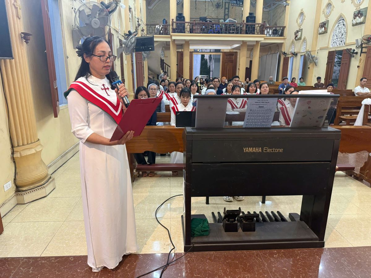 Trước khi lãnh nhận phép lành cuối lễ, đại diện ca đoàn bày tỏ tâm tình tri ân đến Cha xứ, Cha phó, quý dì Dòng Phaolô và tất cả những ai đã đồng hành, nâng đỡ ca đoàn trong suốt những năm qua, nhất là trong hành trình học hỏi và tập luyện để phục vụ những Thánh lễ hằng ngày.