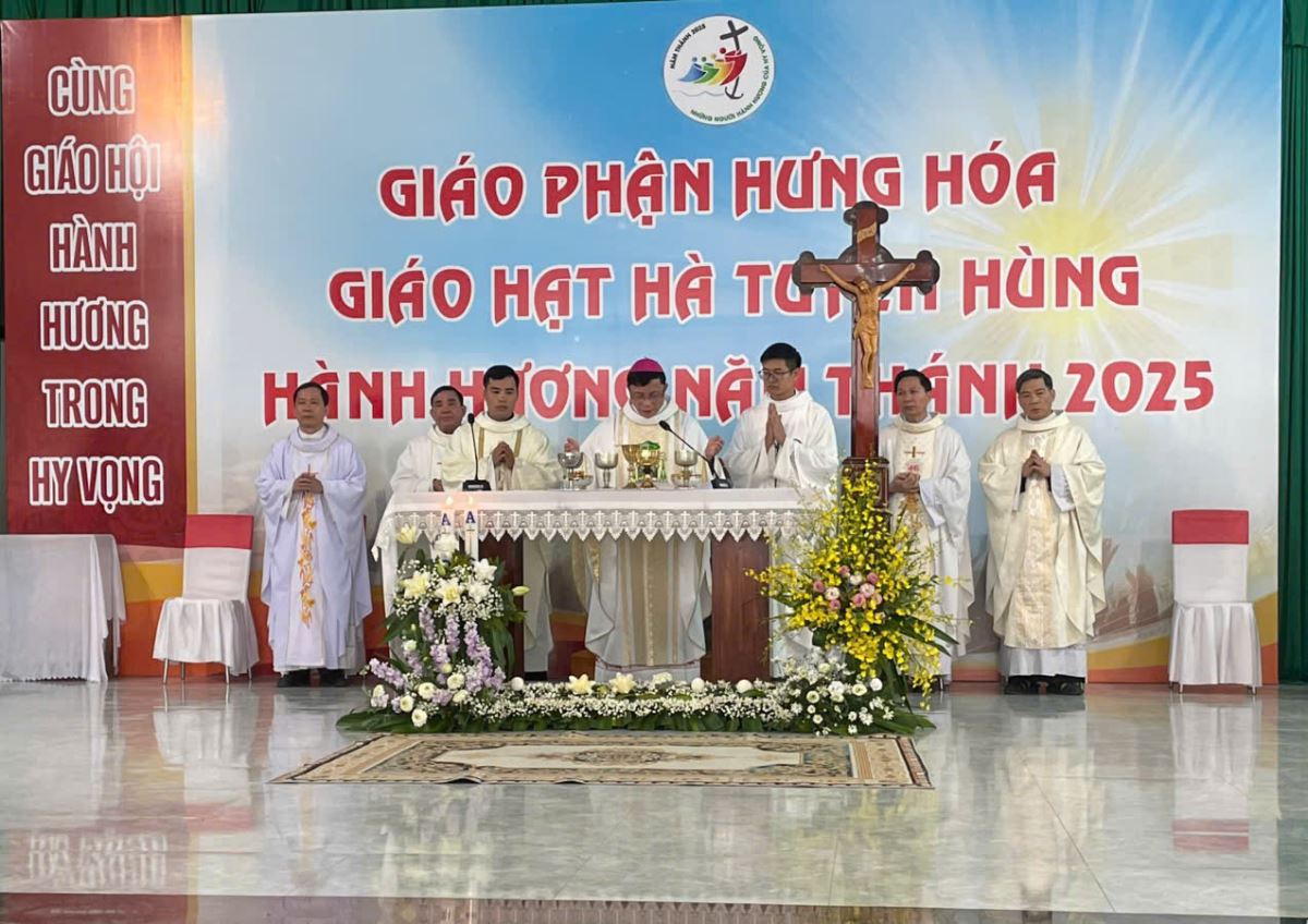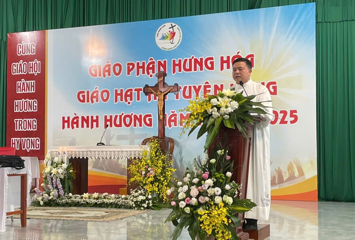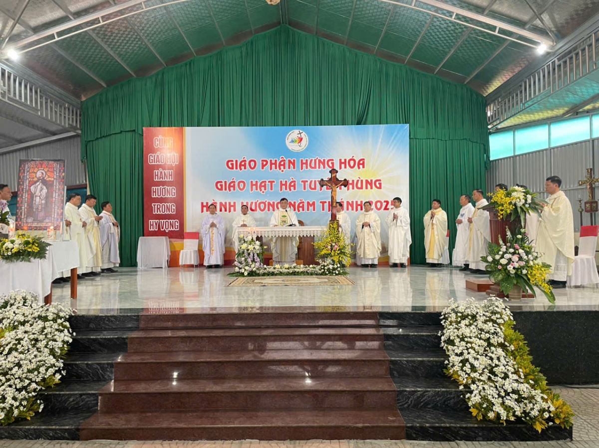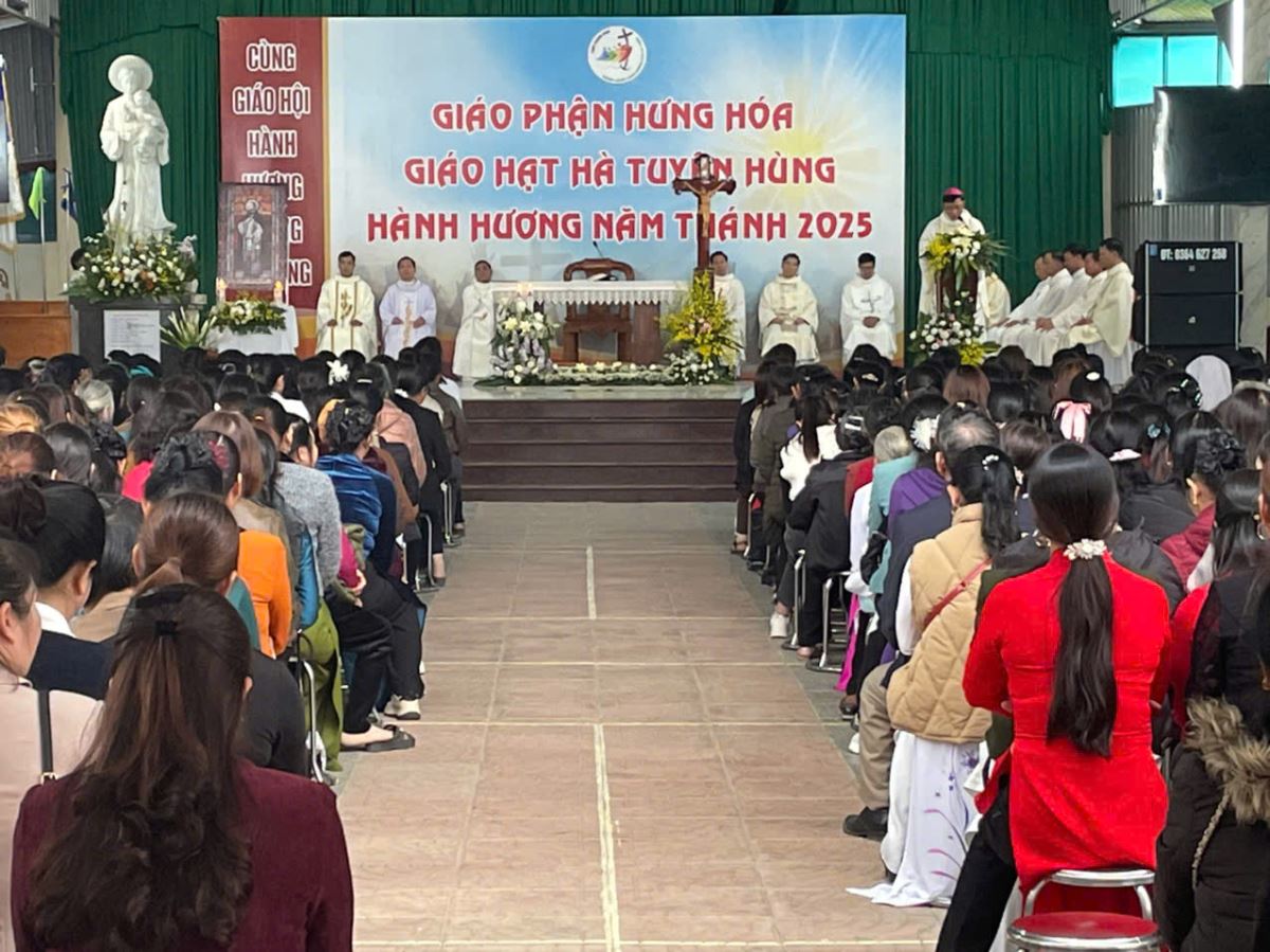 Đúng 8g00, cộng đoàn cùng quy tụ trong nhà thờ để tham dự nghi thức khai mạc hành hương do cha Giuse Nguyễn Viết Hiệp – Quản hạt Hà Tuyên Hùng chủ sự. Trong lời khai mạc, cha quản hạt mời gọi mọi người hãy dẹp bỏ những âu lo và gánh nặng của quá khứ, để cùng nhau bước qua Cửa Năm Thánh, đi qua “cửa hẹp” để tiến vào đền thánh Chúa, nơi chan chứa ơn cứu độ mà Thiên Chúa luôn mời gọi mỗi người.