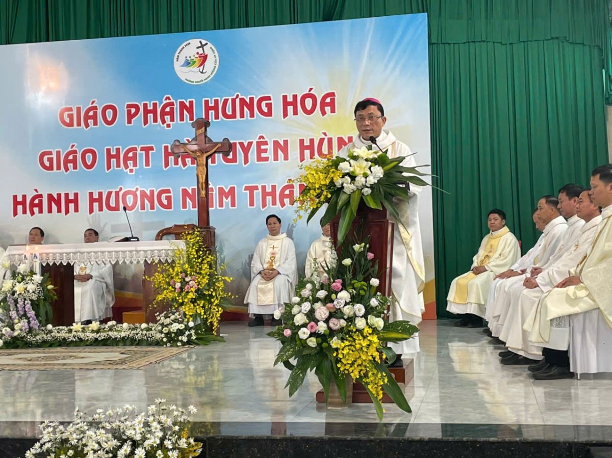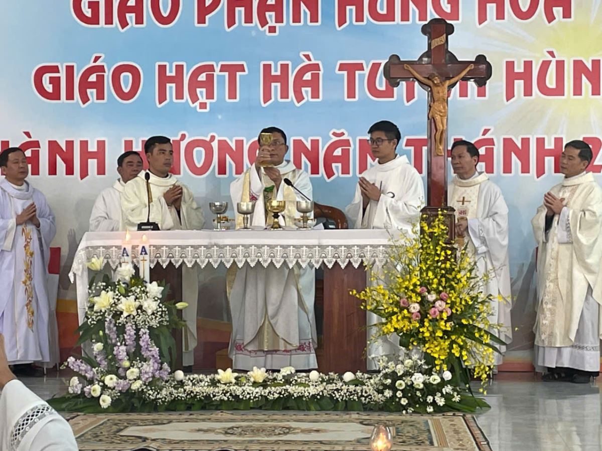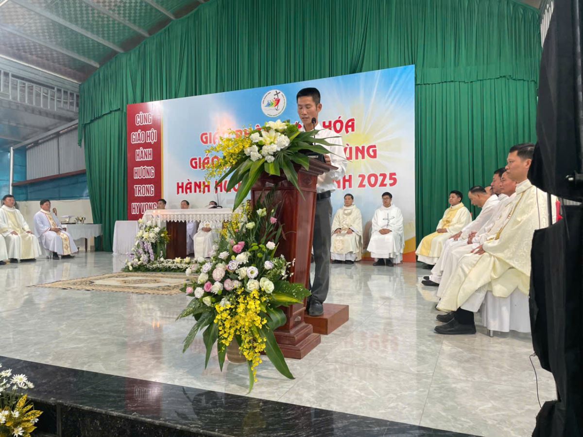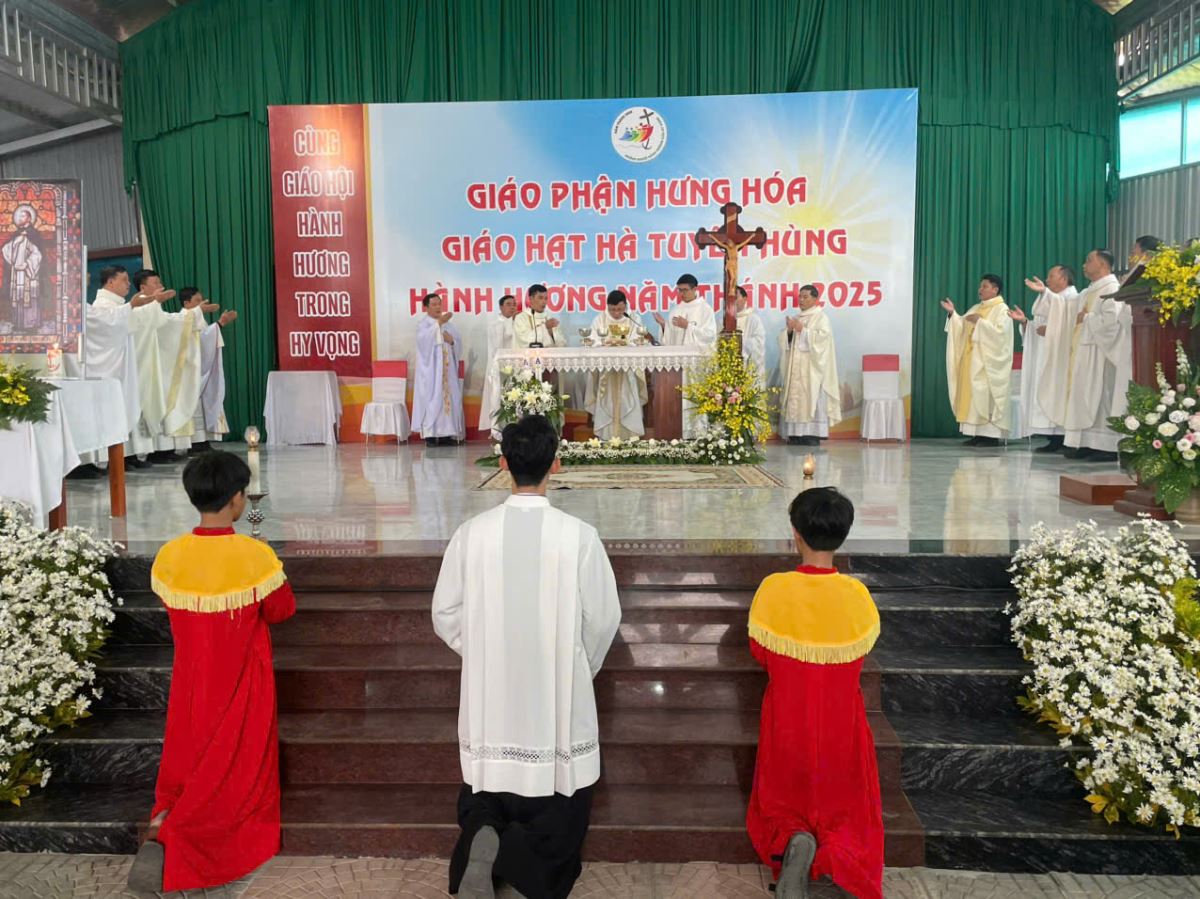 Đúng 8g00, cộng đoàn cùng quy tụ trong nhà thờ để tham dự nghi thức khai mạc hành hương do cha Giuse Nguyễn Viết Hiệp – Quản hạt Hà Tuyên Hùng chủ sự. Trong lời khai mạc, cha quản hạt mời gọi mọi người hãy dẹp bỏ những âu lo và gánh nặng của quá khứ, để cùng nhau bước qua Cửa Năm Thánh, đi qua “cửa hẹp” để tiến vào đền thánh Chúa, nơi chan chứa ơn cứu độ mà Thiên Chúa luôn mời gọi mỗi người.