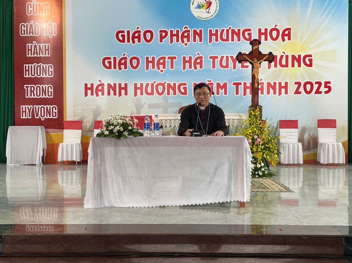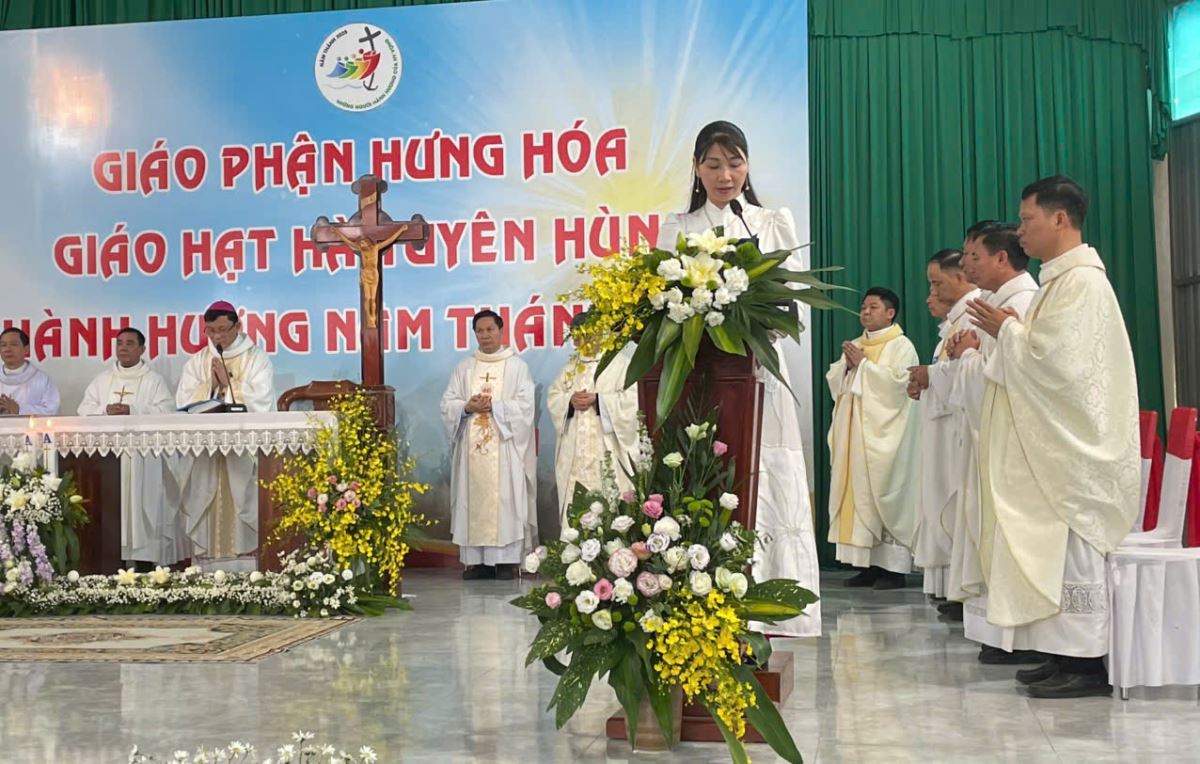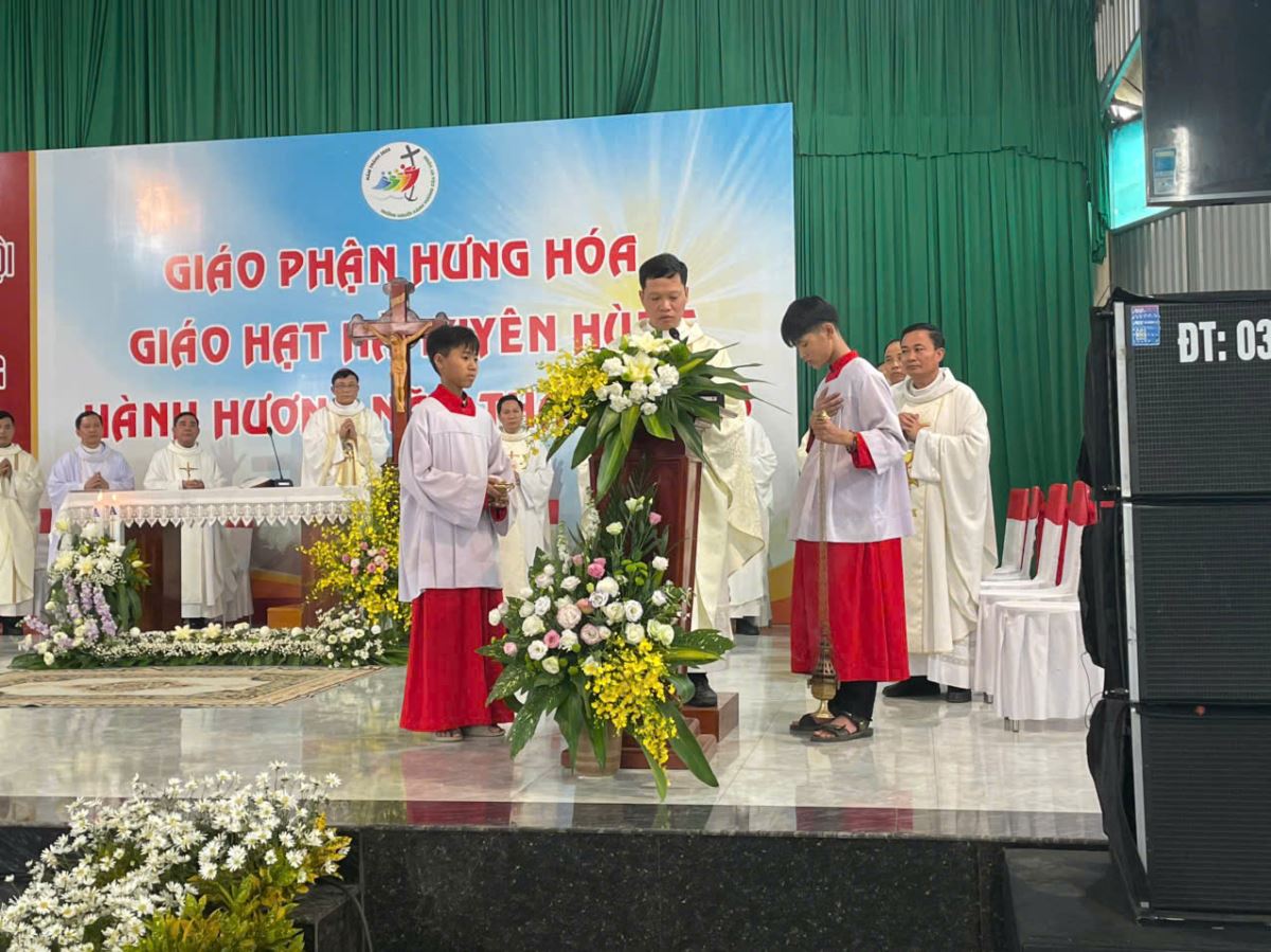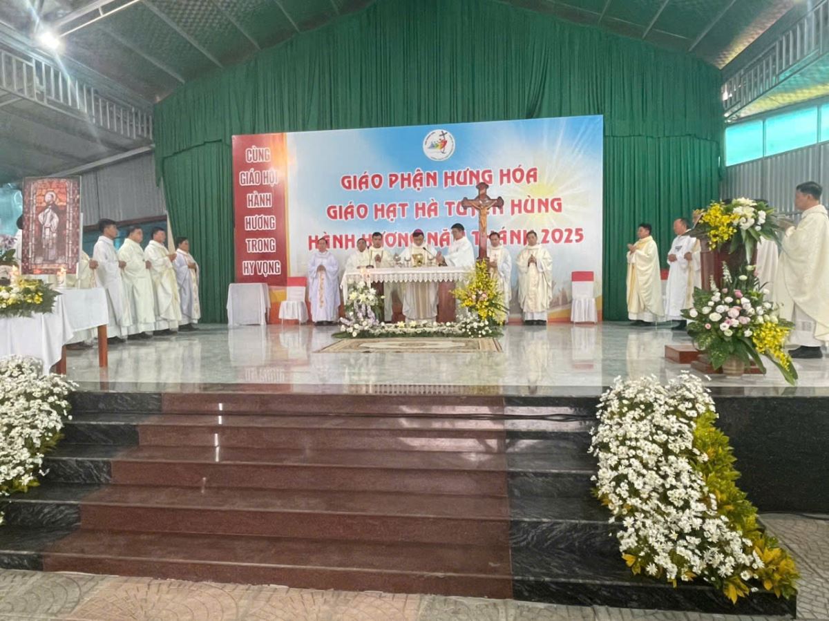 Đúng 8g00, cộng đoàn cùng quy tụ trong nhà thờ để tham dự nghi thức khai mạc hành hương do cha Giuse Nguyễn Viết Hiệp – Quản hạt Hà Tuyên Hùng chủ sự. Trong lời khai mạc, cha quản hạt mời gọi mọi người hãy dẹp bỏ những âu lo và gánh nặng của quá khứ, để cùng nhau bước qua Cửa Năm Thánh, đi qua “cửa hẹp” để tiến vào đền thánh Chúa, nơi chan chứa ơn cứu độ mà Thiên Chúa luôn mời gọi mỗi người.