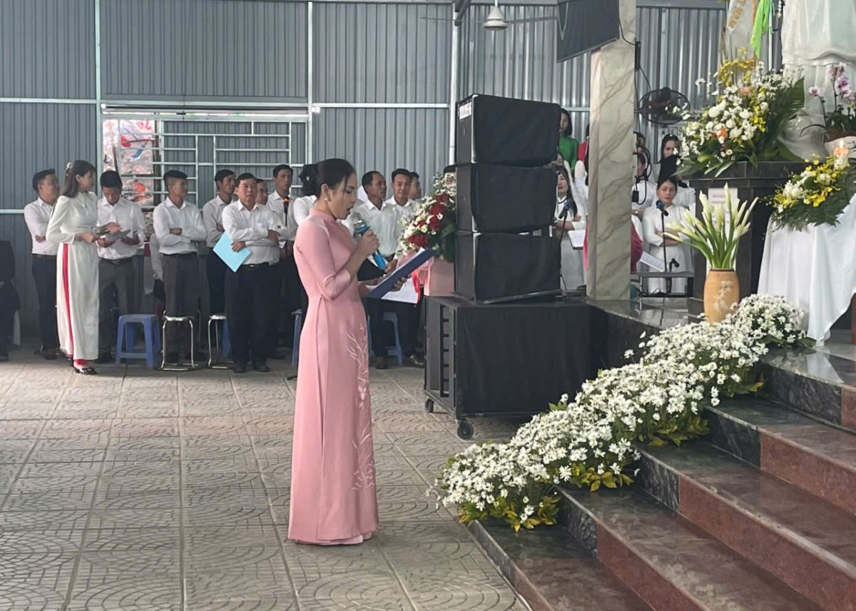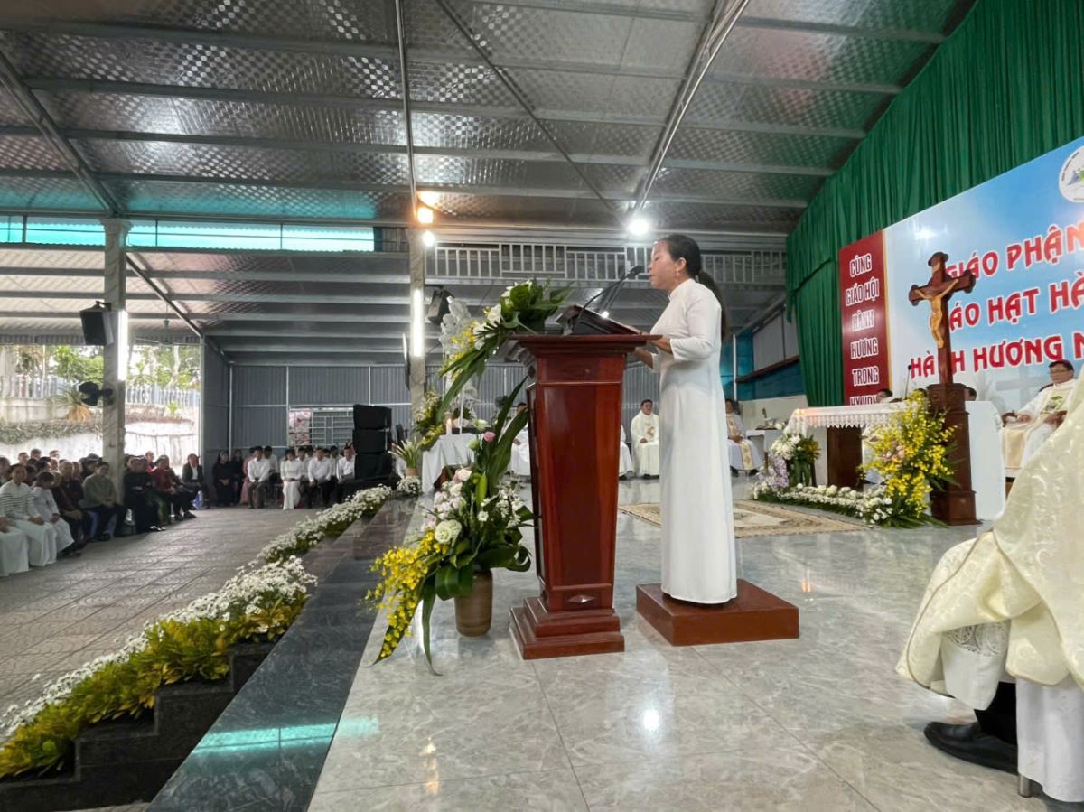 Trước khi kết thúc Thánh lễ, một đại diện các ca đoàn dâng lời tri ân Đức cha, quý cha, quý thầy và quý dì, những người đã đồng hành, hướng dẫn và nâng đỡ để các ca đoàn cũng như các ban nhạc cụ trong giáo hạt ngày một thăng tiến hơn trong đời sống đức tin và trong việc phục vụ phụng vụ.