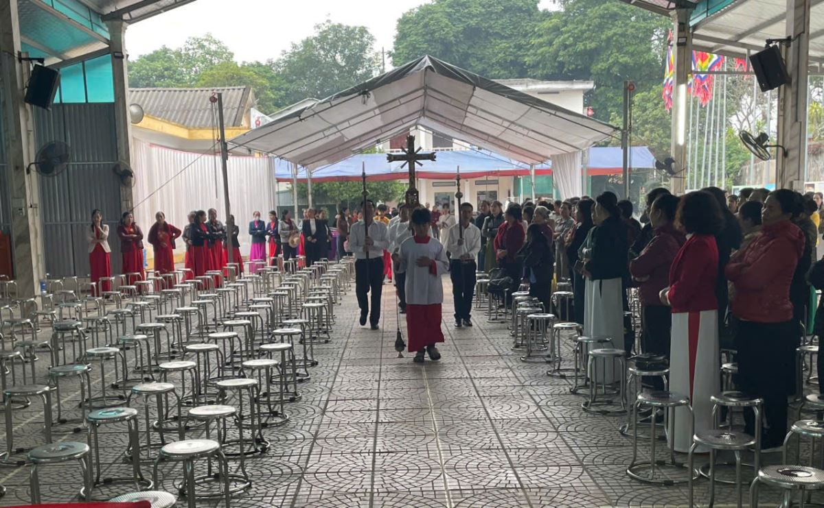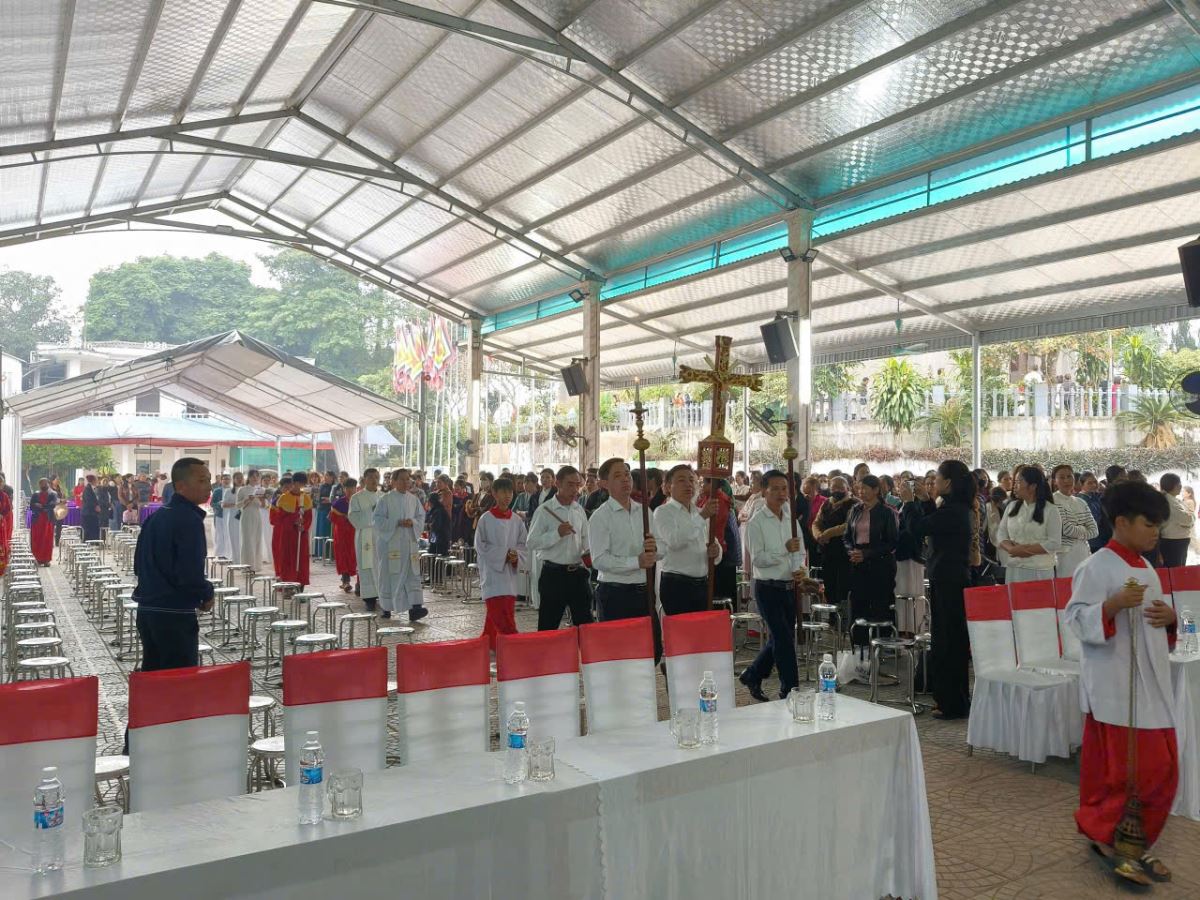 Sau nghi thức khai mạc, cộng đoàn long trọng rước Thánh giá Chúa về nhà Đức Mẹ La Vang.