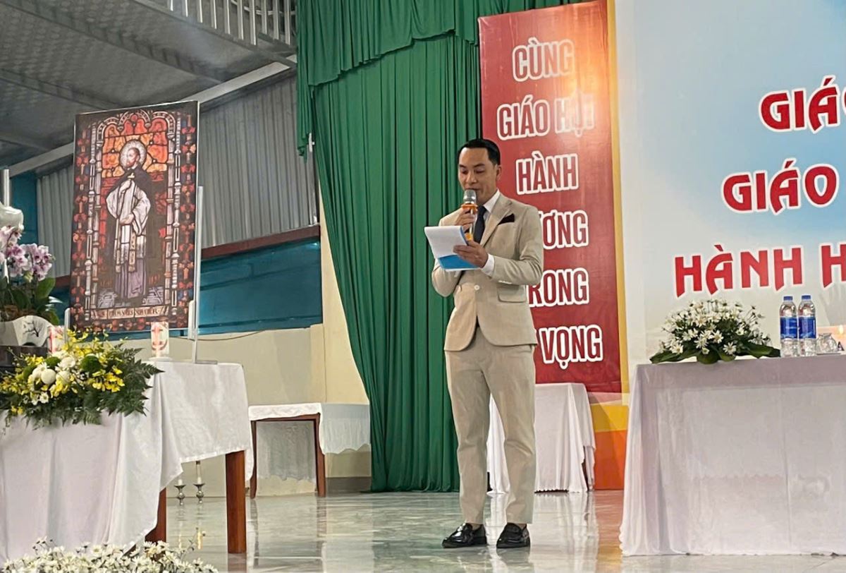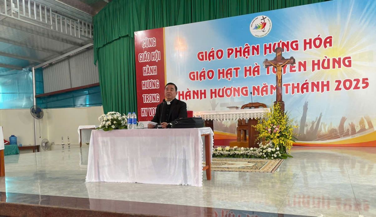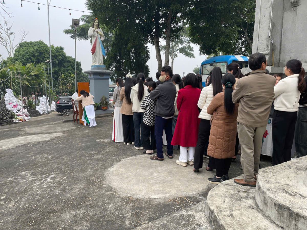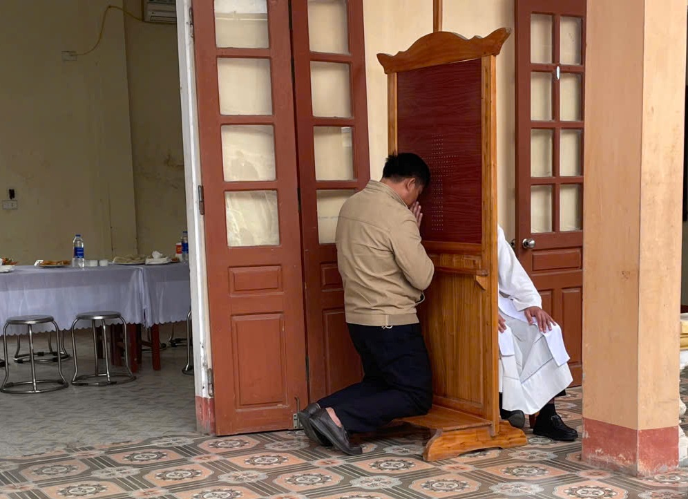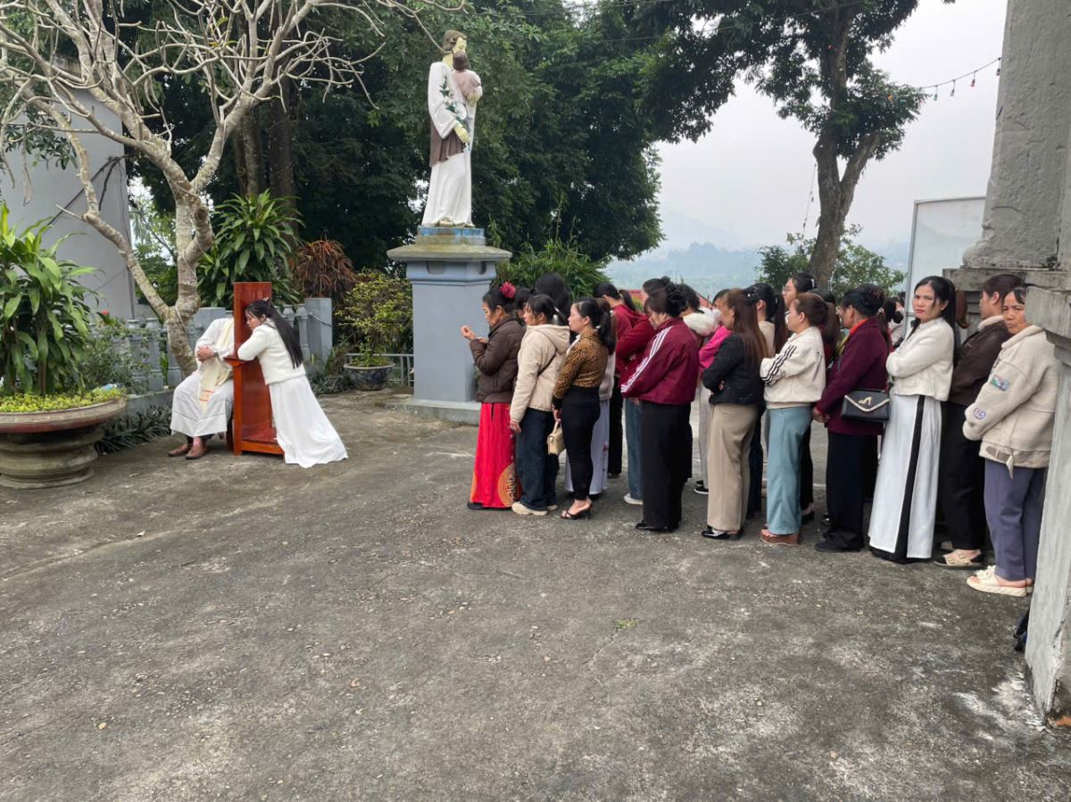 Tại nhà Đức Mẹ La Vang, cộng đoàn lắng nghe cha Giuse Dương Đức Dũng chia sẻ về chủ đề Năm Thánh. Ngài cũng giúp cộng đoàn hồi tâm xét mình để chuẩn bị lãnh nhận Bí tích Hòa Giải – điều kiện cần thiết để lãnh nhận ơn toàn xá.