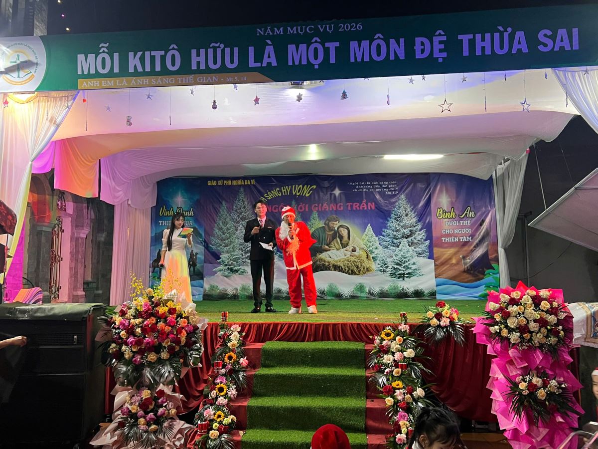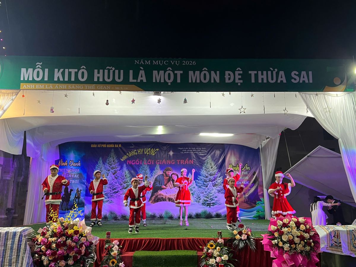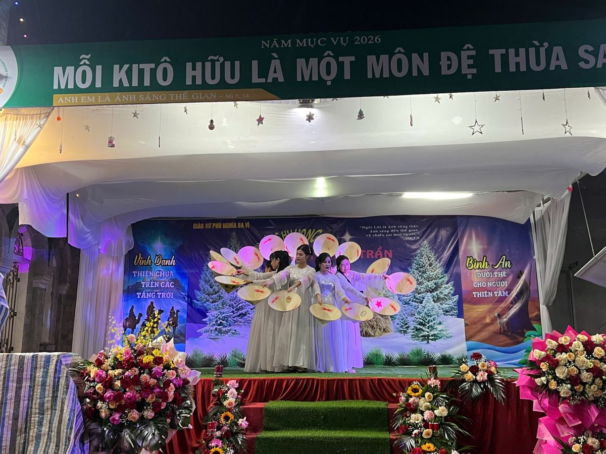 WGPHH - Vào những buổi tối, ngày 18, 21, 23 và 24 tháng 12 năm 2025, lần lượt các giáo họ Thuần Mỹ, Bình Yên, Kiều Mộc, Trung Hà và giáo xứ Phú Nghĩa đã tổ chức đêm hoan ca mừng Chúa Giáng Sinh, quy tụ rất đông cộng đoàn dân Chúa và anh chị em tôn giáo bạn đến tham dự. Trong đêm mừng Chúa Giáng Sinh có sự hiện diện của cha xứ Antôn Maria Phan Văn Trịnh, Thầy xứ, quý Ban hành giáo giáo xứ và các giáo họ, cùng toàn thể giáo dân trong và ngoài giáo xứ. Sự hiện diện đông đảo này đã thể hiện tinh thần hiệp nhất, cùng nhau mừng Con Thiên Chúa giáng trần làm người để đem ơn cứu độ cho nhân loại.