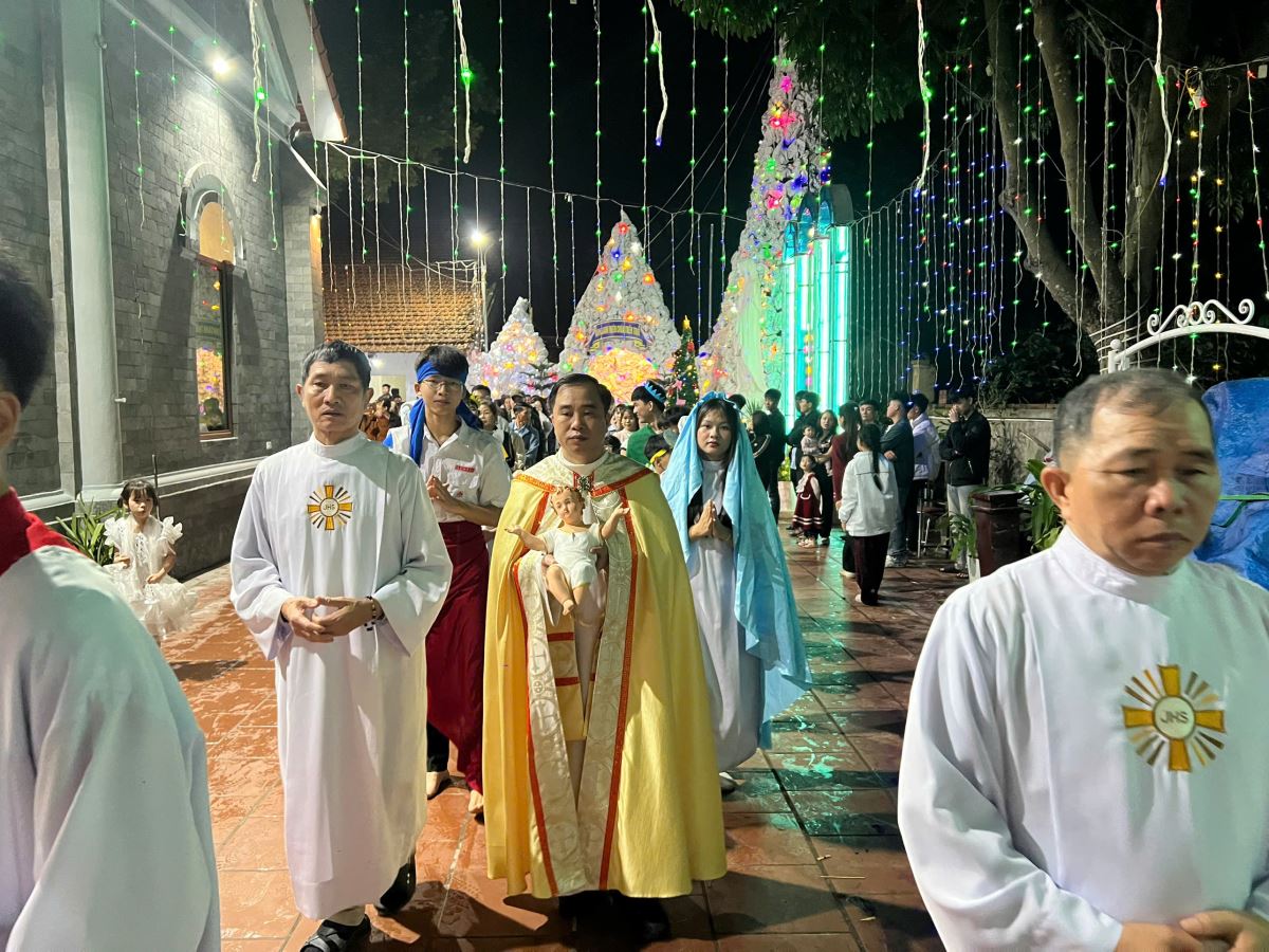 Cha Antôn Maria đã long trọng khai mạc đêm hoan ca mừng Chúa Giáng Sinh cho các giáo họ. Qua lời chúc, Cha mời gọi mỗi người hãy trở nên một môn đệ thừa sai, vì “Anh em là ánh sáng thế gian” (Mt 5, 14), và mở rộng tâm hồn để đón nhận ơn phúc của Chúa Hài Đồng - Đấng mang đến bình an, yêu thương và hy vọng. Tất cả mọi người tạ ơn Thiên Chúa và vỗ tay nồng nhiệt qua lời chúc của Cha.