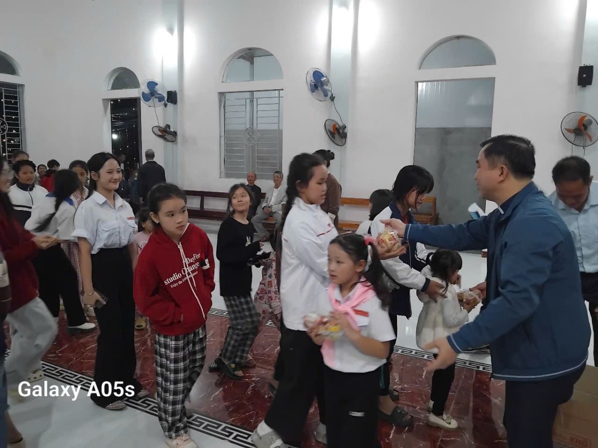 Chương trình văn nghệ chung của giáo xứ cũng được bắt đầu vào tối 24 tháng 12 với những tiết mục sôi động, tươi vui và đầy ý nghĩa, lần lượt là các tiết mục biểu diễn của giới hiền mẫu, giới phụ nữ thôn xóm, huynh trưởng, và các em thiếu nhi. Mỗi tiết mục là một lời ca, một điệu múa dâng lên Chúa Hài Đồng để bày tỏ niềm hân hoan chúc tụng. Xen kẽ trong các tiết mục văn nghệ là những câu hỏi vui của ông già Noel dành cho các em thiếu nhi. Qua phần giao lưu sinh động này, các em không chỉ được vui chơi mà còn được nhắc nhớ về ngày mà Chúa Giêsu đã sinh ra nơi Bêlem năm xưa. Niềm vui của các em càng thêm trọn vẹn khi có thêm nhiều ông già Noel xuất hiện và trao những phần quà yêu thương, mang lại tiếng cười và niềm vui cho các em.