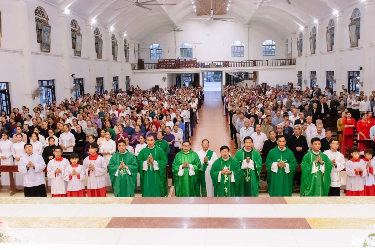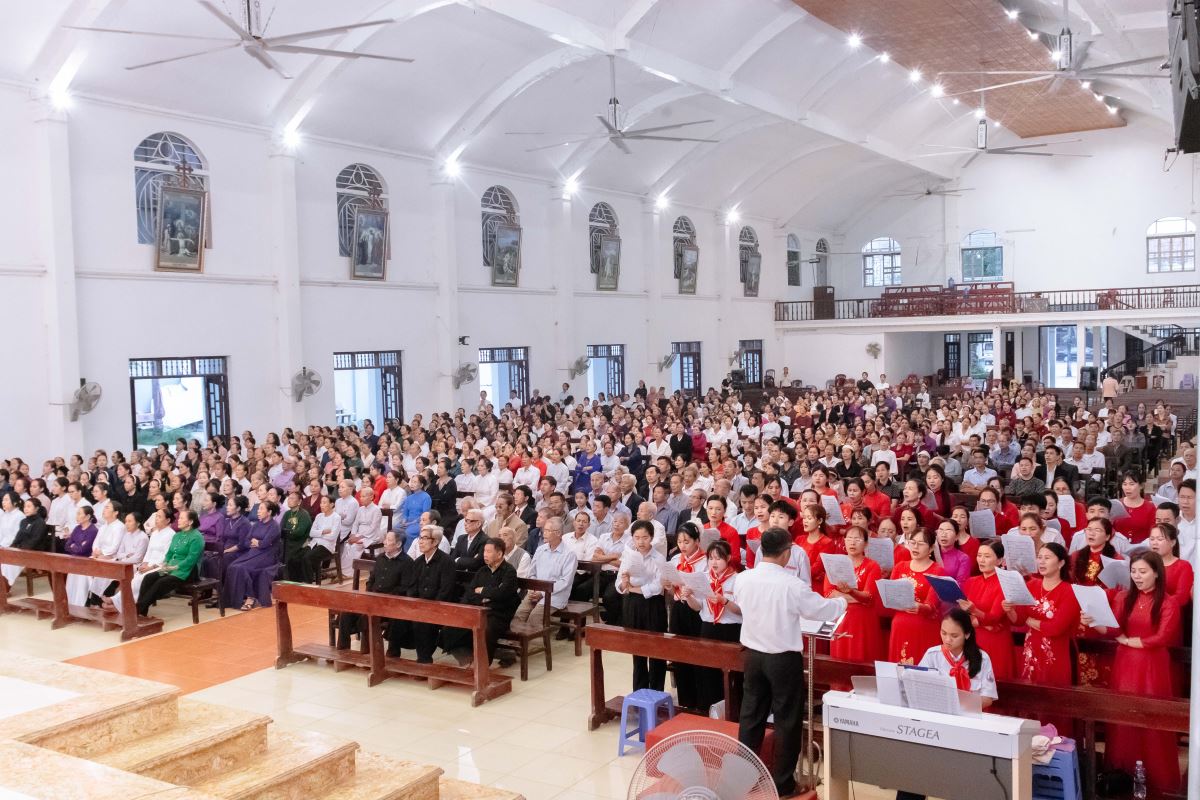 Ngay từ đầu giờ chiều, khuôn viên nhà thờ Hoàng Xá trở nên đầy sức sống với sự hiện diện đông đảo của cộng đoàn đến từ các giáo xứ bạn. Ai nấy đều hân hoan, mang trong lòng niềm vui được trở về bên Chúa là Cha nhân lành.