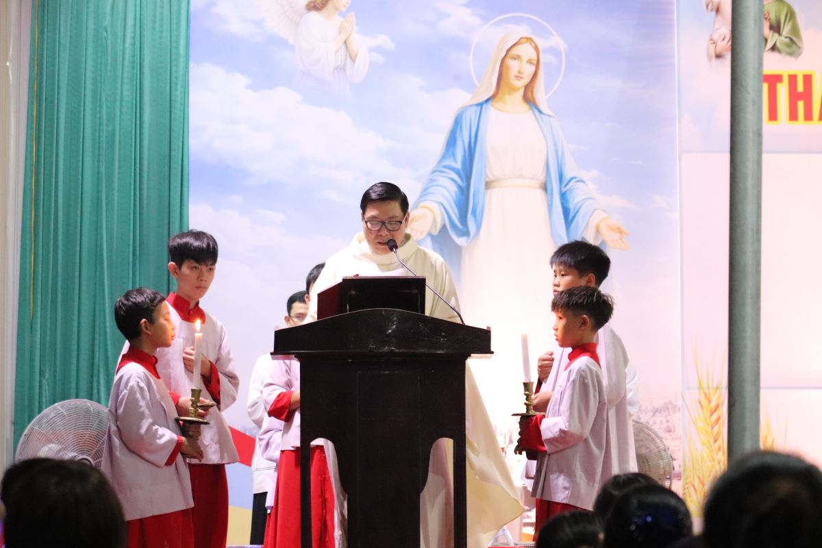 Thánh lễ do cha xứ Antôn Vũ Thái San chủ sự, cùng sự hiện diện của quý thầy, Ban Hành giáo và đông đảo cộng đoàn dân Chúa.