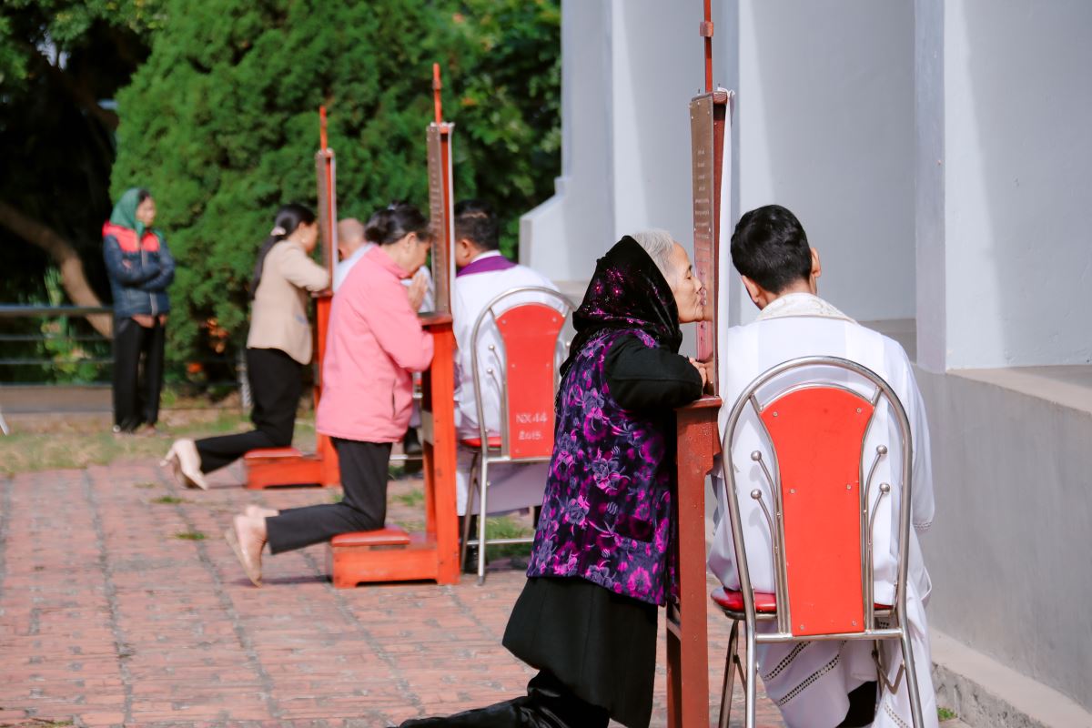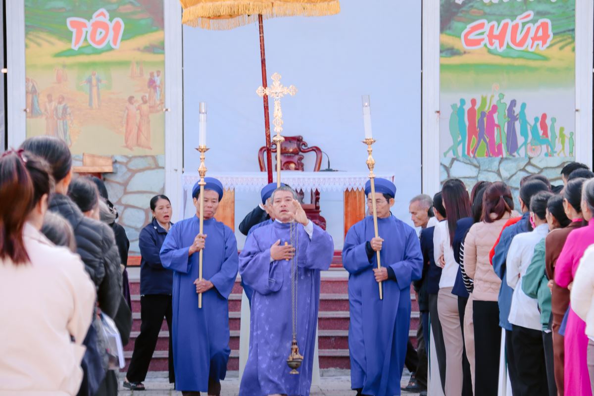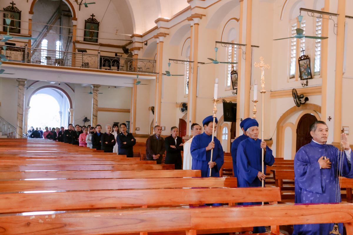 Tiếp nối, cộng đoàn bước vào nhà thờ tham dự giờ tĩnh tâm xét mình do quý Dì Hội dòng Mến Thánh Giá phụ trách. Giờ tĩnh tâm là thời gian quý báu để mỗi người nhìn lại đời sống đức tin, chuẩn bị tâm hồn xứng đáng để lãnh nhận hồng ân năm thánh.