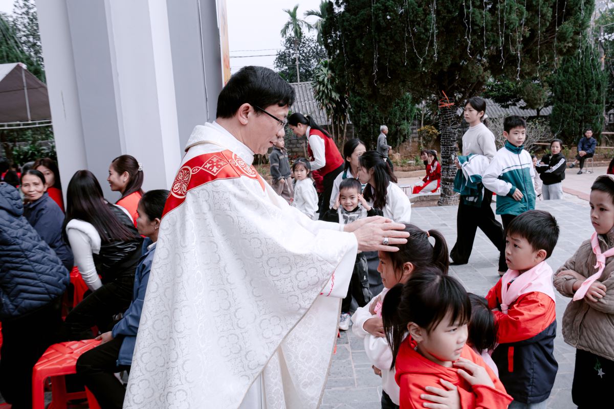 Ngay sau nghi thức cắt băng, Đức cha Phaolô Nguyễn Quang Đĩnh đã chủ sự nghi thức làm phép Nhà Giáo lý, rảy nước thánh trên công trình và dâng lời cầu nguyện xin Thiên Chúa thánh hóa nơi đây. Trong lời huấn từ, Đức cha nhấn mạnh: “Nhà Giáo lý này sẽ là môi trường ươm mầm đức tin, giúp các em thiếu nhi và người trẻ được học hỏi Lời Chúa, từng bước trưởng thành trong đời sống Kitô hữu.”