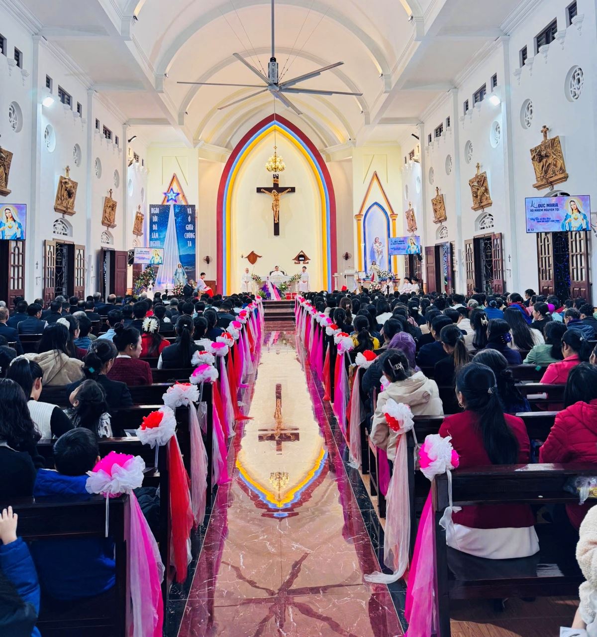 Khởi đầu chuỗi chương trình bằng Thánh lễ Mẹ Thiên Chúa trọng thể lúc 6g00 sáng, cộng đoàn cùng dâng năm mới lên Thiên Chúa qua lời chuyển cầu của Mẹ Maria. Từ bàn tiệc Thánh Thể, mọi người được mời gọi bước ra để sống đức tin giữa đời, cụ thể hóa định hướng năm mục vụ 2026: mỗi Kitô hữu là một môn đệ thừa sai, đem ánh sáng Tin Mừng thấm vào từng sinh hoạt đời thường.