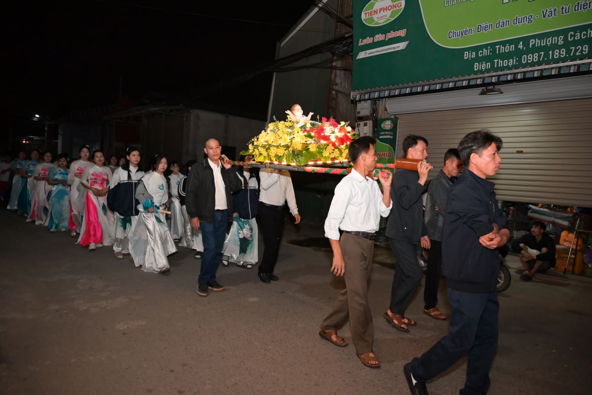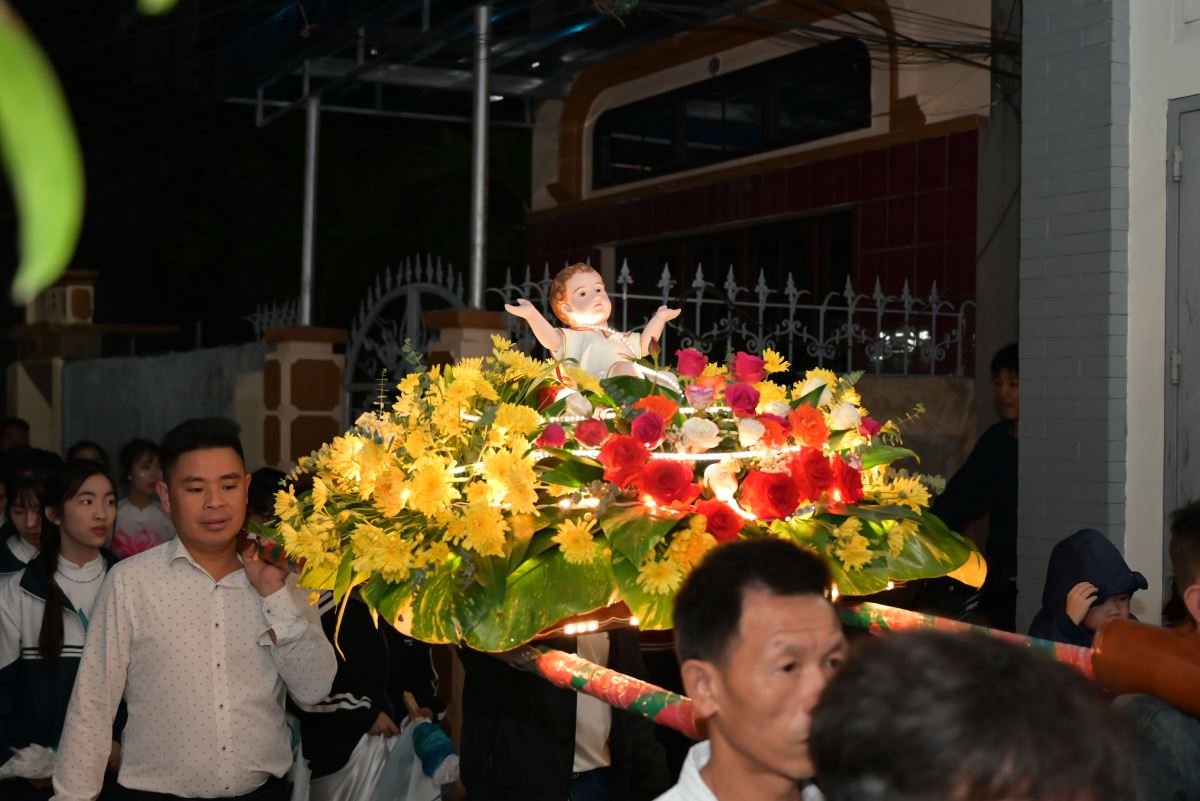 Thánh lễ khép lại lúc 19g45. Sau Thánh lễ, giáo họ Cầu Cải tổ chức rước kiệu cung nghinh Chúa Hài Đồng xung quanh khu vực dân cư gần nhà thờ với quãng đường di chuyển khoảng 1km. Cuộc cung nghinh kiệu Chúa Hài Đồng tại giáo họ Cầu Cải diễn ra trong bầu khí vui tươi, tất cả cùng hướng lòng về tượng Chúa Hài Đồng để tôn kính và ngợi ca.