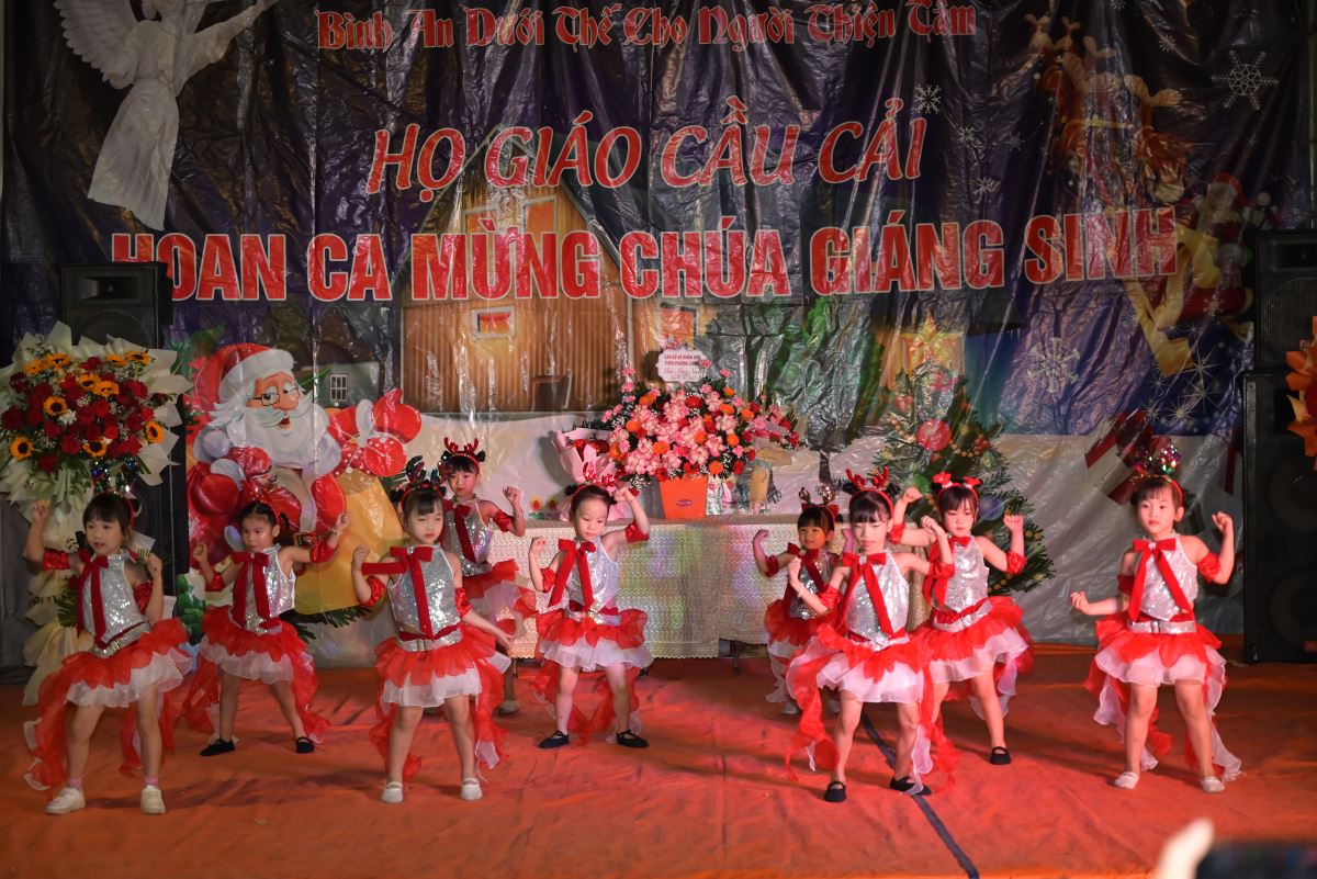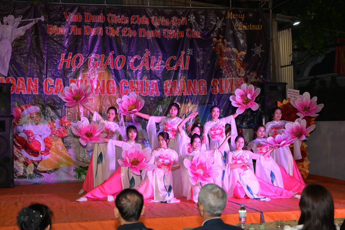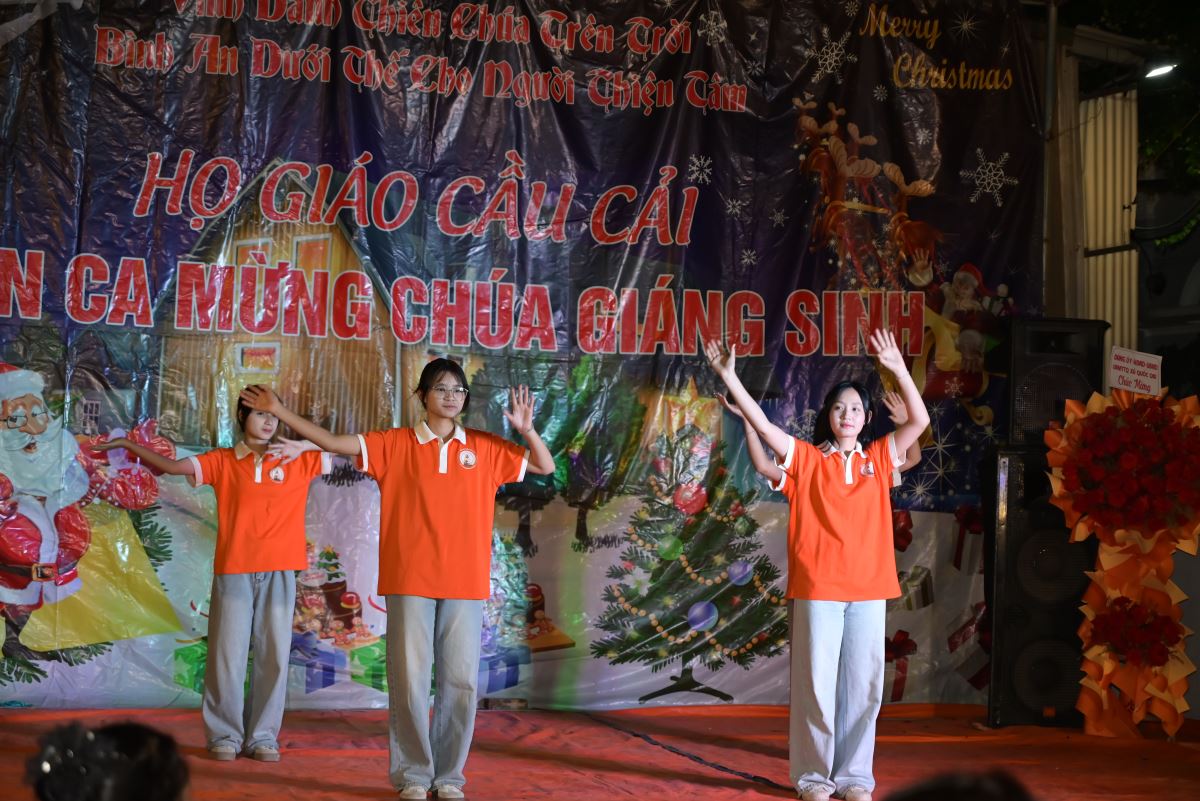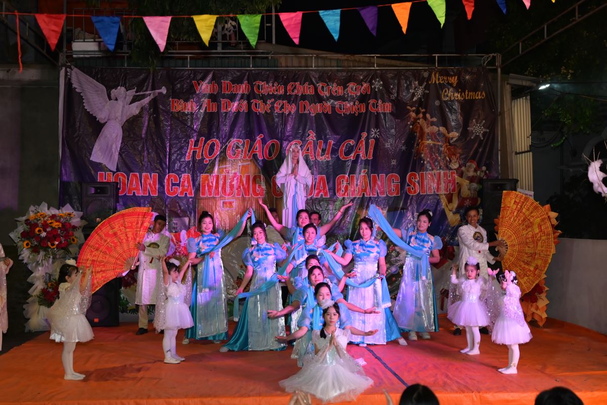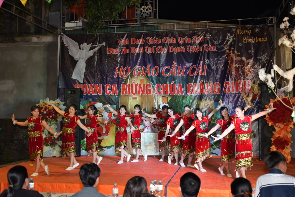 Với hơn 10 tiết mục múa, hát, các vũ điệu đến từ các diễn viên không chuyên, đêm hoan ca mừng Chúa Giáng sinh 2025 tại giáo họ Cầu Cải đã thu hút sự quan tâm theo dõi của đông đảo bà con giáo dân và lương dân xung quanh nhà thờ.