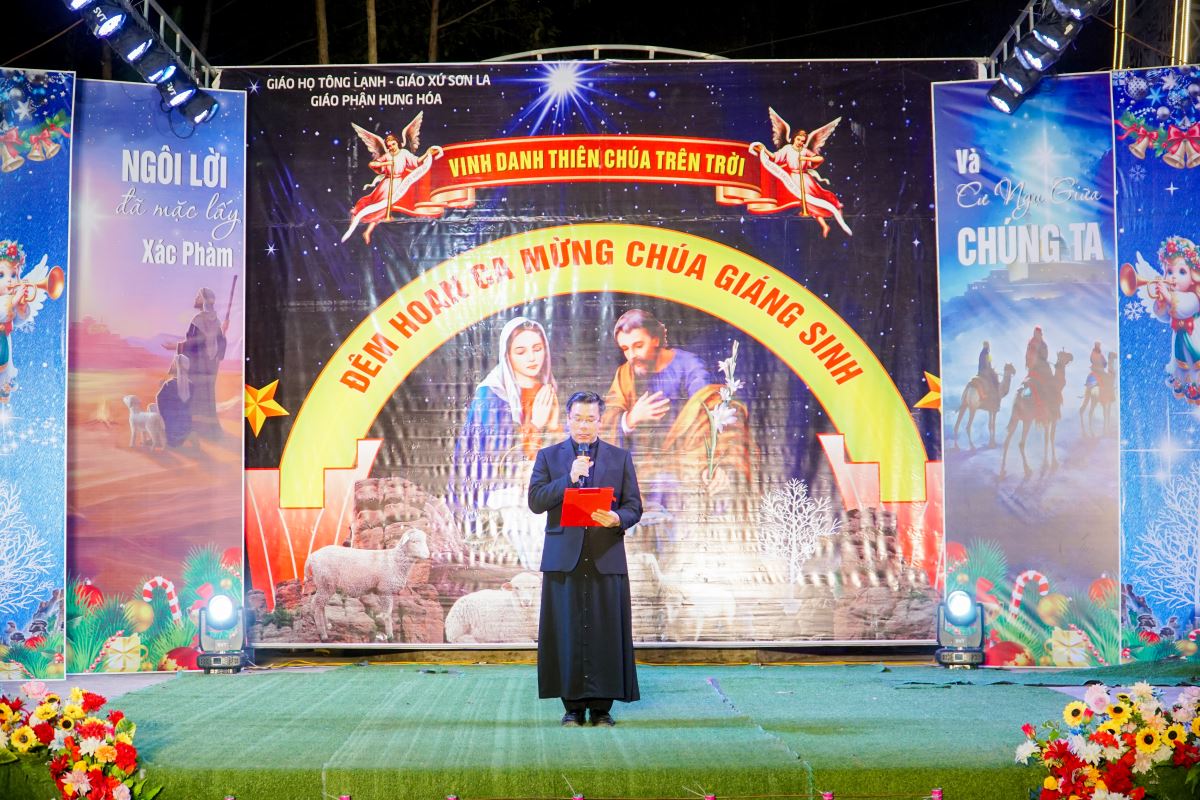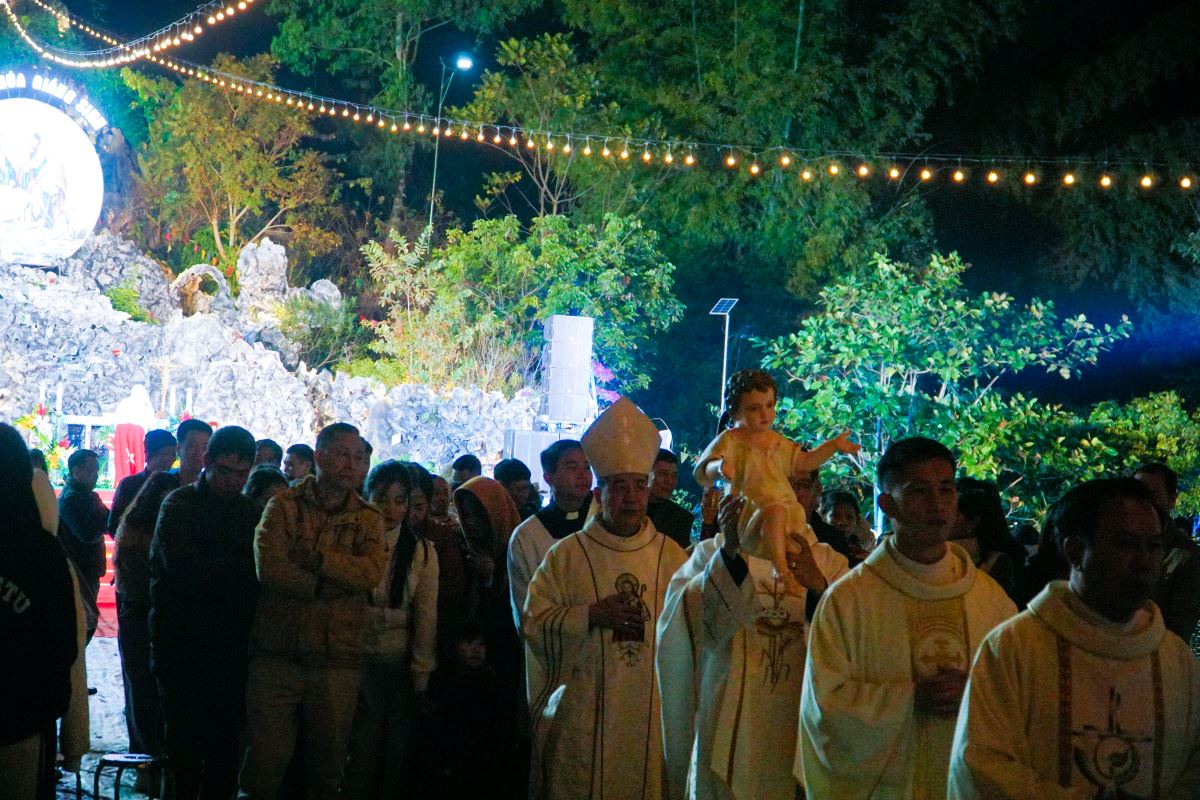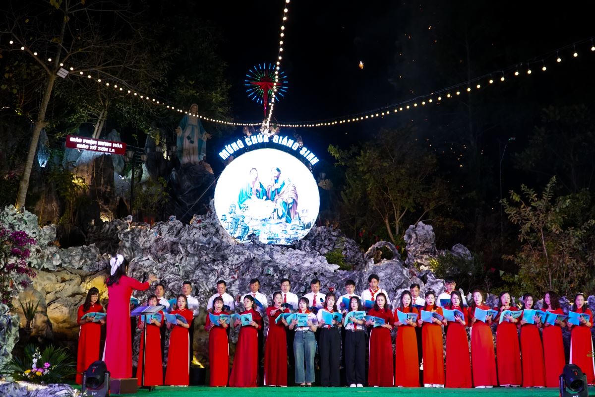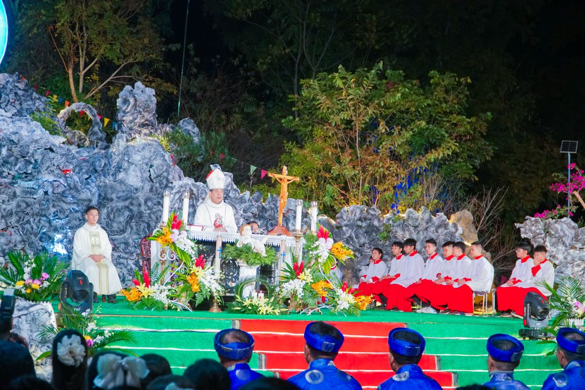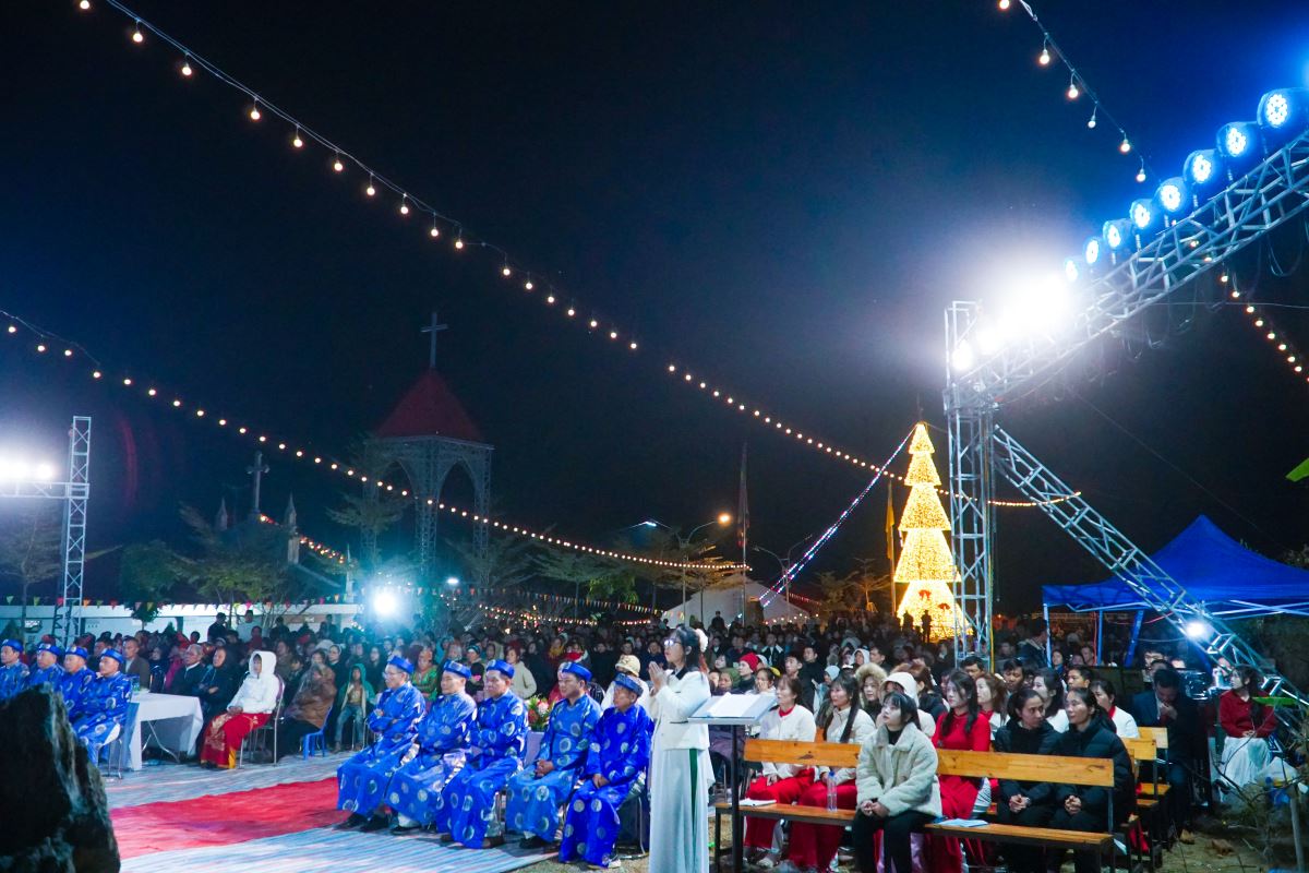 Cao điểm là Thánh lễ Đêm Giáng Sinh do Đức cha Đaminh Hoàng Minh Tiến, Giám mục chính tòa Giáo phận Hưng Hóa, chủ tế. Đức cha đã gửi lời chúc bình an của Chúa Hài Đồng đến toàn thể cộng đoàn, quý khách và anh chị em tôn giáo bạn. Đồng tế với Đức cha có quý cha Tòa Giám mục, quý cha chính – phó xứ, quý thầy, quý dì và đông đảo bà con lương giáo.