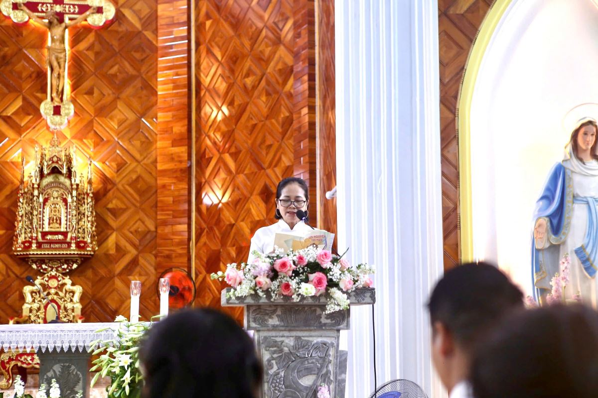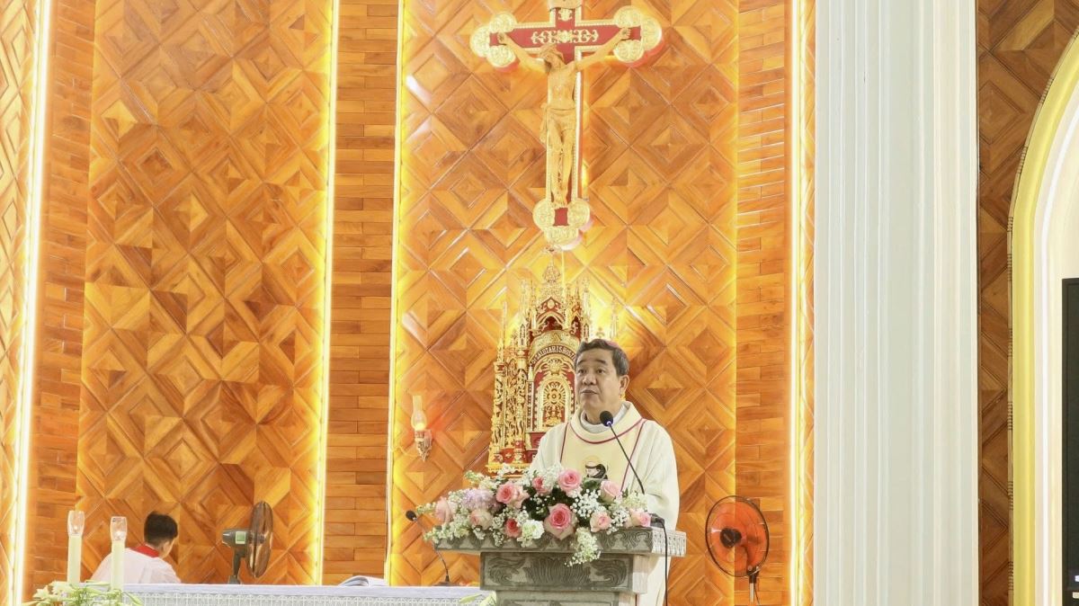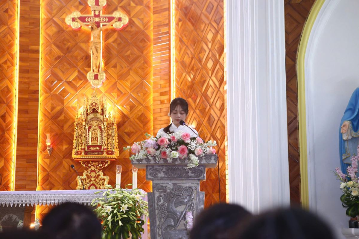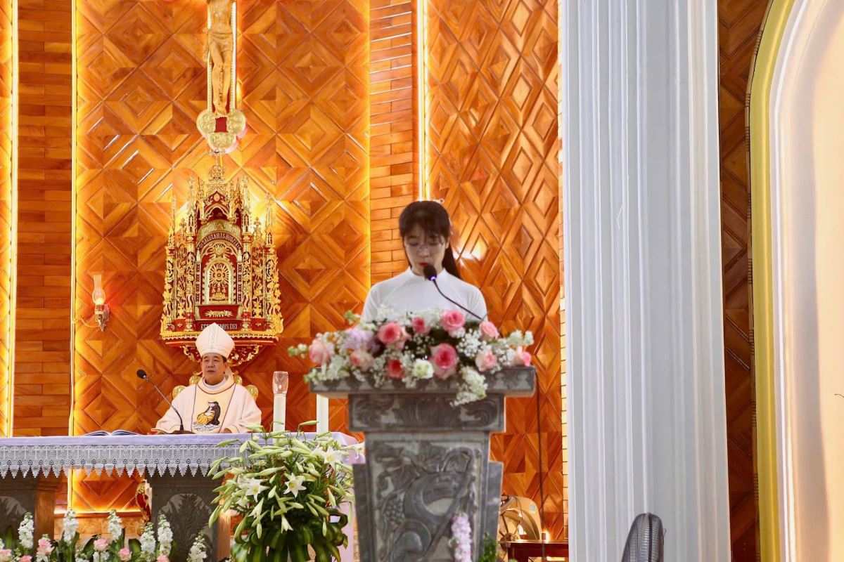 Sau khi nghe các bài đọc trong phần Phụng vụ Lời Chúa, Đức Cha Đa-minh chia sẻ và nhấn mạnh rằng mỗi Kitô hữu được mời gọi trở thành Tin Mừng Phục Sinh sống động. Ngài mời gọi cộng đoàn sống niềm tin vào Chúa Kitô Phục Sinh – Đấng đem lại ánh sáng và hy vọng cho nhân loại.