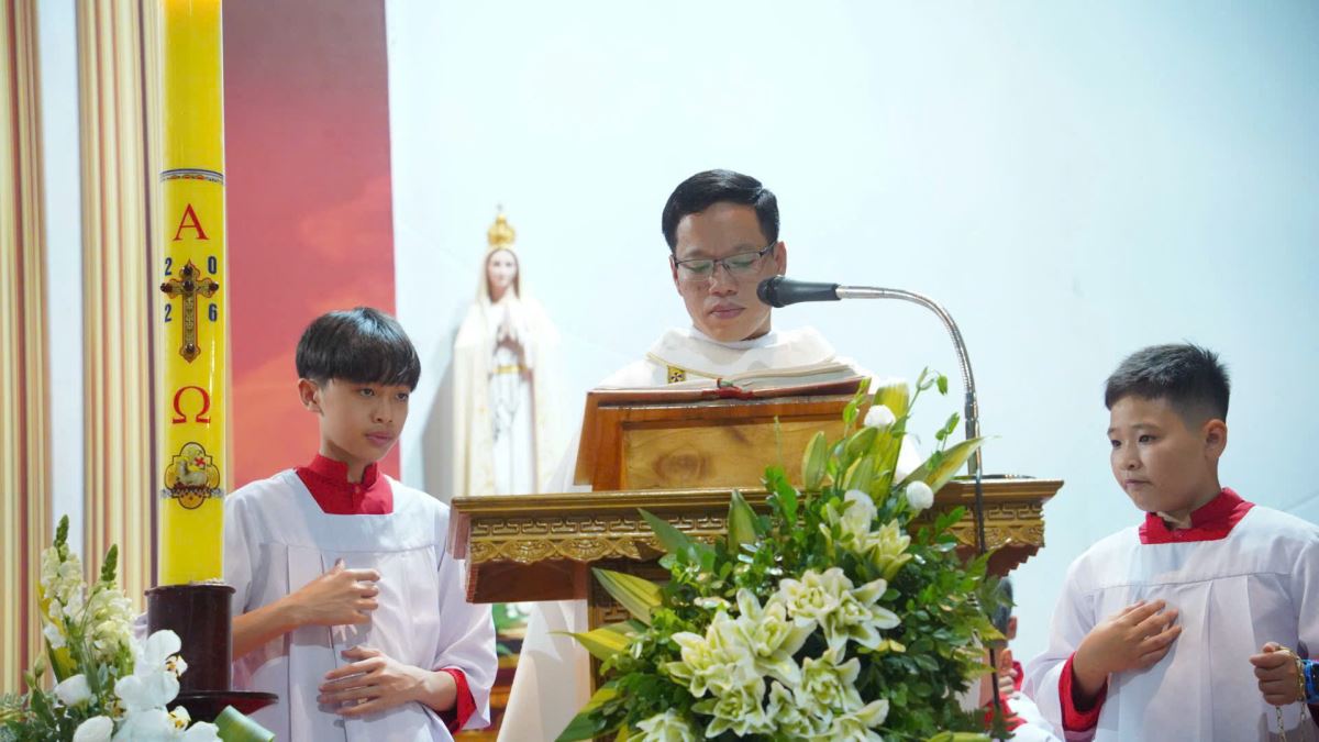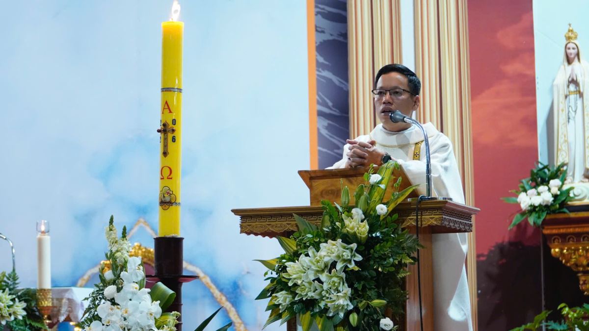 Trong bài giảng, Cha xứ Giuse đã nhấn mạnh về ý nghĩa thiêng liêng của ánh sáng Phục Sinh. Ngài nhắn nhủ cộng đoàn: "Ánh sáng từ cây nến Phục Sinh đêm nay không chỉ là biểu tượng, mà chính là sự hiện diện sống động của Chúa Kitô. Ngài đã chiến thắng bóng tối của tội lỗi để thắp sáng hy vọng cho cuộc đời mỗi chúng ta. Khi mỗi người cầm ngọn nến trên tay, chúng ta được mời gọi hãy trở nên những 'ngọn nến sống', Mang ánh sáng yêu thương và sự bình an của Chúa lan tỏa vào những góc khuất u tối của trần gian, giữa những lo âu và thử thách của cuộc sống thường ngày."