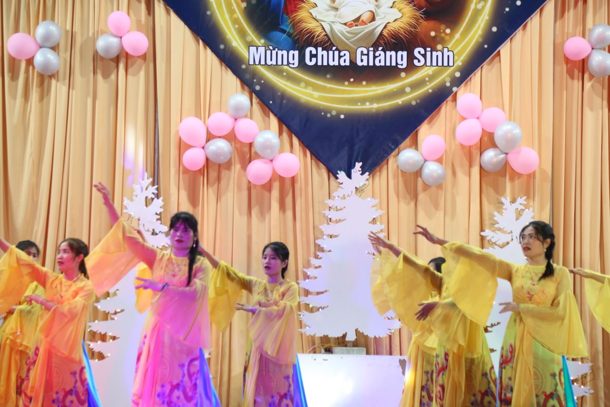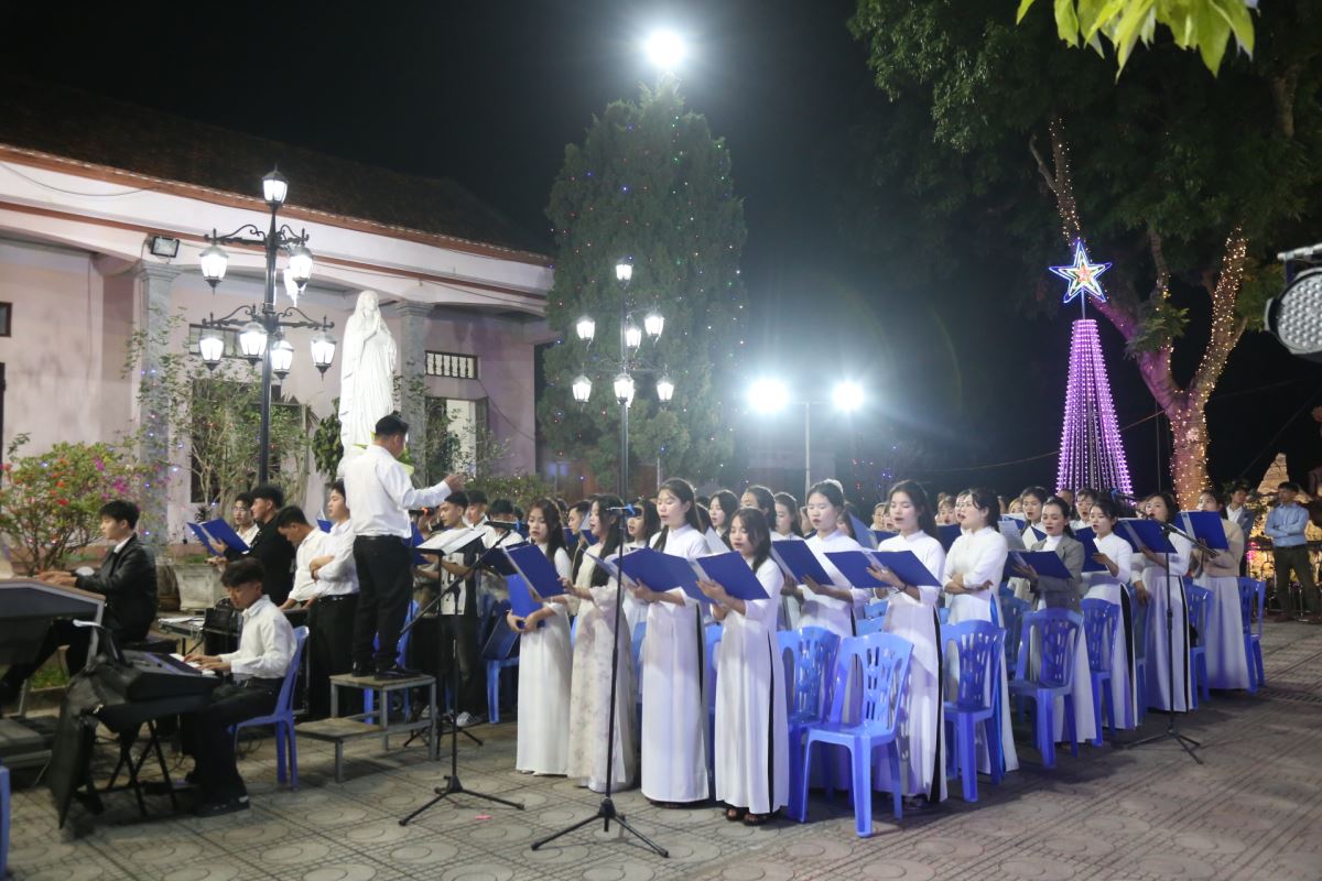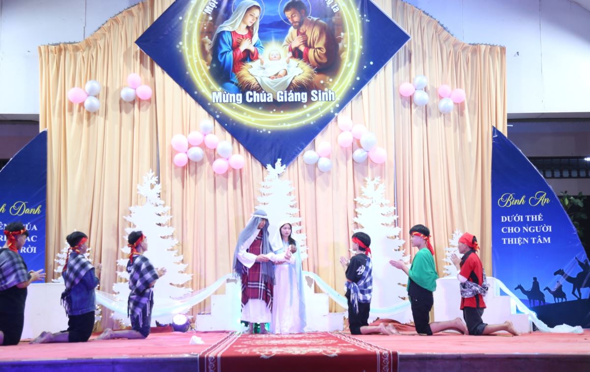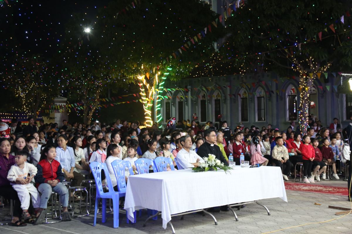 Tiếp đó là các tiết mục ca hát, múa, và hoạt cảnh do các em thiếu nhi và các anh chị huynh trưởng trong giáo xứ trình bày. Mỗi tiết mục là một lời ca tụng, một lời loan báo niềm vui cứu độ mà Thiên Chúa đã trao ban cho nhân loại qua mầu nhiệm Nhập Thể. Xen kẽ chương trình là phần trao quà của ông già Noel dành cho các em nhỏ, cùng giờ cầu nguyện Taizé dưới ánh nến lung linh, giúp cộng đoàn lắng đọng tâm hồn để chiêm ngắm Hài Nhi Giêsu.