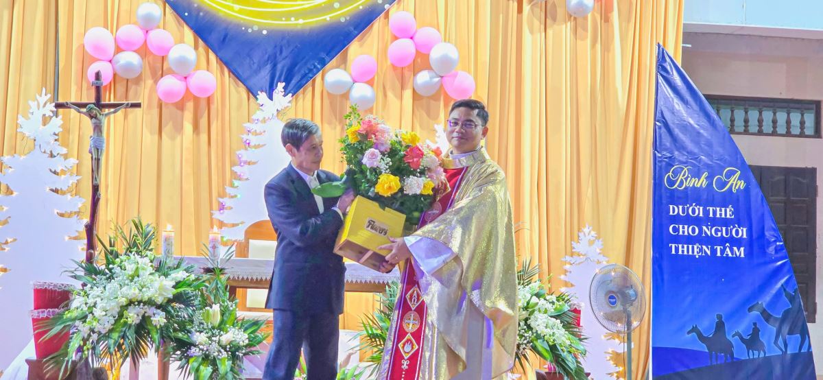 Trước khi Thánh lễ kết thúc, ông Chủ tịch Hội đồng Giáo xứ đã đại diện cộng đoàn dâng lời chúc mừng Giáng Sinh tới cha xứ Giuse, quý thầy, quý dì và toàn thể cộng đoàn, cầu chúc một mùa Giáng Sinh an lành, thánh đức và tràn đầy hồng ân của Chúa Giêsu Hài Đồng.