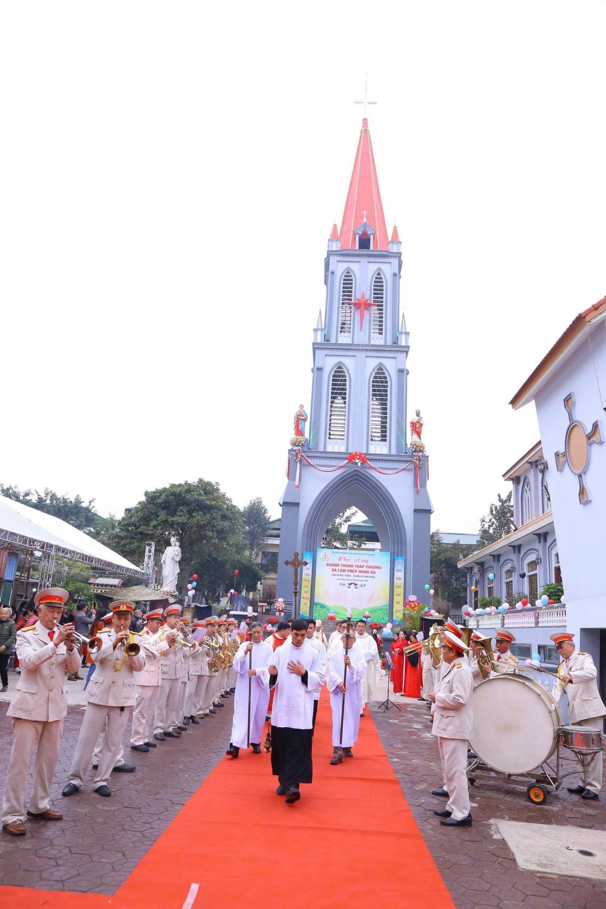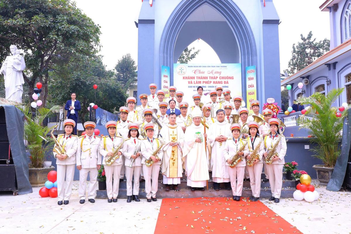 Sau đó là nghi thức làm phép tháp chuông với nghi thức cắt băng khánh thành. Khi dải băng khánh thành được cắt, những tràng pháo tay vang lên trong niềm xúc động, như lời tạ ơn chân thành dâng về Thiên Chúa – Đấng đã đồng hành và gìn giữ cộng đoàn qua bao thăng trầm.