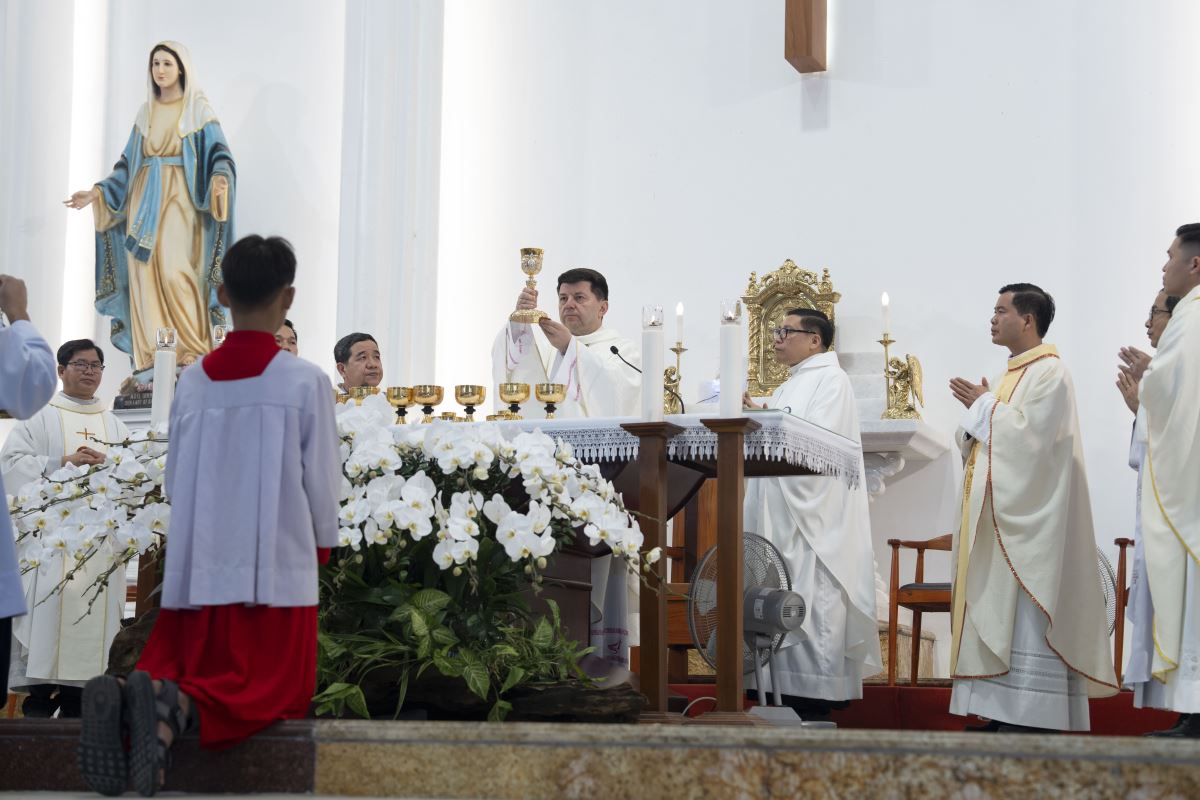 Sau bài giảng, Thánh lễ tiếp diễn với phần Phụng vụ Thánh Thể trong bầu khí trang nghiêm và sốt sắng.