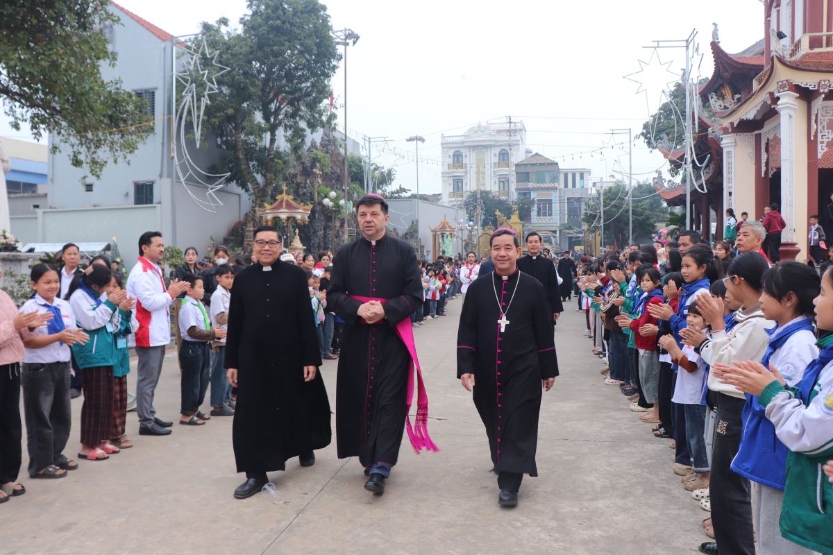 Đây là lần thứ hai Đức Tổng Giám mục Marek Zalewski đến thăm mục vụ Giáo xứ Hoàng Xá. Trước đó, vào ngày 13/10/2024, trong chuyến viếng thăm mục vụ, ngài đã chủ sự Thánh lễ ban Bí tích Thêm Sức cho 210 em thiếu nhi. Cũng trong Thánh lễ trọng thể hôm ấy, 343 em thiếu nhi của hai giáo xứ Hoàng Xá và Trại Sơn đã được lãnh nhận hồng ân Rước lễ lần đầu, để lại nhiều dấu ấn thiêng liêng sâu đậm trong đời sống đức tin của cộng đoàn.