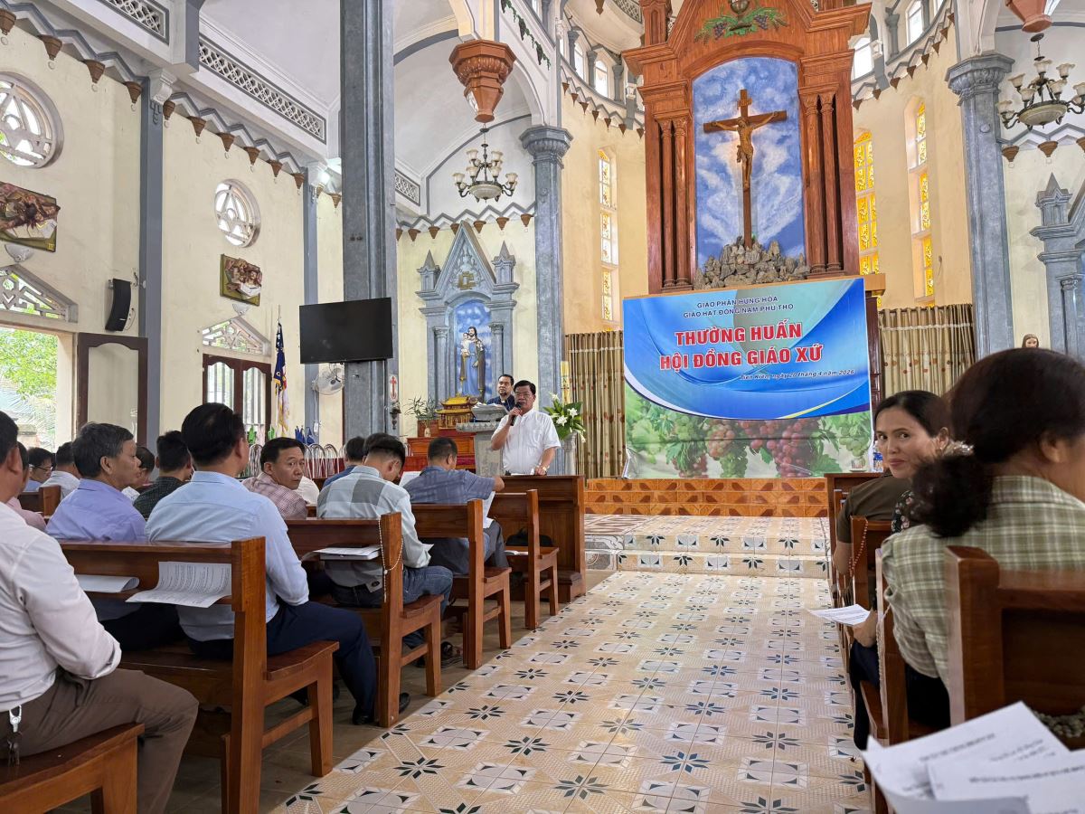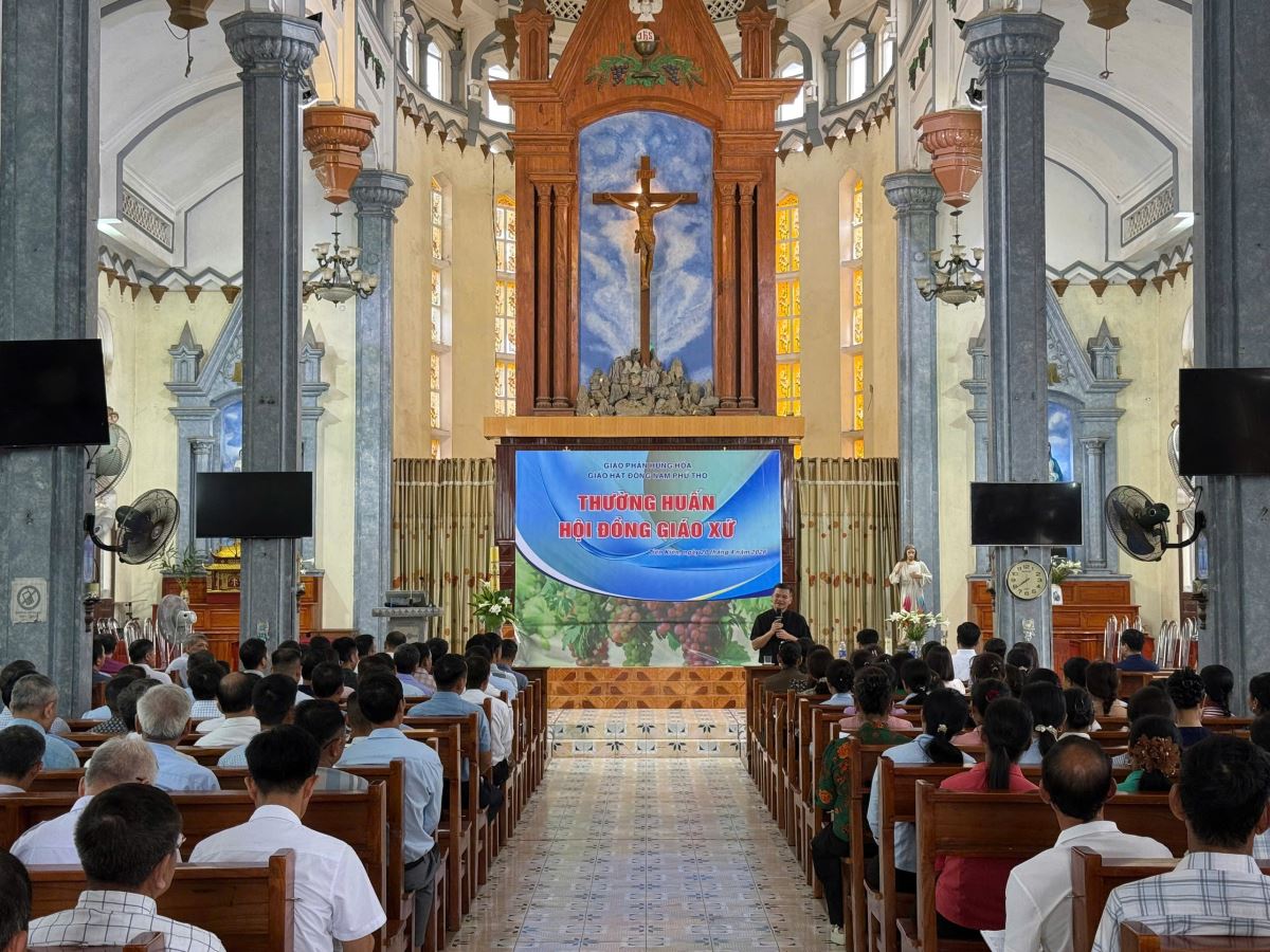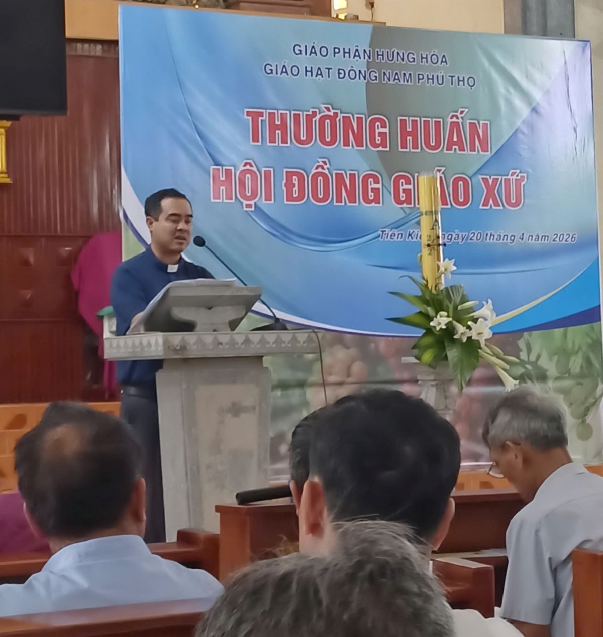 WGPHH - Ngày 20.4.2026, giáo hạt Đông Nam Phú Thọ đã tổ chức buổi thường huấn cho các thành viên Hội đồng Giáo xứ trong giáo hạt tại giáo xứ Tiên Kiên. Hiện diện trong buổi thường huấn có cha Giuse Nguyễn Văn Hùng – Quản hạt Đông Nam Phú Thọ, cha Giuse Nguyễn Ngọc Ngoạn - Phó Ban Mục vụ giáo dân giáo phận, cha Giuse Nguyễn Kim Hoàng – Trưởng Ban Mục vụ giáo dân giáo hạt, quý cha, quý ban điều hành mục vụ giáo hạt, quý Hội đồng các giáo xứ, chuẩn xứ và hơn 300 quý Ban Hành giáo trong Giáo hạt.