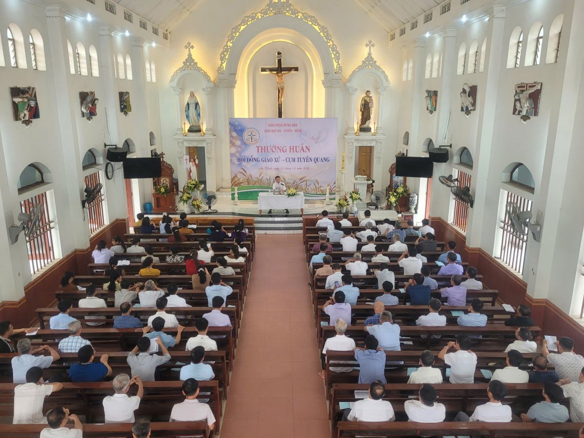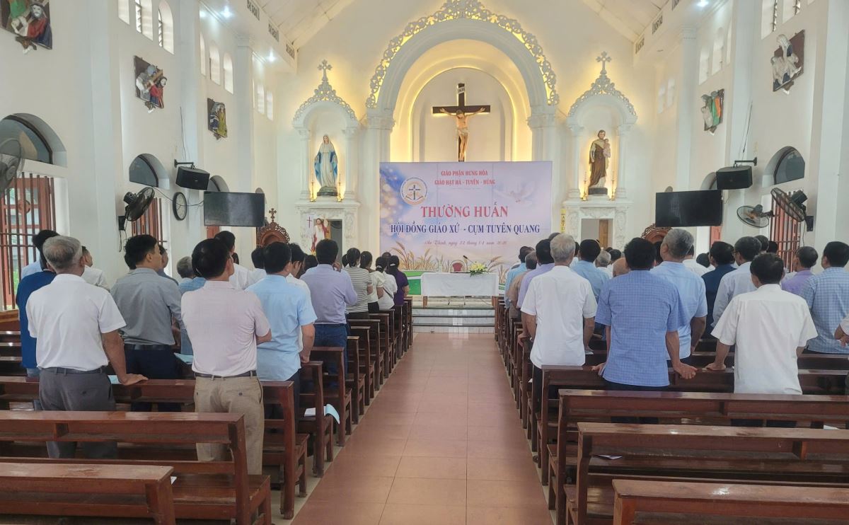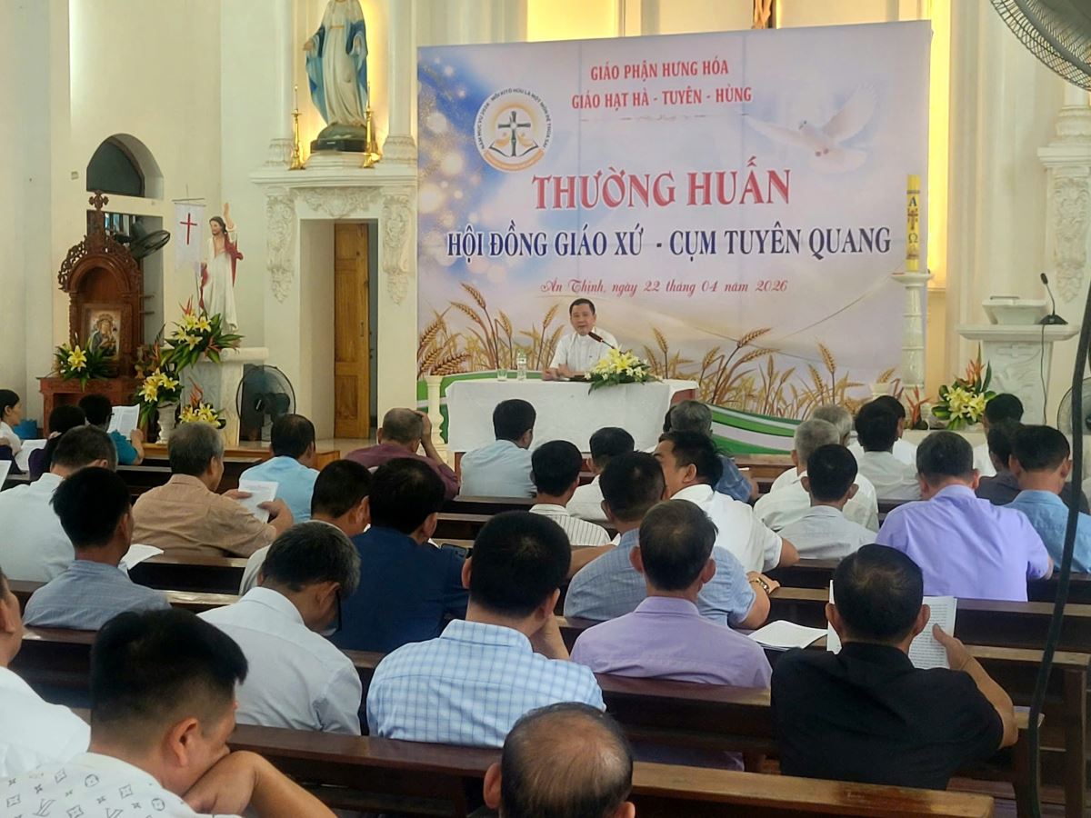 WGPHH - Vào lúc 7g30 sáng ngày 22/4/2026, tại Giáo xứ Ân Thịnh, buổi thường huấn dành cho Hội đồng Giáo xứ cụm Tuyên Quang đã được long trọng tổ chức trong bầu khí trang nghiêm và hiệp nhất. Chương trình quy tụ 120 quý chức Hội đồng Giáo xứ và Ban hành giáo đến từ các giáo xứ trong cụm, cùng sự hiện diện của Cha Giuse Đỗ Ngọc Tháp – đặc trách Ban Mục vụ Giáo dân Giáo hạt, và Cha Giuse Lâm Văn Việt – phó đặc trách Giáo xứ Ân Thịnh.