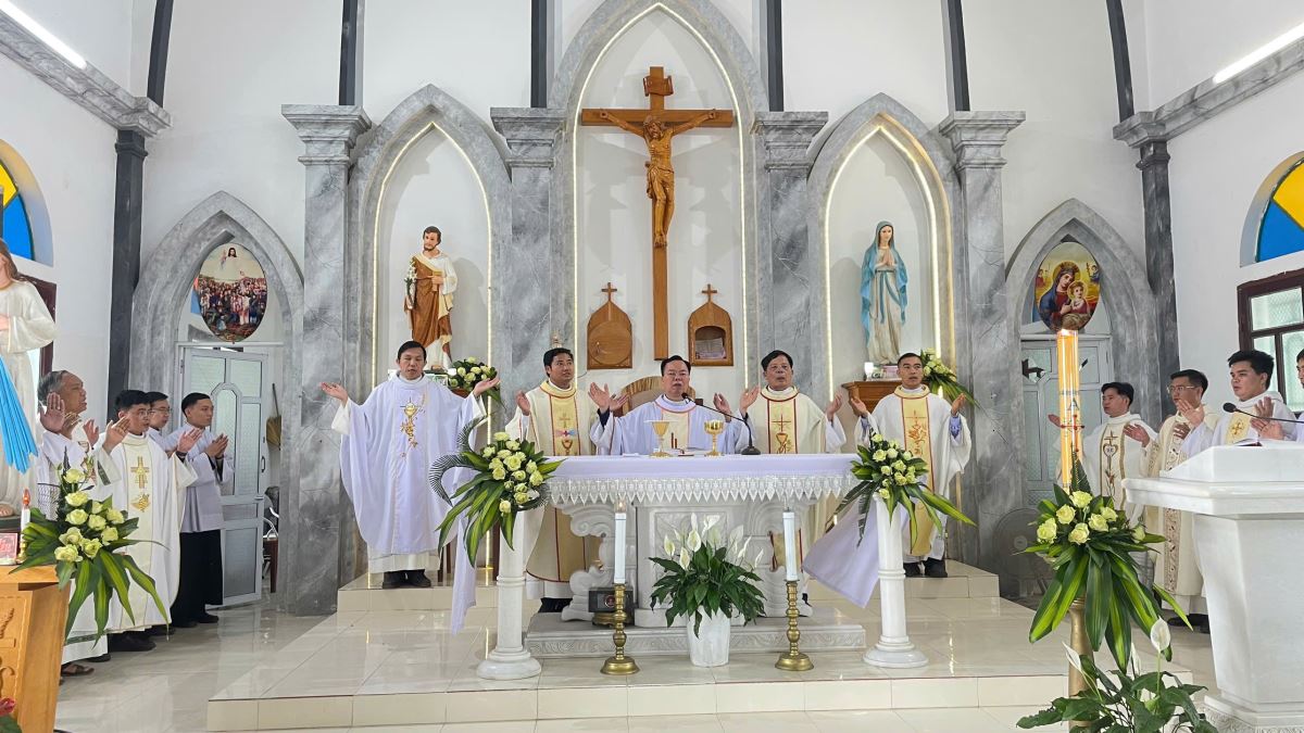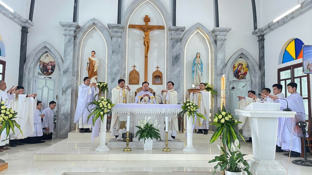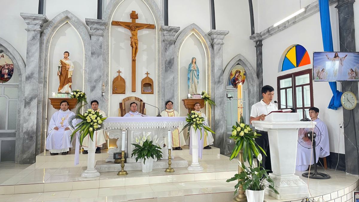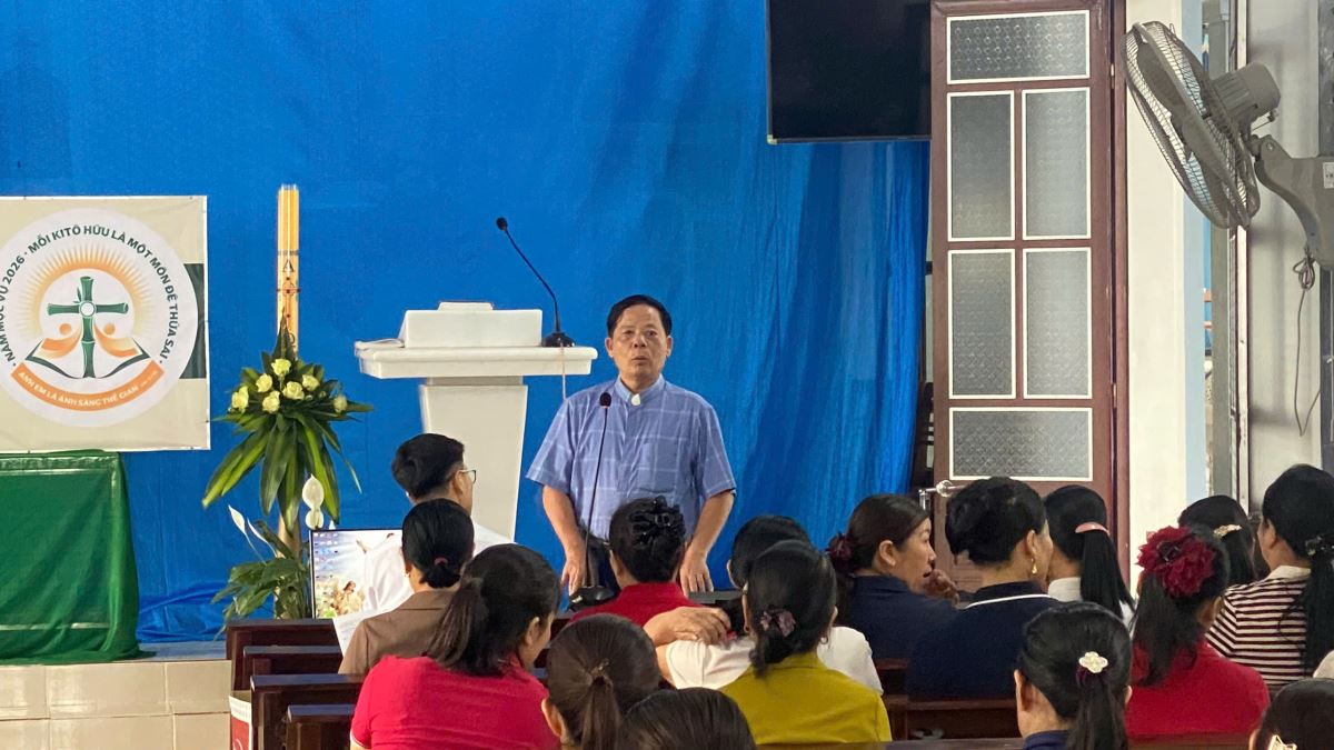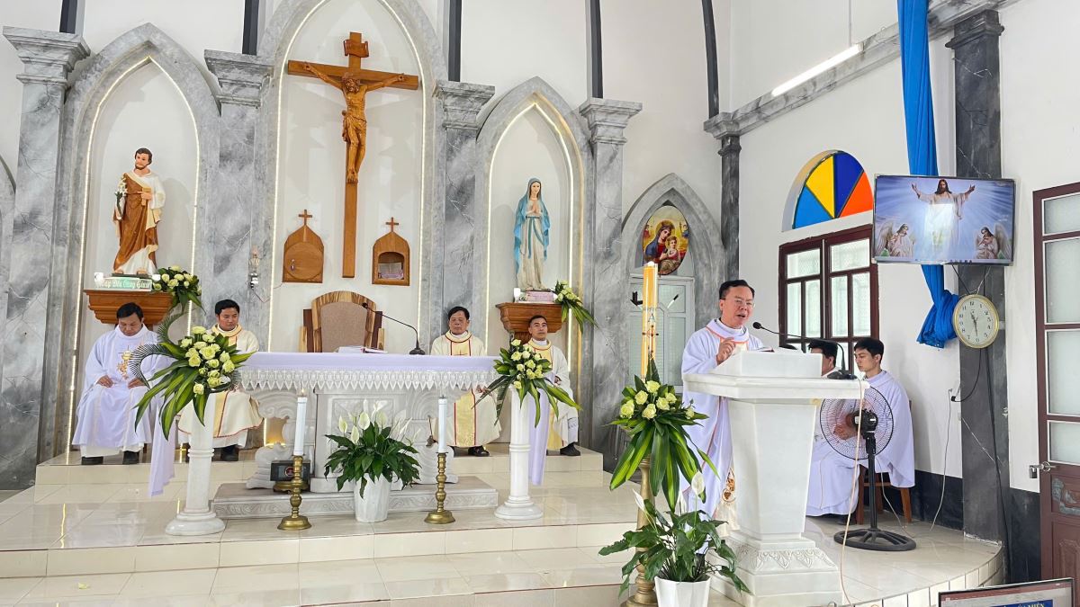 Sau lời nguyện hiệp lễ, cha Quản hạt nhắc lại ba định hướng mục vụ mà giáo hạt đã thống nhất trong dịp tổng kết năm 2025, gồm: cổ võ việc đọc kinh gia đình; thực hiện 5 phút học giáo lý trước mỗi Thánh lễ; và duy trì việc dạy giáo lý Chúa Nhật cho các em thiếu nhi quanh năm.