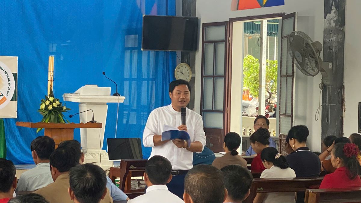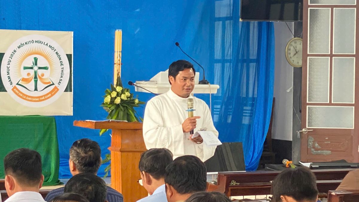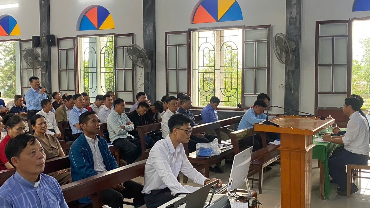 Sau phần khai mạc, quý chức bước vào giờ thường huấn thứ nhất với đề tài: Học hỏi Thư chung Hội đồng Giám mục Việt Nam 2025, do cha An-tôn Nguyễn Đức Hiểu – Phó đặc trách Ủy ban Giáo dân Giáo phận, trình bày. Trong phần chia sẻ, cha An-tôn nhấn mạnh: sứ mạng loan báo Tin Mừng không chỉ là ưu tiên hàng đầu của Giáo Hội, nhưng còn là trách nhiệm của mọi Kitô hữu.