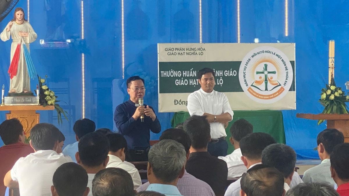 WGPHH - Sáng thứ Hai, ngày 20/4/2026, tại giáo xứ Đồng Lú, hơn 200 thành viên Hội đồng Giáo xứ thuộc các giáo xứ và chuẩn xứ trong giáo hạt Nghĩa Lộ đã quy tụ tham dự ngày thường huấn với chủ đề hướng đến việc củng cố căn tính và sứ mạng của người môn đệ thừa sai trong bối cảnh mục vụ hôm nay.
