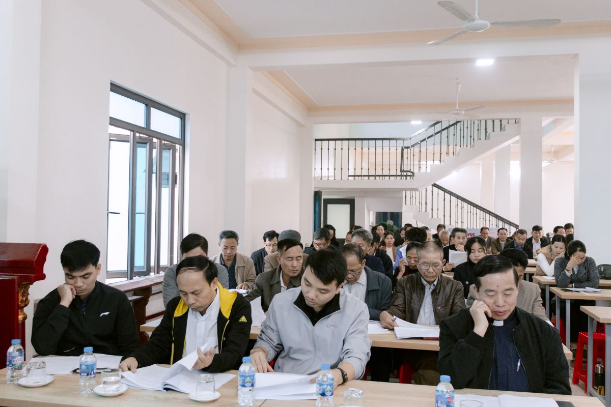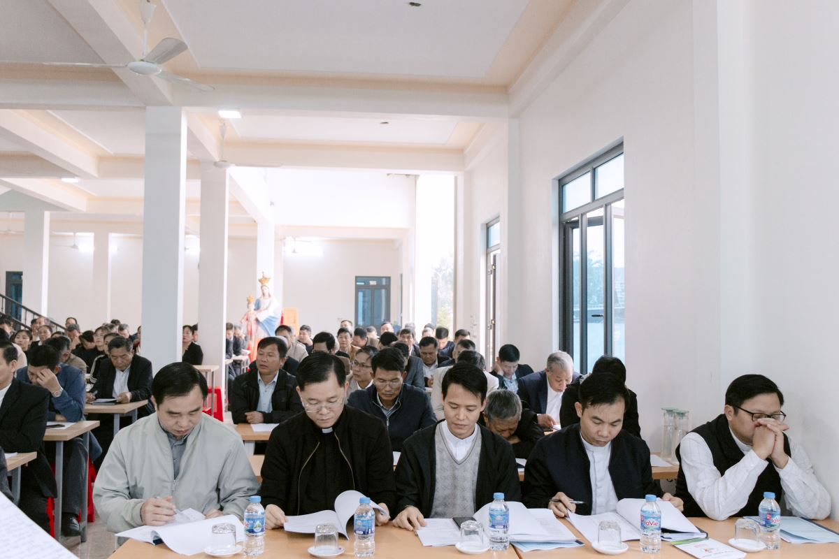 Mỗi bản báo cáo đều nhận được sự lắng nghe chăm chú và những góp ý chân thành từ các đại biểu. Cha Quản hạt đồng hành và định hướng, giúp hội nghị đạt được sự đồng thuận cao và mở ra những hướng đi đầy hy vọng cho năm mục vụ sắp tới.