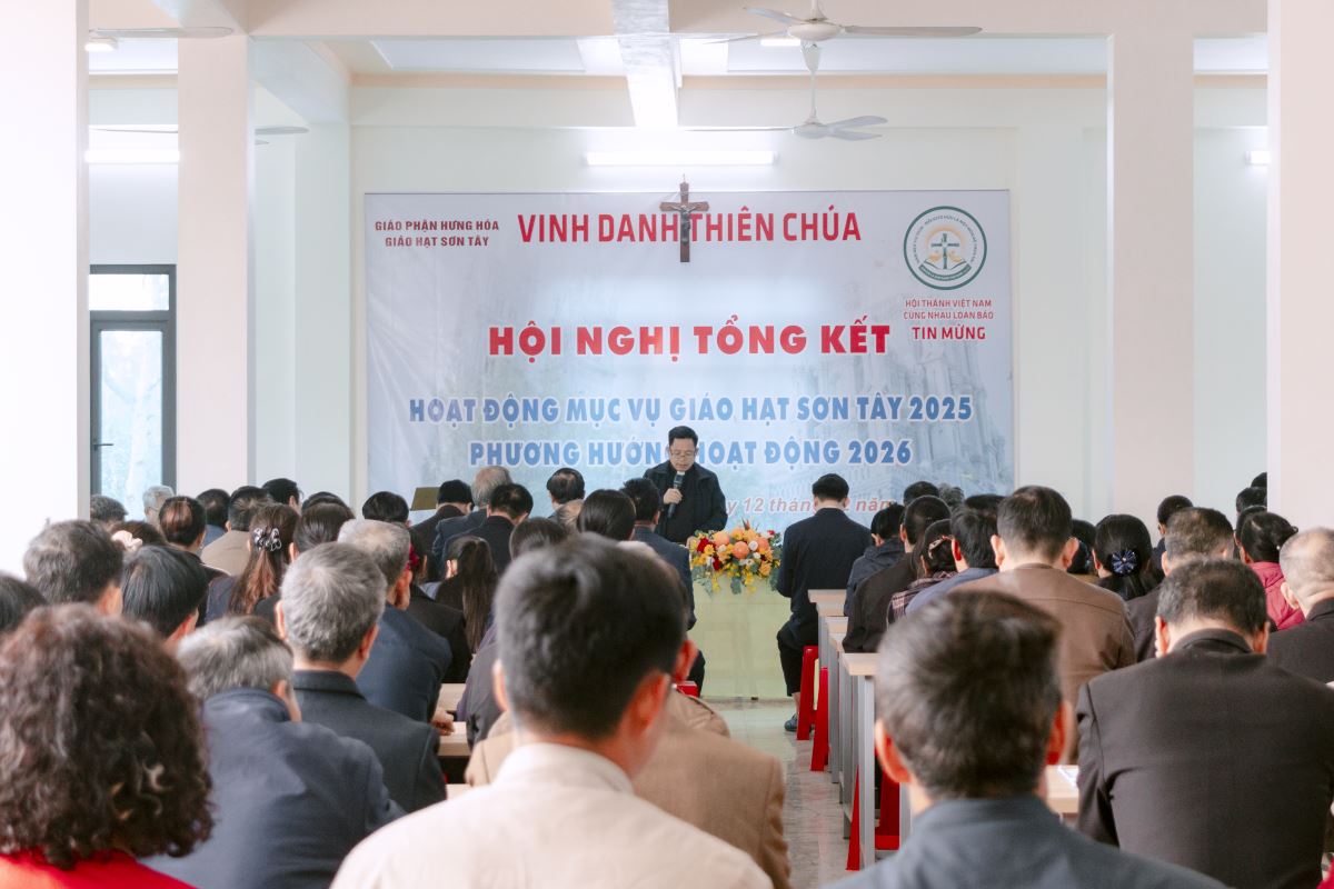 WGPHH – Sáng thứ Sáu ngày 12/12/2025, tại hội trường Nhà Mục vụ Giáo xứ Bách Lộc, Giáo hạt Sơn Tây đã tổ chức Hội nghị Tổng kết mục vụ năm 2025 và định hướng hoạt động cho năm 2026. Tham dự hội nghị có Cha Quản hạt Giuse Nguyễn Văn Úy; quý Cha đặc trách các ban; quý Cha đang phục vụ trong giáo hạt; quý thầy, quý dì đại diện Hội dòng Mến Thánh Giá và Dòng Phaolô; cùng quý chức Hội đồng Mục vụ và đại diện các hội đoàn, với tổng số 196 tham dự viên đã tạo nên một bầu khí hiệp thông sâu sắc. Hội nghị Tổng kết công tác Mục vụ năm 2025 và Phương hướng năm 2026 tại Giáo xứ Bách Lộc |