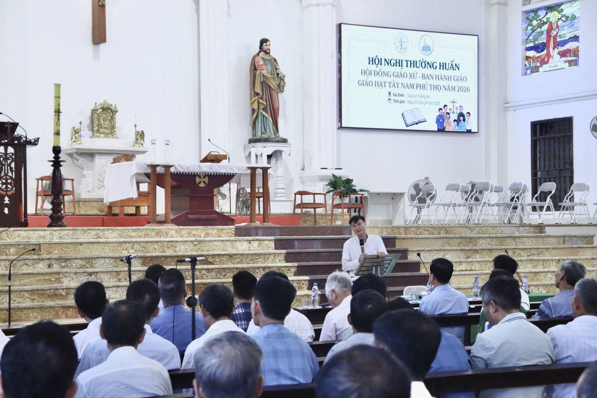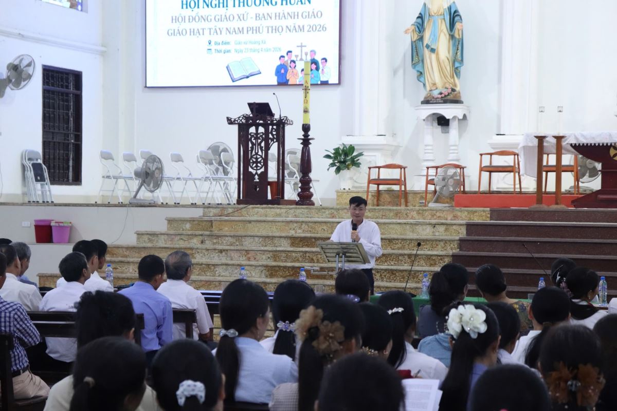 WGPHH - Sáng thứ Năm, ngày 23/4/2026, tại Giáo xứ Hoàng Xá, Giáo hạt Tây Nam Phú Thọ đã tổ chức buổi thường huấn dành cho các thành viên Hội đồng Giáo xứ, Ban Hành giáo của các giáo xứ, chuẩn xứ và các giáo họ trong toàn giáo hạt.