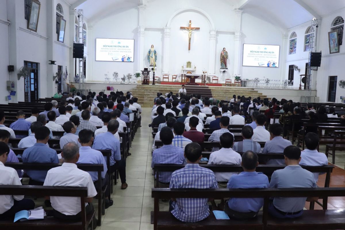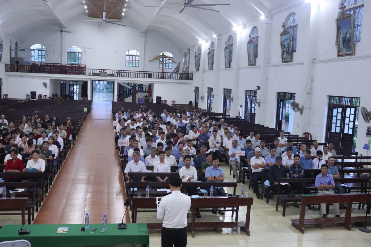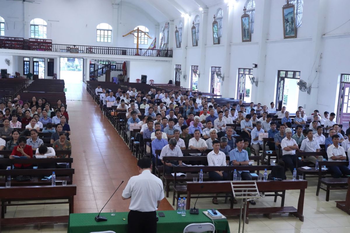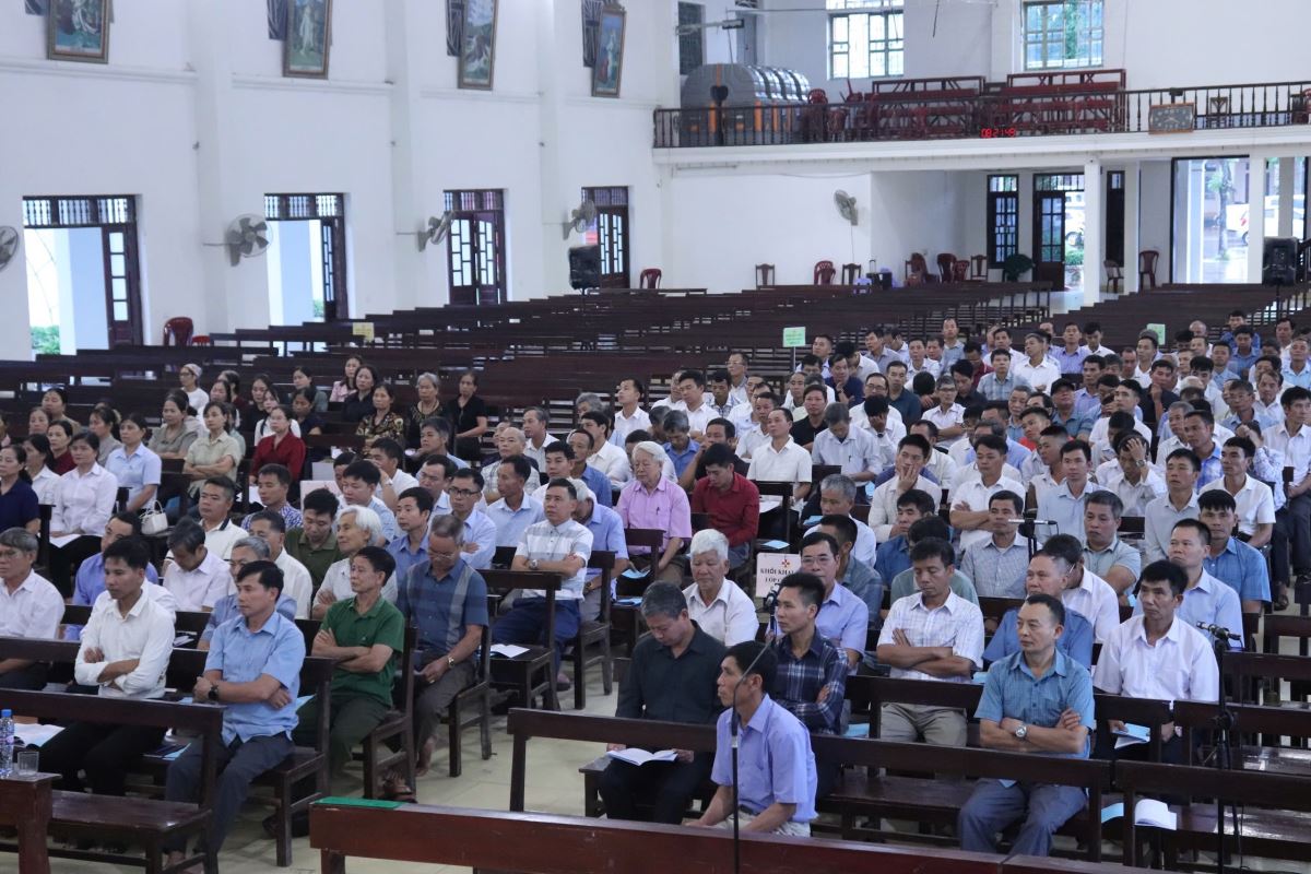 Hiện diện trong buổi thường huấn có cha Giuse Nguyễn Ngọc Ngoạn - Phó chủ tịch Ủy ban Mục vụ Giáo dân Giáo phận, cha Giuse Vũ Công Phường - Trưởng Ban Mục vụ Giáo dân Giáo hạt, quý cha, quý thầy, Ban Điều hành Mục vụ Giáo hạt, cùng hơn 200 quý chức thuộc Hội đồng Giáo xứ và Ban Hành giáo.