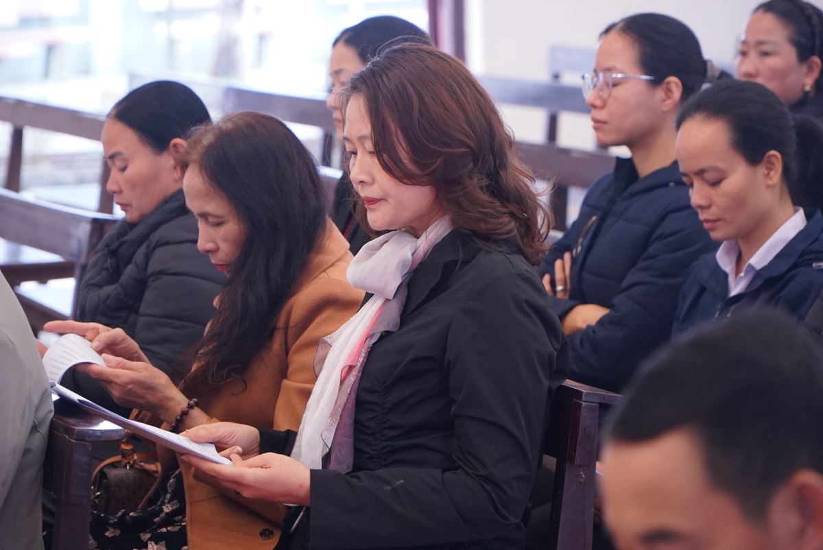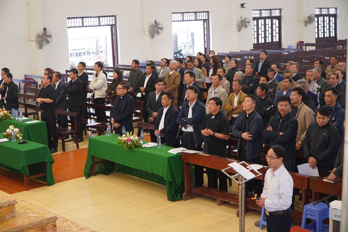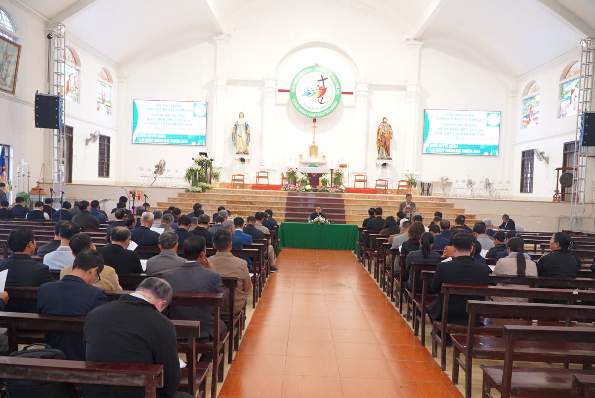 Tham dự hội nghị có cha Antôn Vũ Thái San – Quản hạt Tây Nam Phú Thọ, quý cha trong giáo hạt, quý thầy – quý dì đại diện các cộng đoàn, cùng quý chức Ban Mục vụ của các giáo xứ, chuẩn xứ và giáo họ trong toàn giáo hạt.