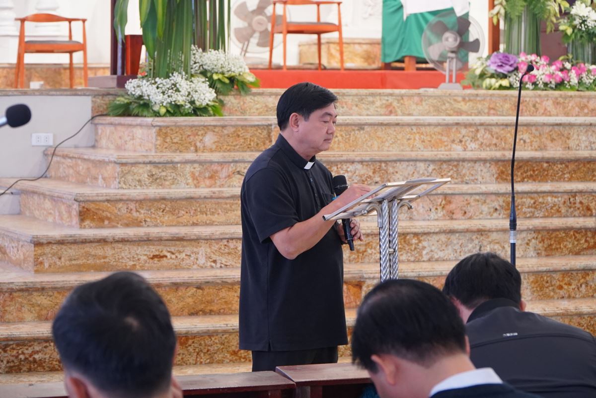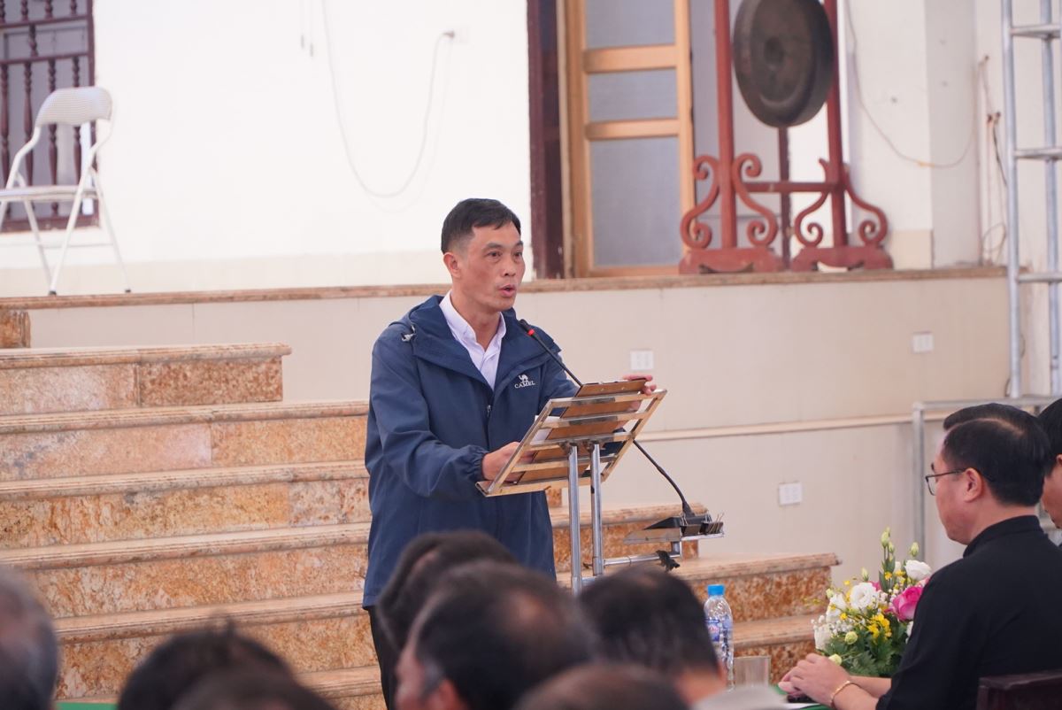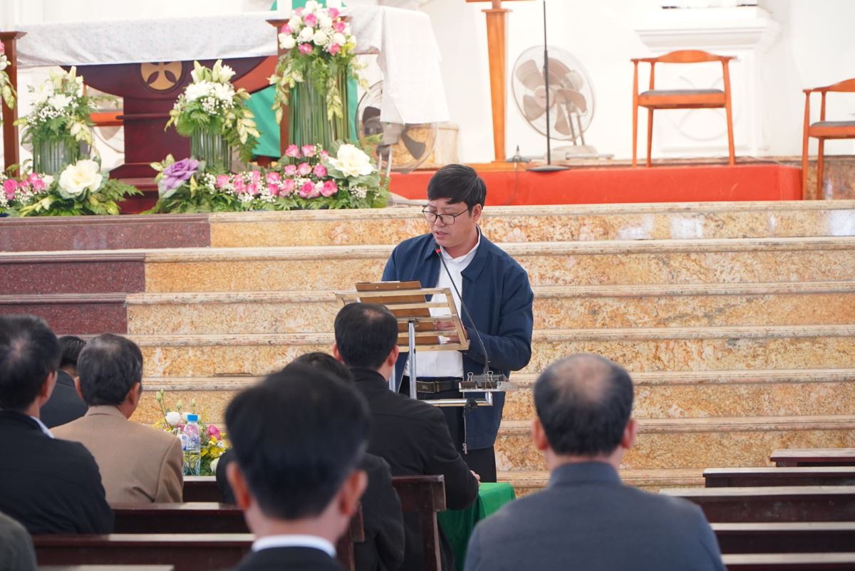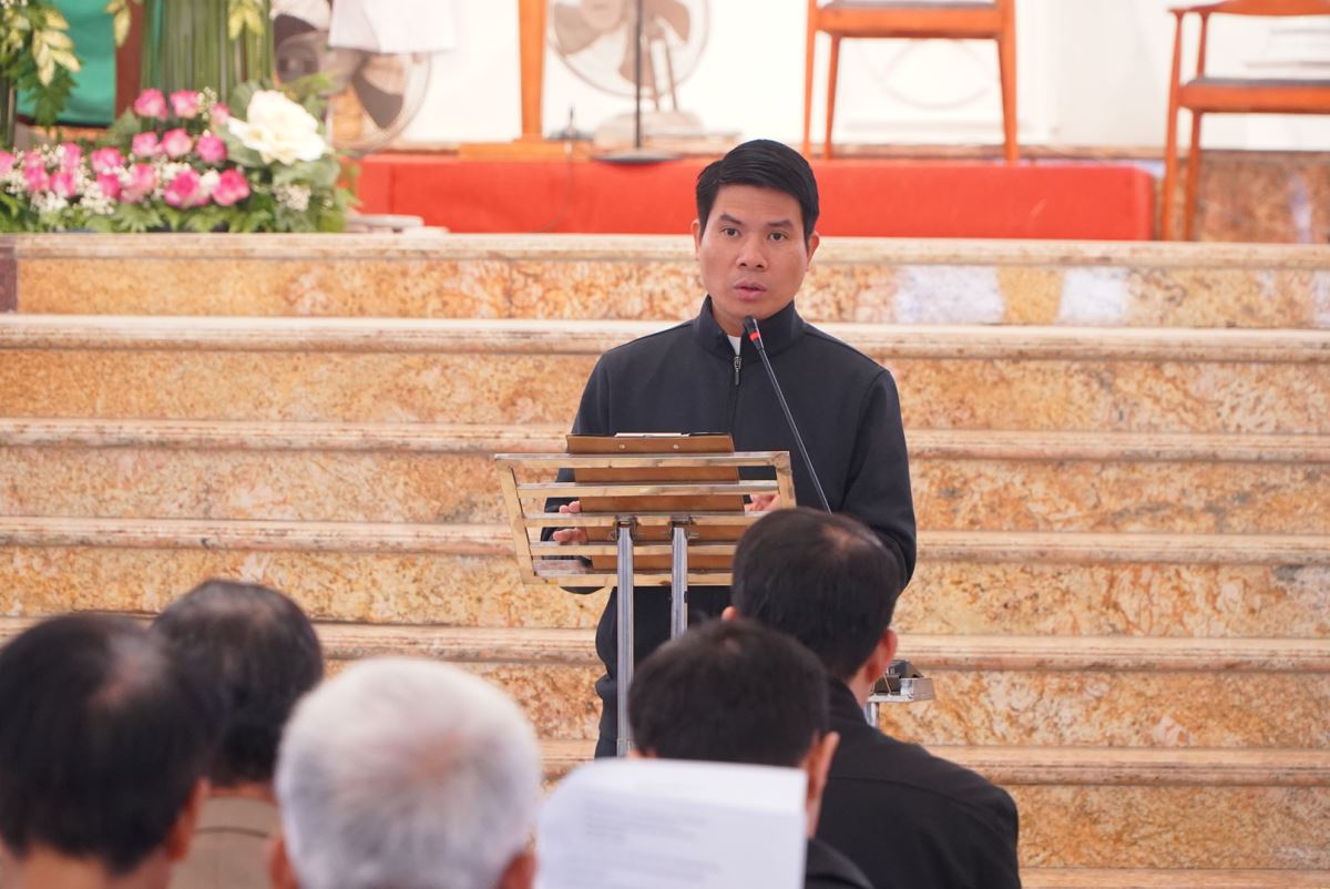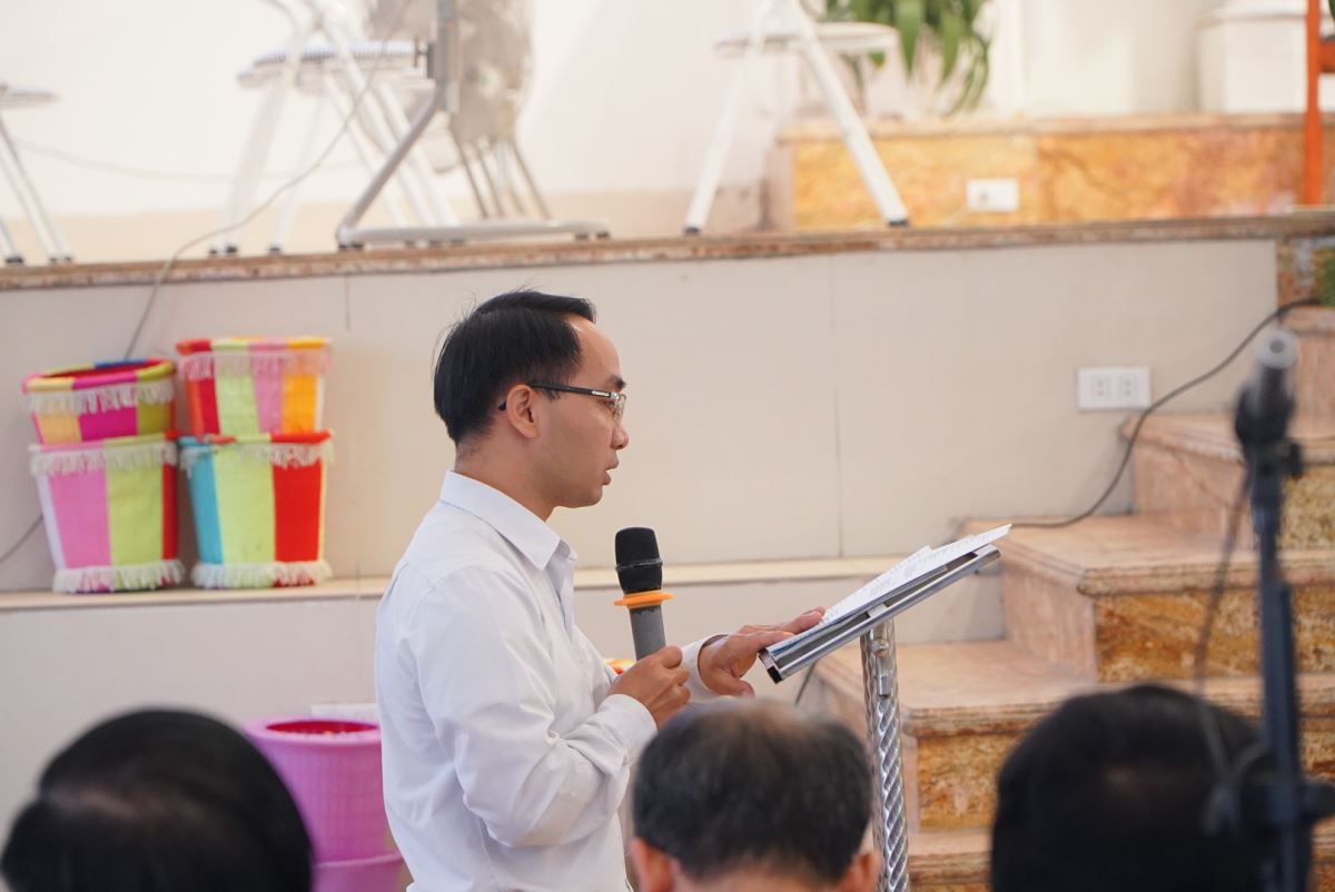 Bước vào phần nội dung chính, ông Phêrô Nguyễn Văn Hải, đại diện Ban Điều hành Mục vụ Giáo hạt, đã trình bày báo cáo tổng kết công tác mục vụ năm 2025, đồng thời kính trình dự thảo Phương hướng Mục vụ năm 2026 để hội nghị cùng lắng nghe, trao đổi và đóng góp ý kiến.