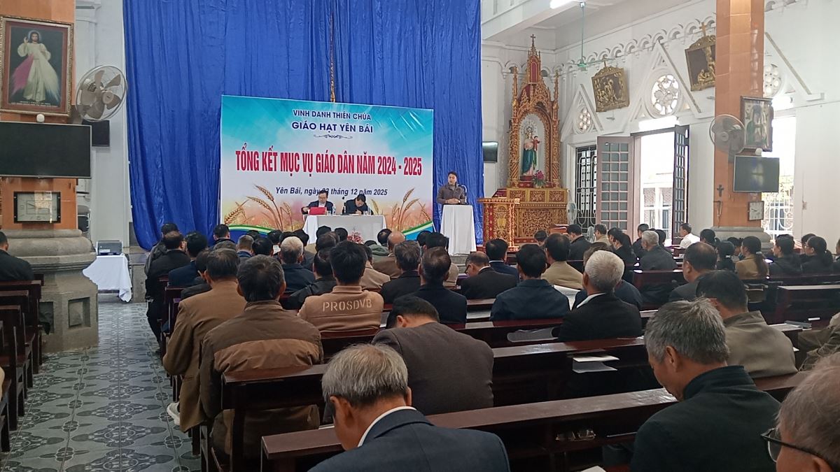 WGPHH – Sáng Thứ Tư, ngày 03.12.2025, trong niềm hân hoan mừng kính thánh Phanxicô Xaviê, quan thầy các xứ truyền giáo, Giáo hạt Yên Bái đã tổ chức Hội nghị tổng kết công tác mục vụ năm 2025 tại nhà thờ Giáo xứ Yên Bái. Hội nghị diễn ra dưới sự chủ trì của cha Quản hạt Phêrô Phạm Thanh Bình, cùng sự hiện diện của quý cha triều, quý cha thuộc các dòng tu – tu hội đang phục vụ trong giáo hạt, quý thầy, quý dì, cùng đại diện các Hội đồng mục vụ đến từ 29 giáo xứ và chuẩn xứ.