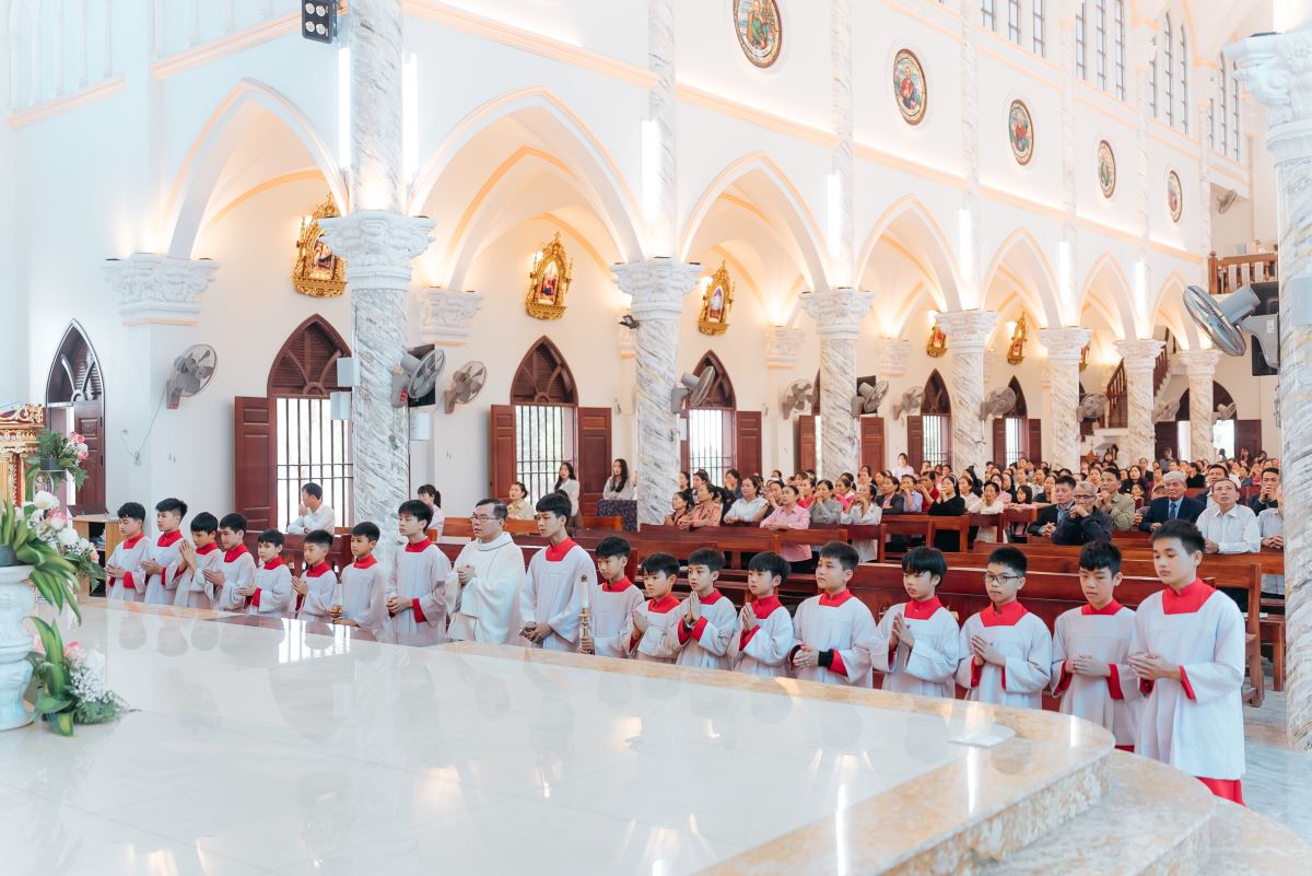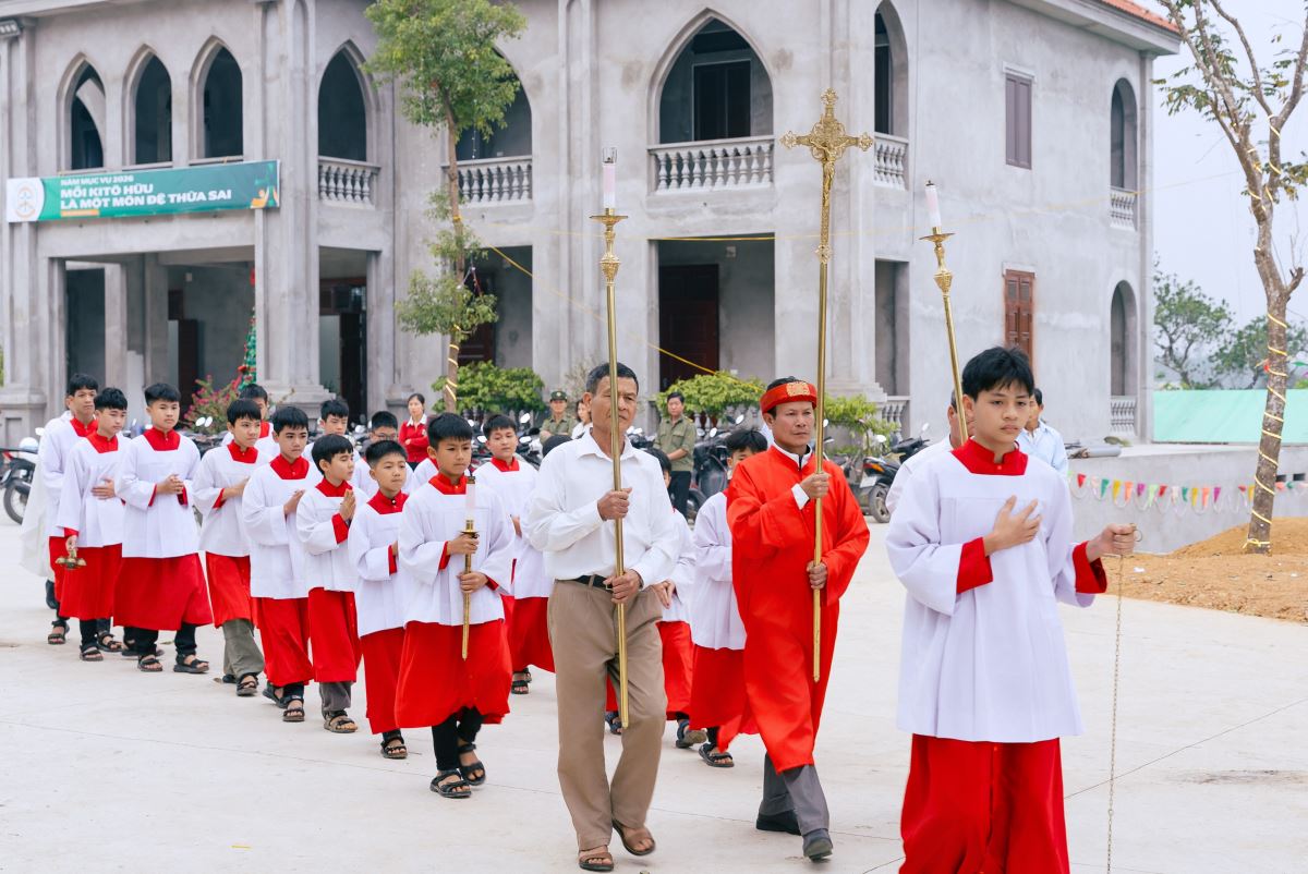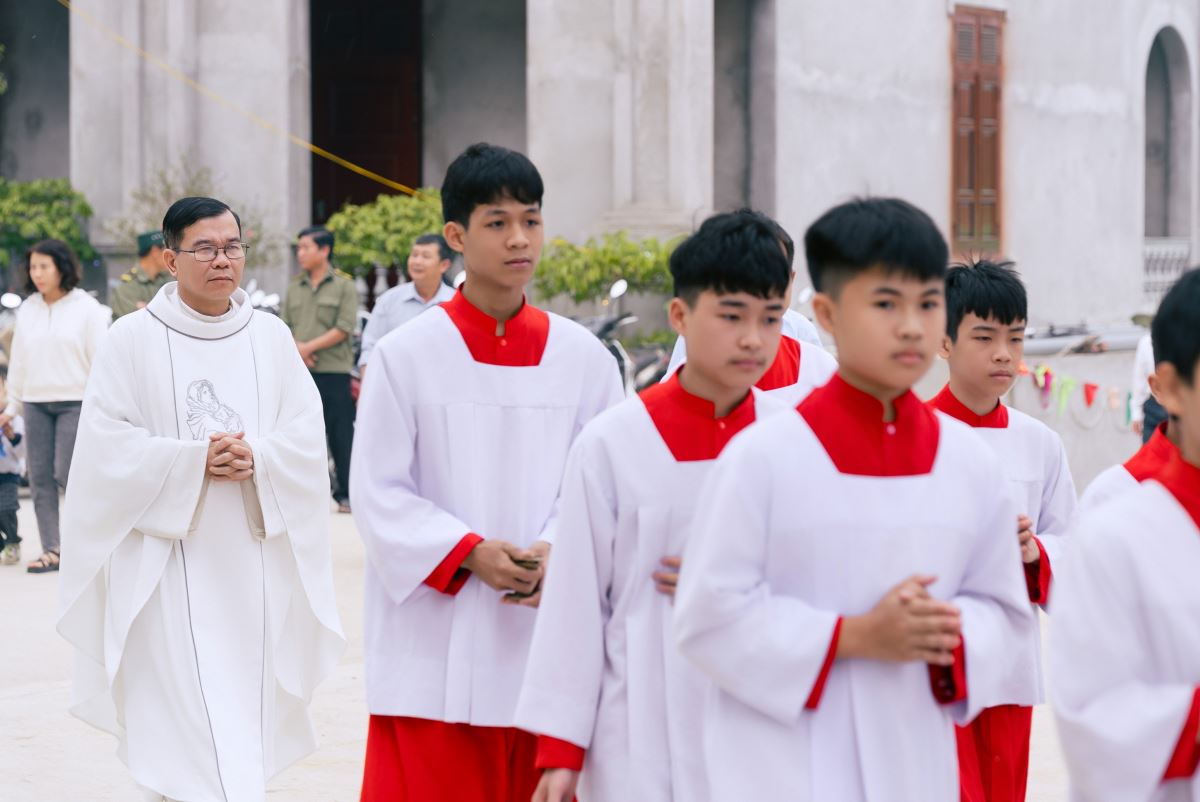 Trước khi Thánh lễ chính thức bắt đầu, đoàn rước nhập lễ tiến vào thánh đường trong bầu khí trang nghiêm, với sự hiện diện của đội trống và đội kèn, tạo nên nét đẹp truyền thống, góp phần làm tăng thêm bầu khí long trọng của ngày lễ quan thầy.