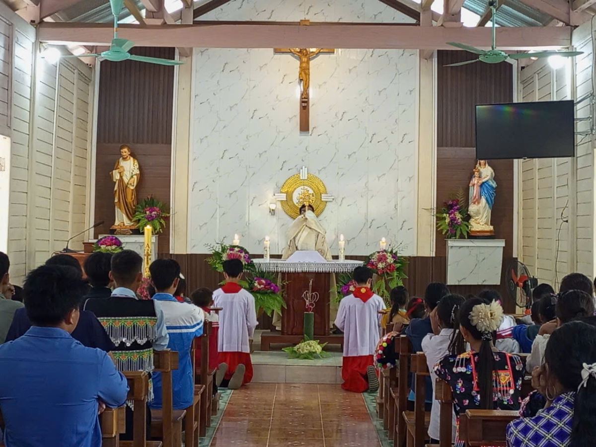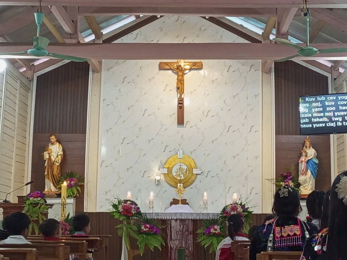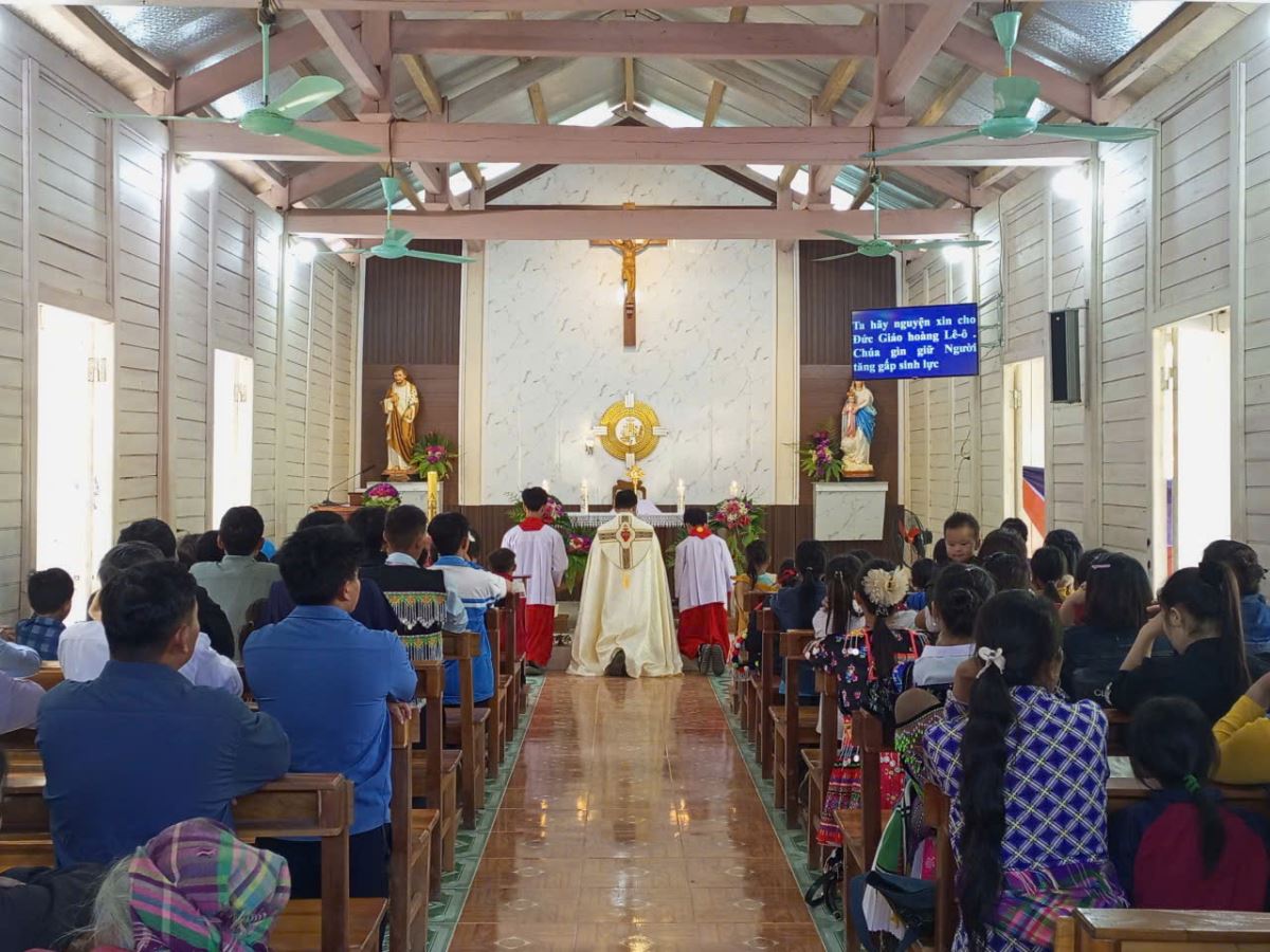 WGPHH - Trong bầu khí tĩnh lặng của núi rừng miền sơn cước, sáng Chúa Nhật II Phục Sinh năm A, ngày 12/4/2026, tại giáo họ Hua Sin (giáo xứ Mường Nhé - tỉnh Điện Biên), cộng đoàn dân Chúa đã long trọng cử hành ngày Chầu Thánh Thể thay mặt Giáo phận, kết hợp với Thánh lễ Chúa Nhật II Phục Sinh – Chúa Nhật kính Lòng Thương Xót Chúa, trong tâm tình trang nghiêm và sốt sắng.