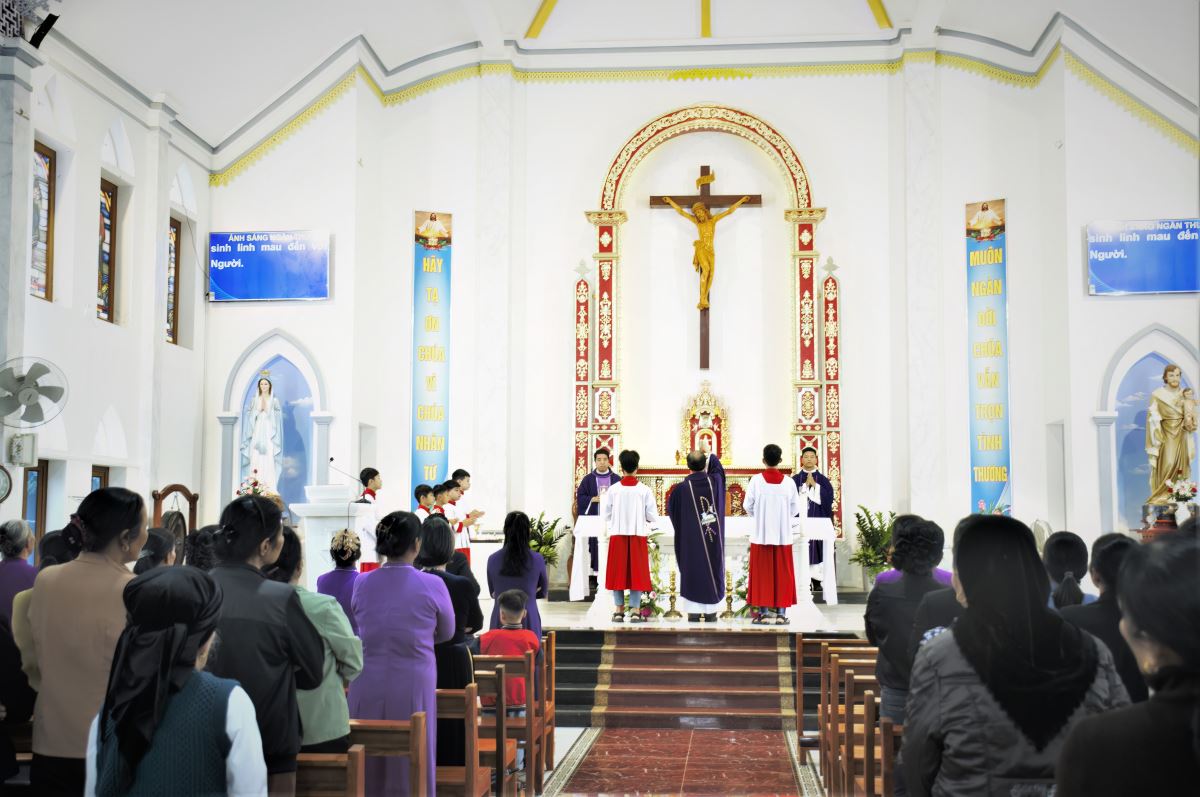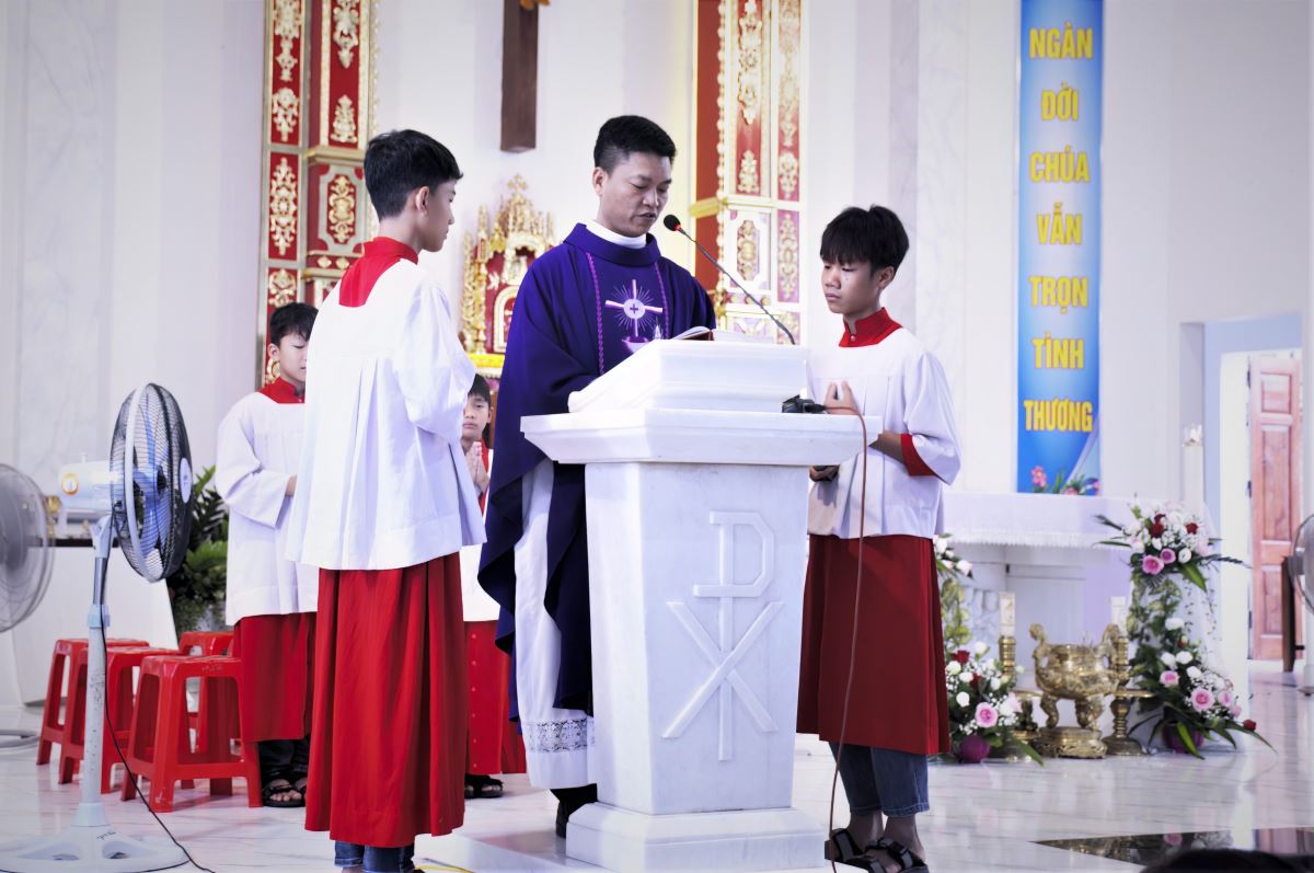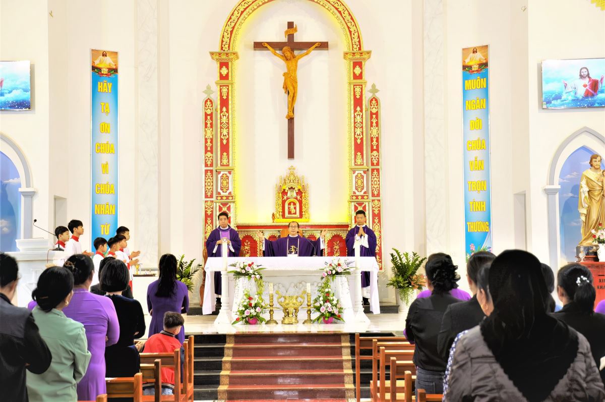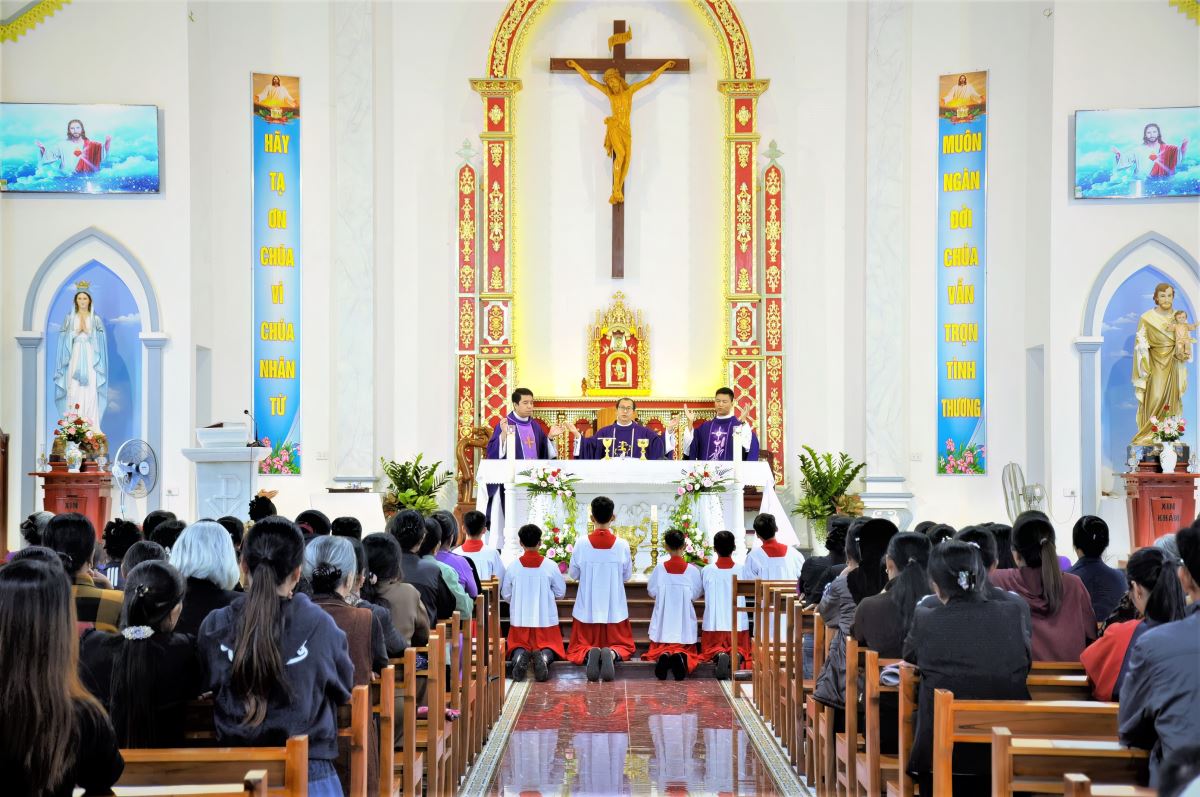Tiếp đó là Thánh lễ tạ ơn do cha phó đặc trách Vinh Sơn Vũ Văn Nguyện chủ tế, cùng hai cha trong giáo xứ đồng tế, hiệp dâng lời ngợi khen Thiên Chúa và cầu nguyện cho mọi thành phần dân Chúa.