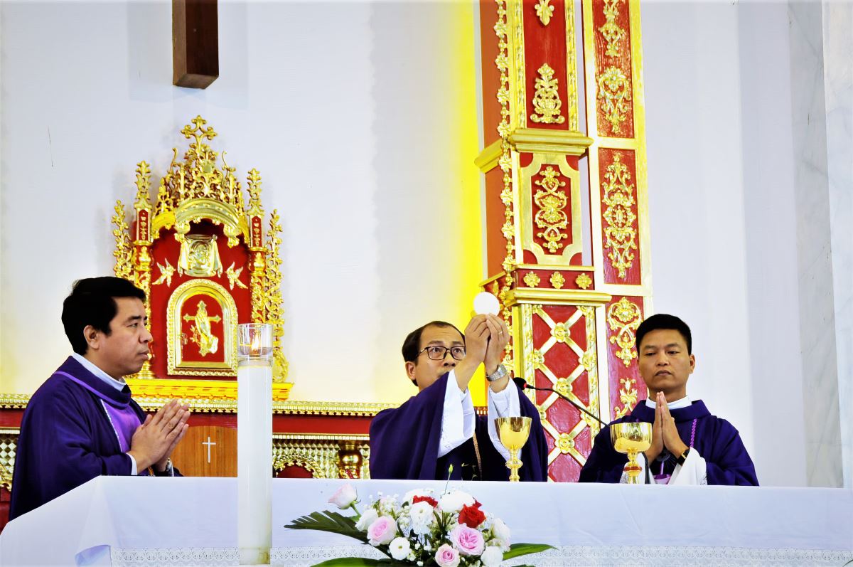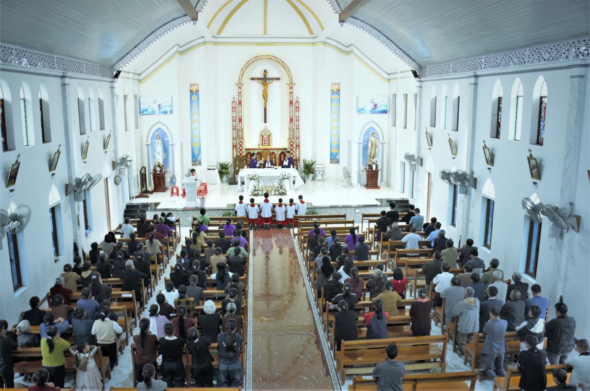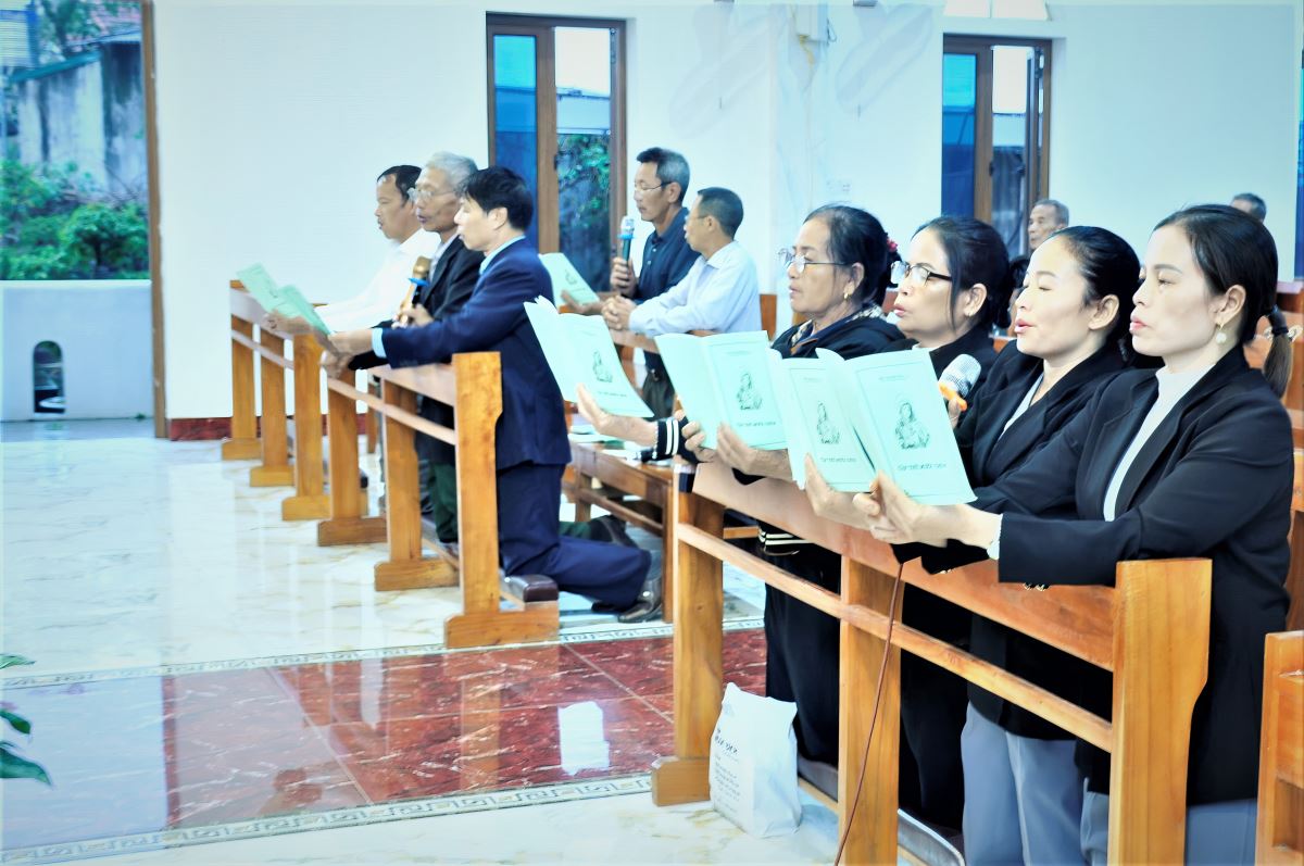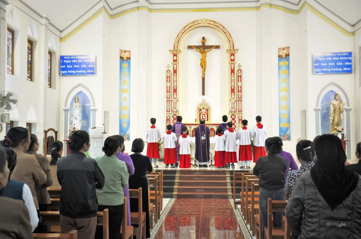 Tiếp đó là Thánh lễ tạ ơn do cha phó đặc trách Vinh Sơn Vũ Văn Nguyện chủ tế, cùng hai cha trong giáo xứ đồng tế, hiệp dâng lời ngợi khen Thiên Chúa và cầu nguyện cho mọi thành phần dân Chúa.