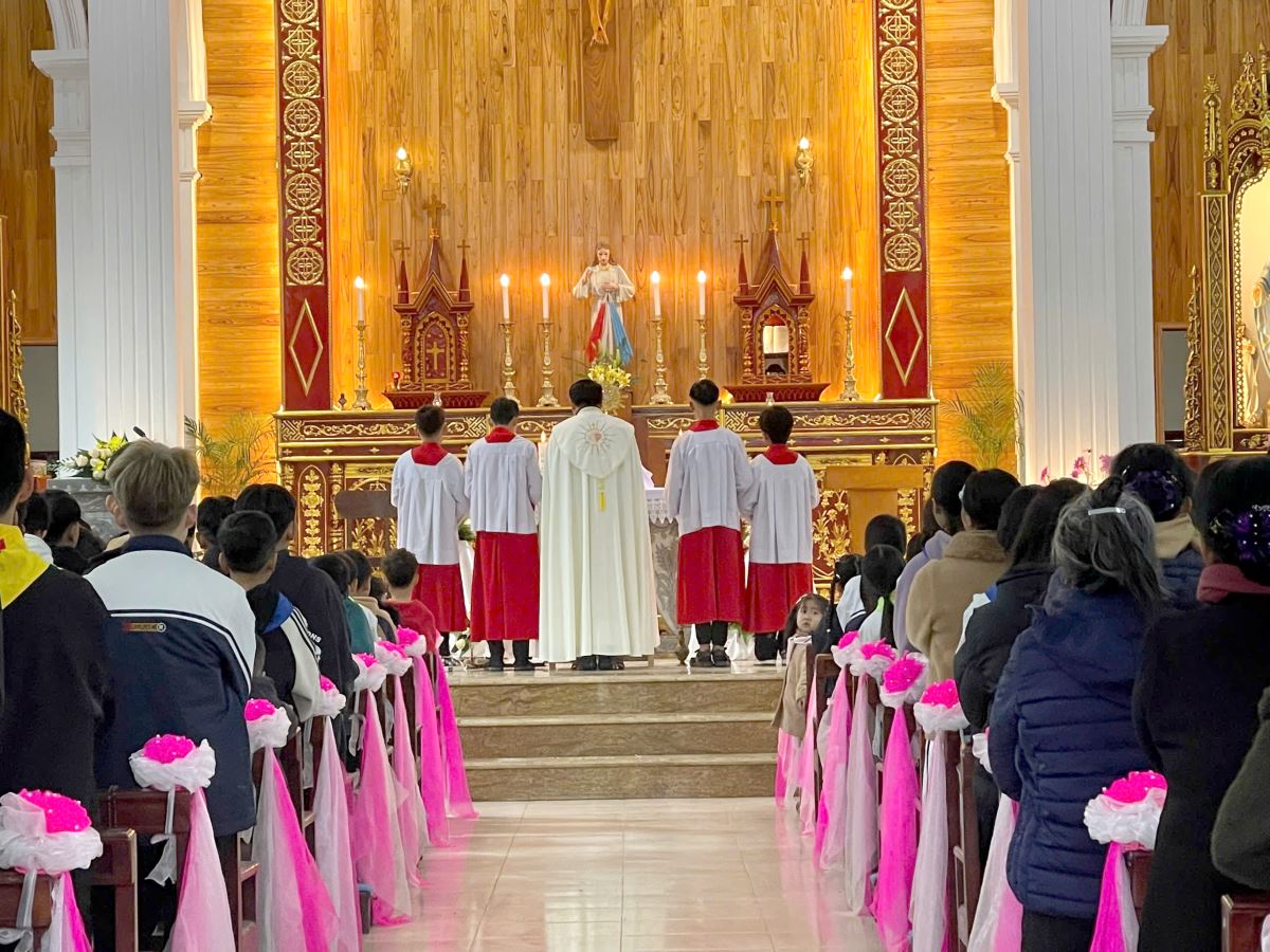 Cao điểm của ngày chầu là Thánh lễ đồng tế lúc 10g15, do Cha xứ Giuse Nguyễn Văn Ninh chủ sự. Đồng tế với ngài có Cha cố Giuse Nguyễn Thái Hà, cùng sự hiện diện hiệp thông của quý tu sĩ và đông đảo tín hữu đến từ các giáo xứ, giáo họ lân cận.