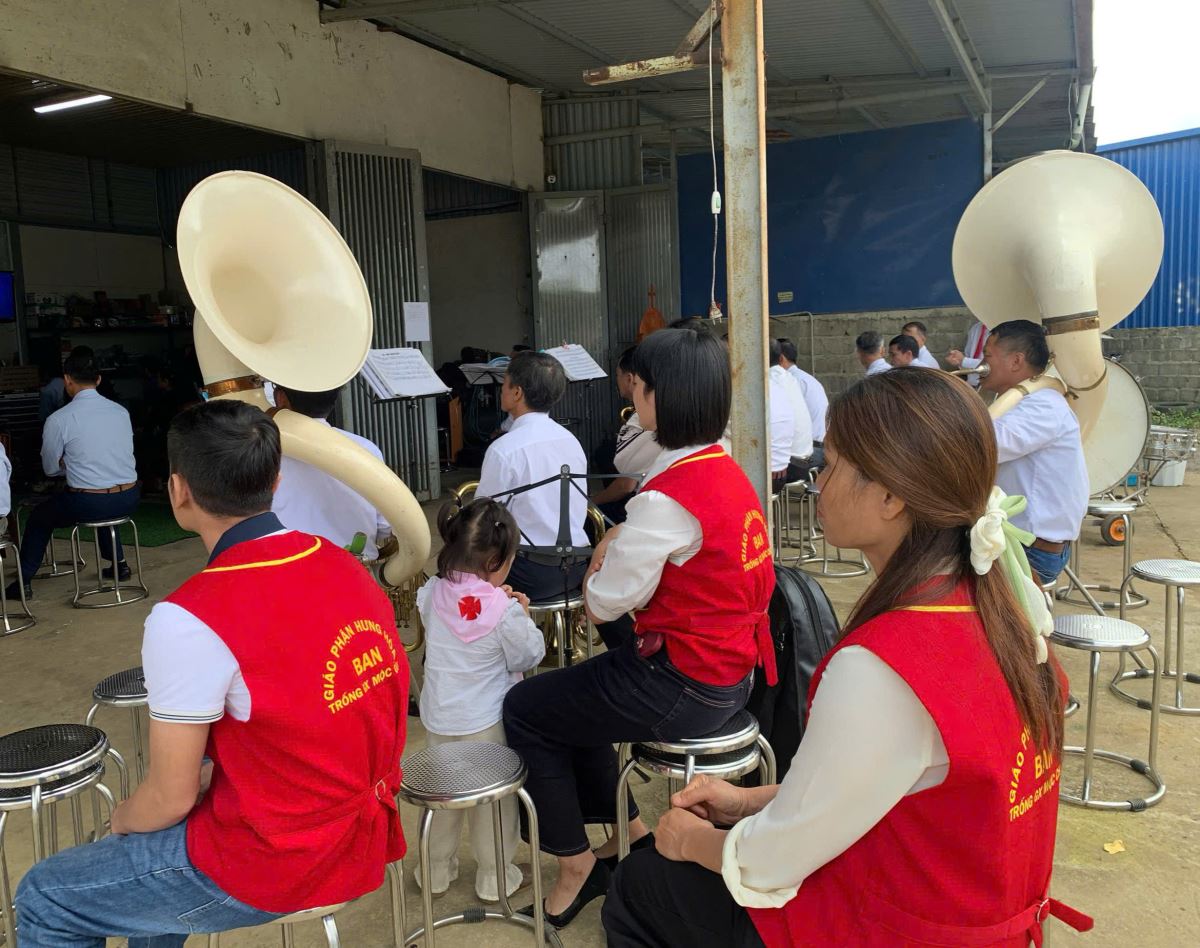 Thánh lễ kết thúc lúc 11g30 trong tâm tình tri ân. Dù không có tiếng chuông, không có nhà nguyện, cũng chẳng có bàn ghế sang trọng, nhưng Thánh lễ hôm nay lại đầy tràn cảm xúc thiêng liêng. Mỗi lời kinh, mỗi bài hát, mỗi ánh mắt hướng về bàn thờ đều thấm đẫm lòng yêu mến và khát khao. Những bông hoa tươi, những cây nến nhỏ, những cử chỉ hy sinh âm thầm… tất cả đã góp phần tạo nên một “Thánh đường sống” – nơi mà Đức Kitô thực sự hiện diện giữa dân Người.