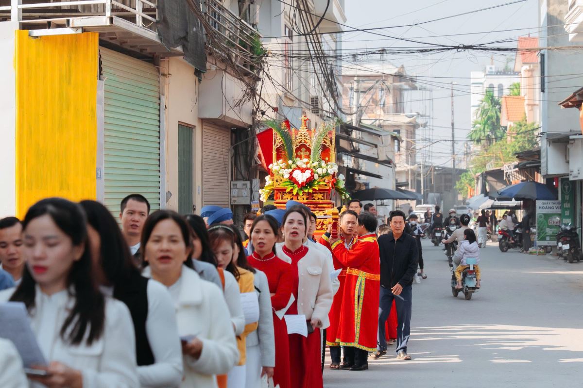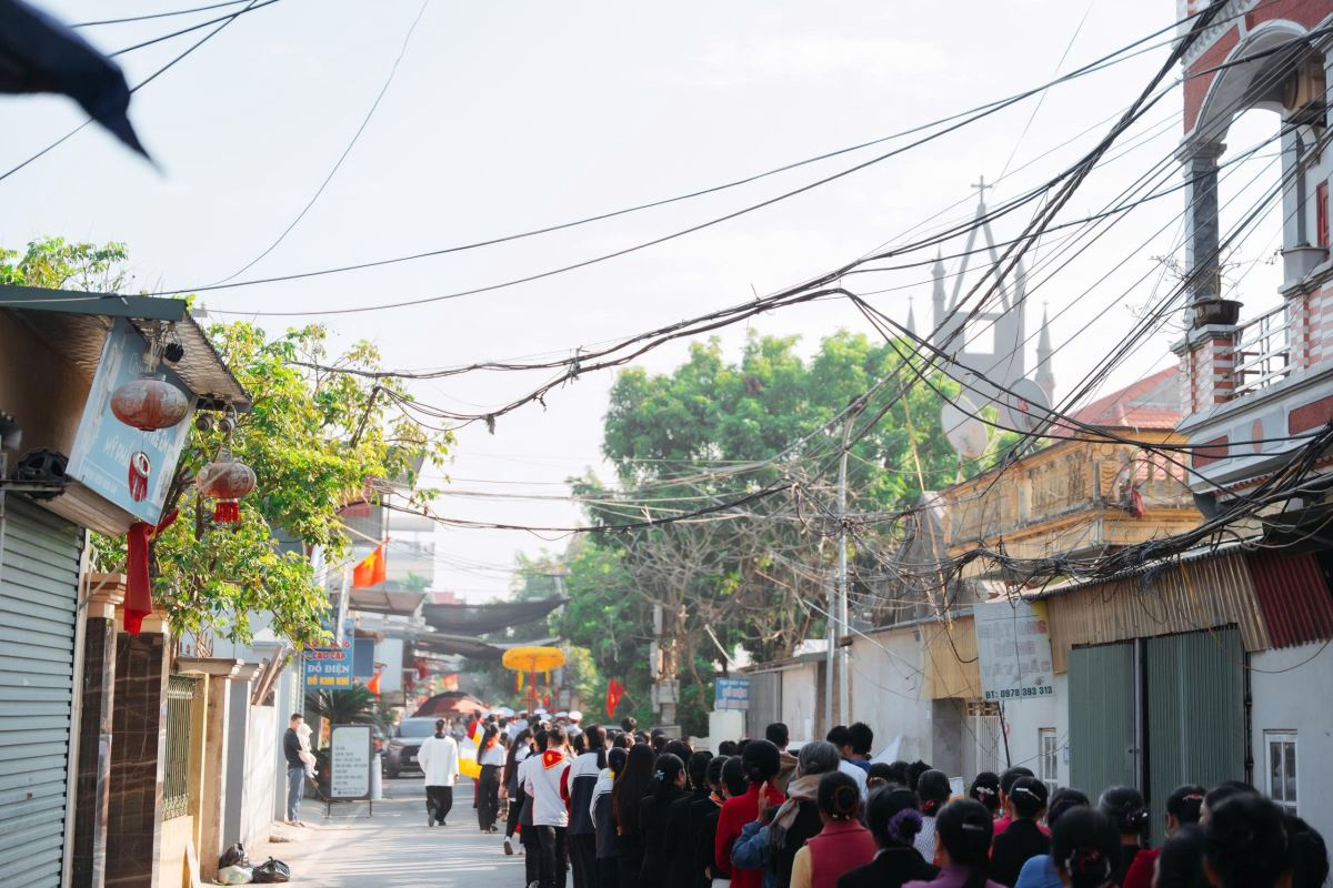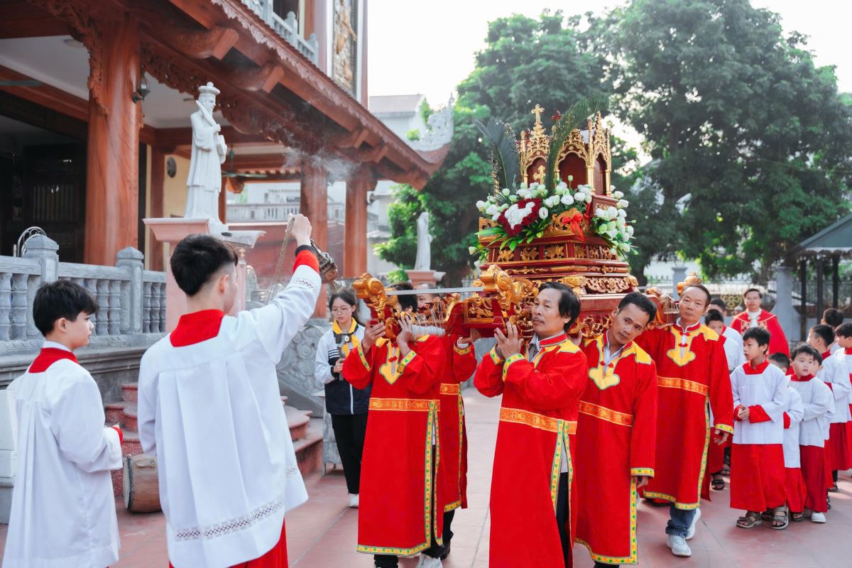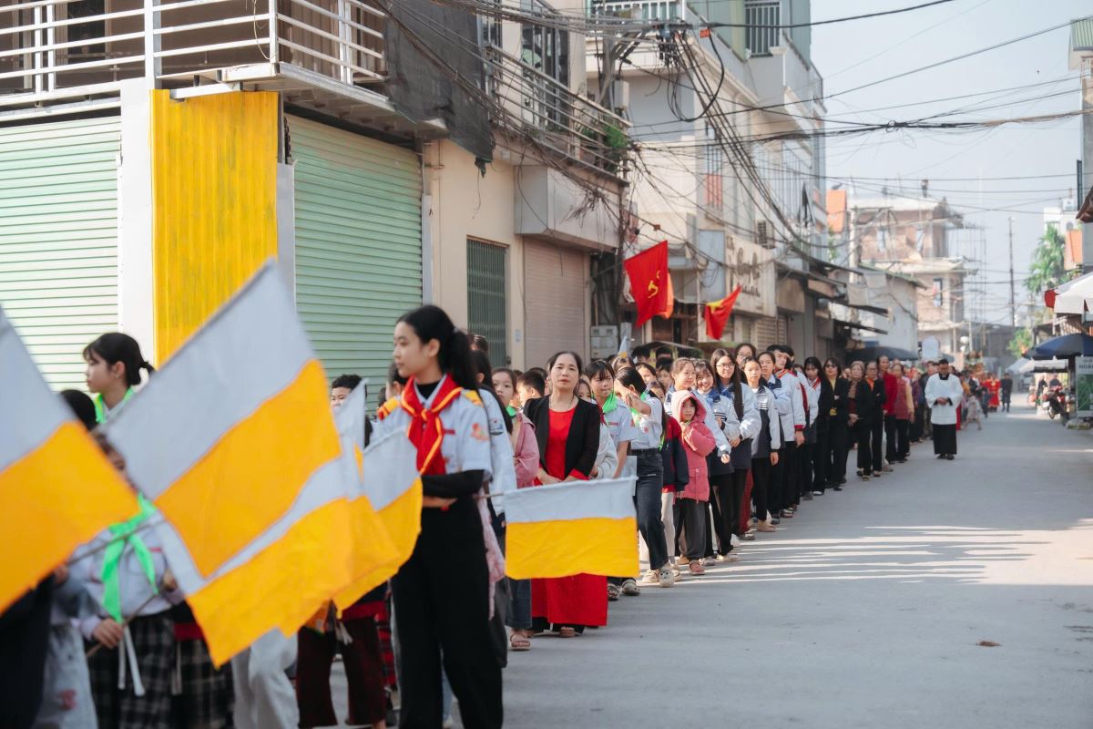 Trong niềm vui hân hoan đó, từ 8g30 sáng 23.11.2025, cộng đoàn đã quy tụ tại nhà thờ xứ Mộc Hoàn, để cùng bắt đầu cuộc rước Thánh tích Thánh Tử đạo về nhà thờ Yên Trung do cha đặc trách Giuse chủ sự.