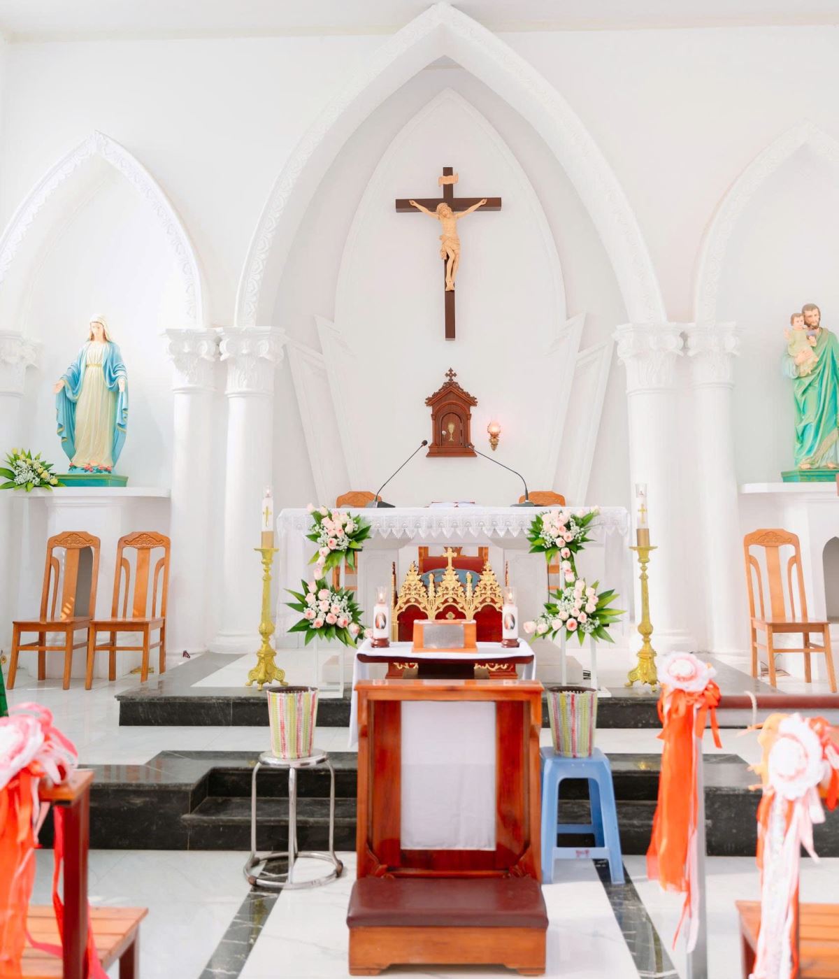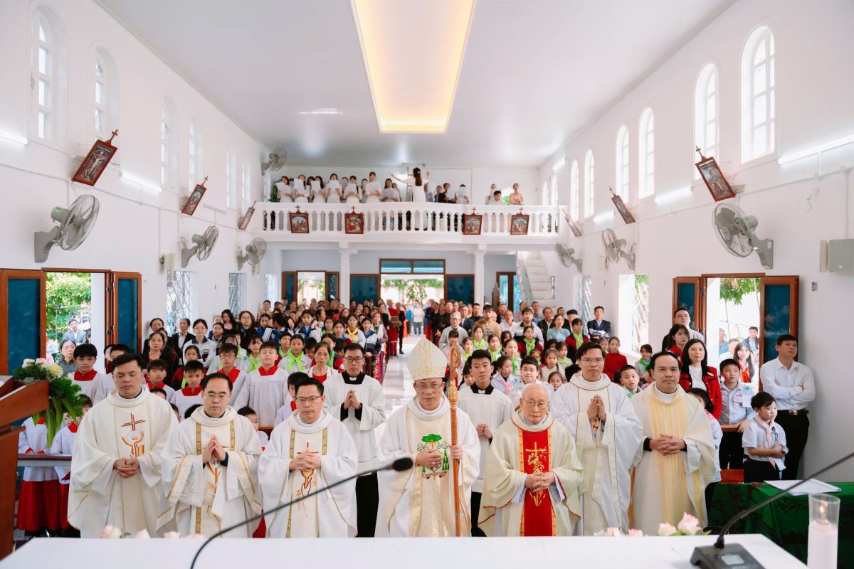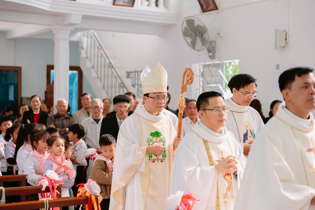 9g30, cộng đoàn hân hoan chào đón Đức cha Phụ tá Phaolô Nguyễn Quang Đĩnh về với giáo họ.