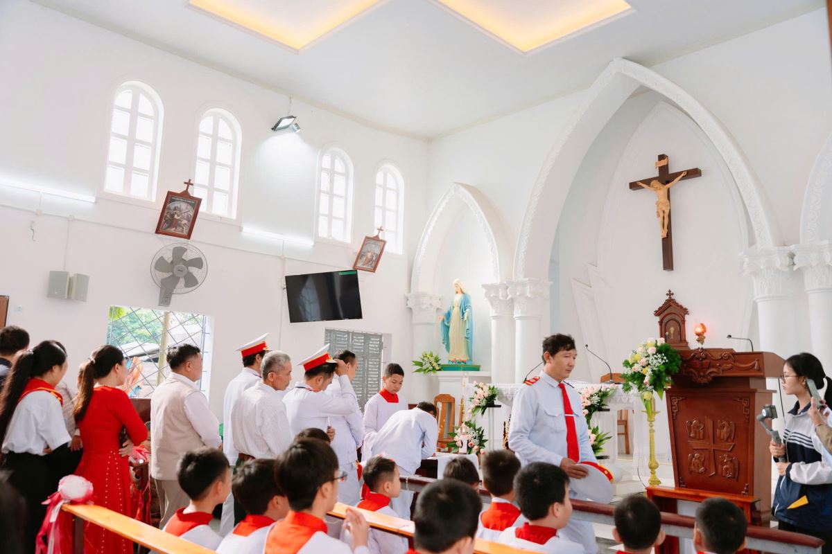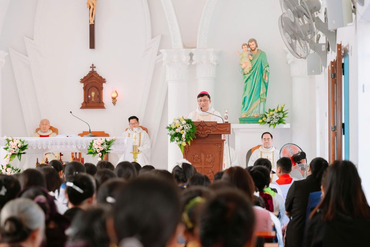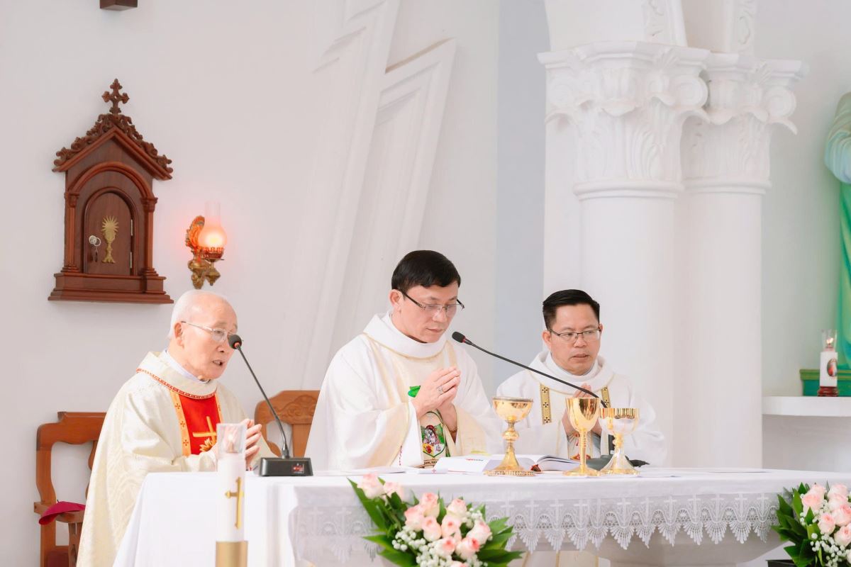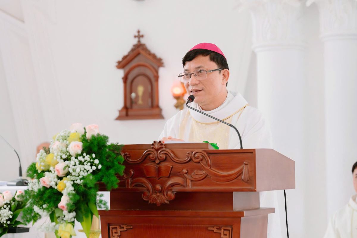 Tiếp đó là Thánh lễ Trọng Chúa Kitô Vua Vũ Trụ do Đức cha chủ tế. Giảng trong thánh lễ, Đức cha đã nêu lên hình ảnh Đức Kitô làm Vua, nhưng là vị Vua của yêu thương, sự thật và tha thứ. Từ đó, Đức cha mời gọi cộng đoàn sống sao cho xứng đáng là con dân của một vị Vua như Chúa Kitô.
