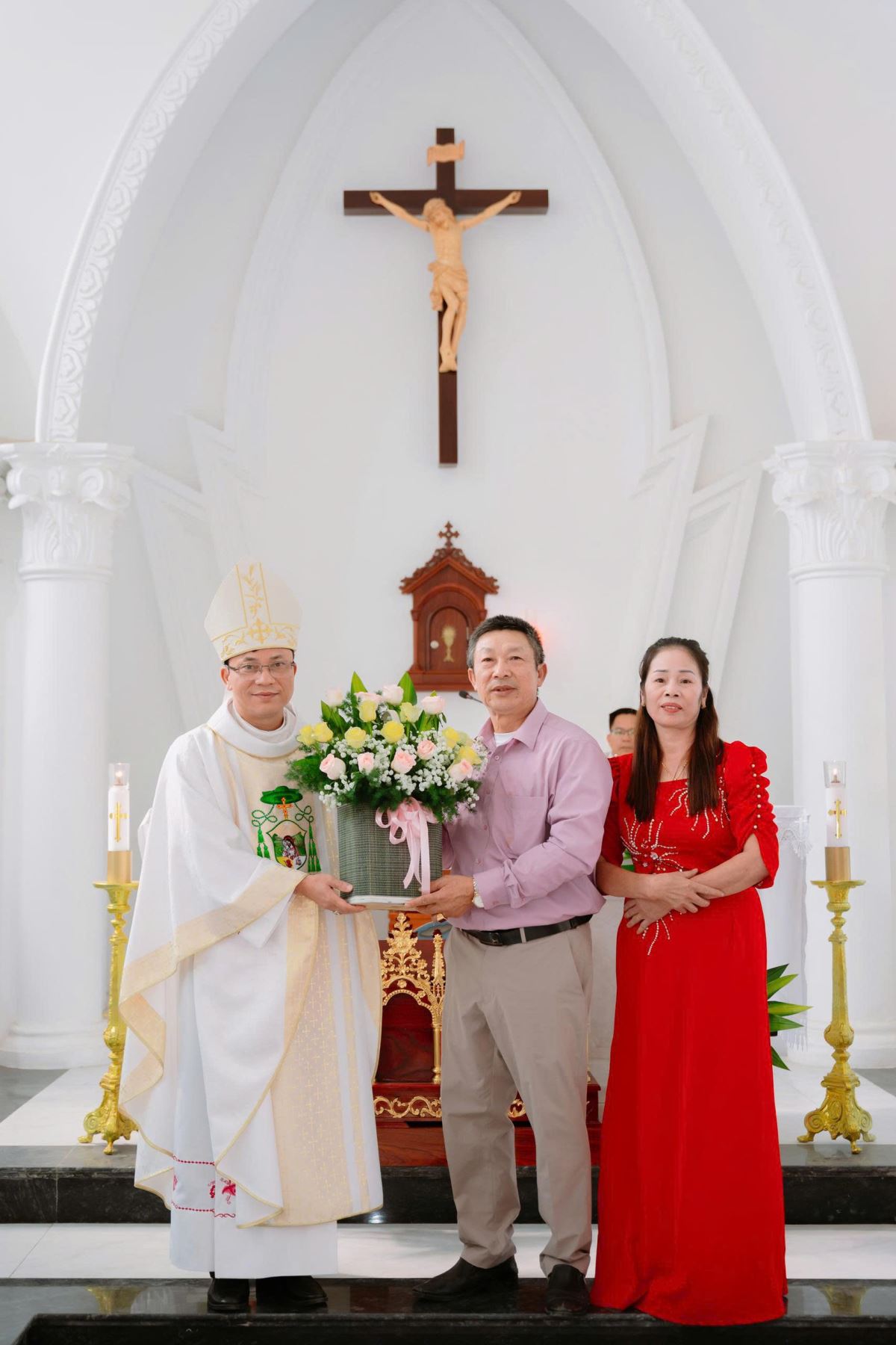 Trước khi kết thúc thánh lễ, một vị đại diện đã dâng lời tạ ơn Chúa, cảm ơn quý Đức cha giáo phận, quý cha, quý ân nhân và cộng đoàn; cũng như dâng bó hoa tươi chúc mừng Đức cha Phụ tá nhân dịp kỉ niệm 20 năm thụ phong linh mục (29.11.2005).