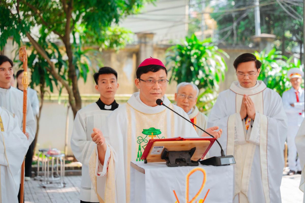 Đáp từ, Đức cha Phaolô chúc mừng giáo họ và nêu lên ý nghĩa của tiếng chuông nhà thờ; đồng thời, mời gọi các tín hữu tôn kính và noi gương Thánh Gioan Hoan Tử đạo để sống chứng nhân đức tin, đưa giáo họ thăng tiến về đức tin, phụng tự, bác ái, hướng tới loan báo Tin Mừng cho mọi người.