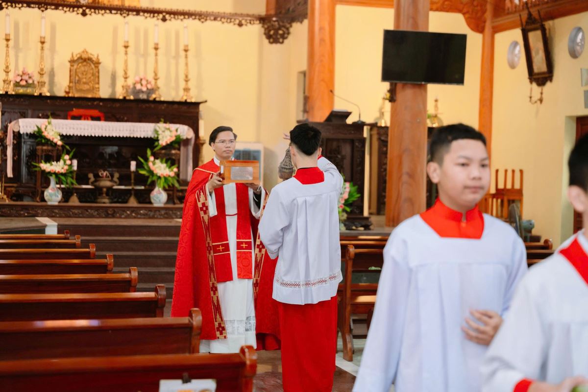 Đặc biệt hơn, từ tháng 11.2024, cha đặc trách Giuse đã xin Tòa Tổng Giám mục Huế trao ban một phần Thánh tích Thánh Linh mục Gioan Đoạn Trinh Hoan, tử đạo, đặt trong nhà thờ Yên Trung cho giáo dân tôn kính. Hôm nay, Thánh tích của Thánh Gioan Hoan được long trọng cung nghinh về với nhà thờ giáo họ. Quả là niềm vui nhân đôi.