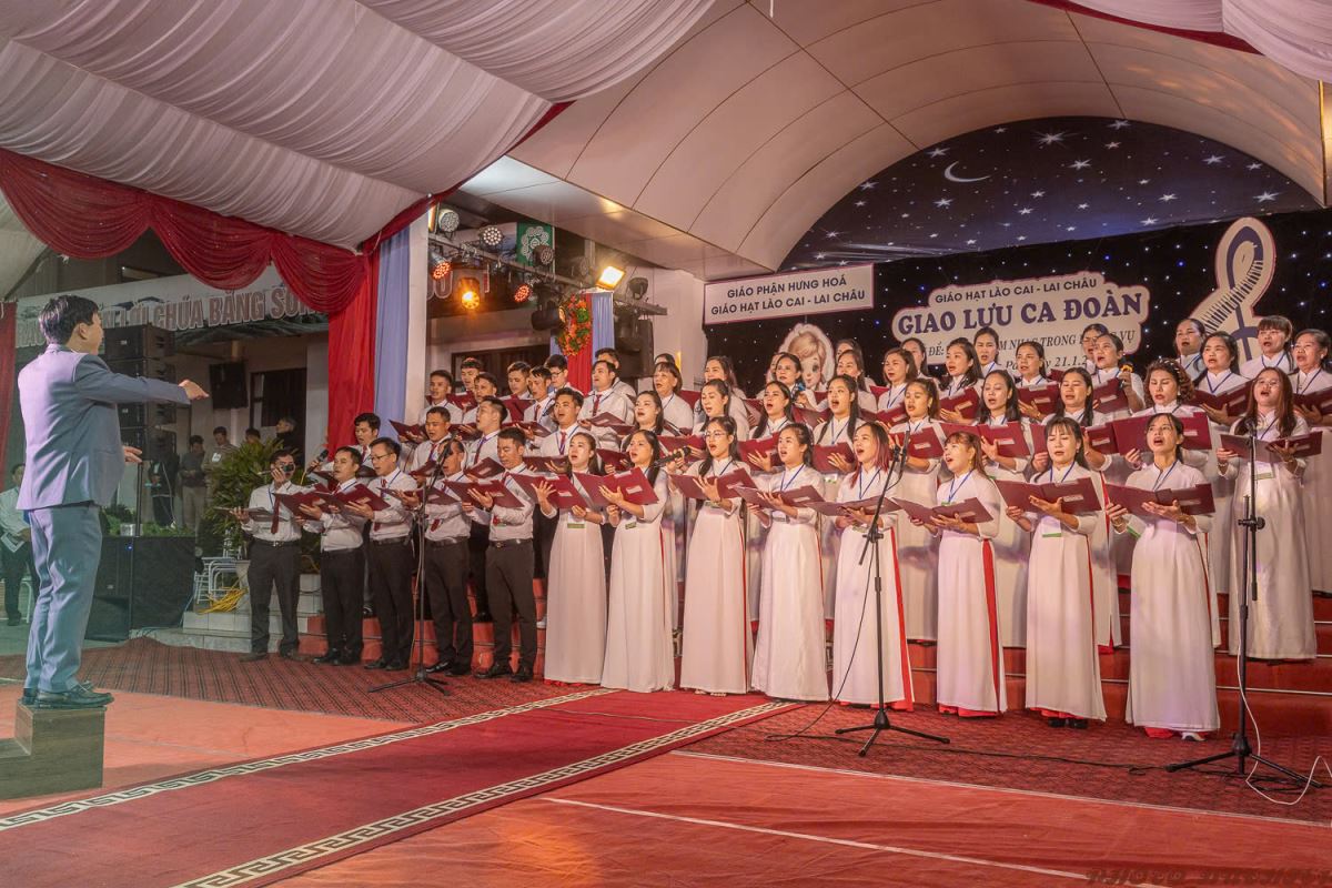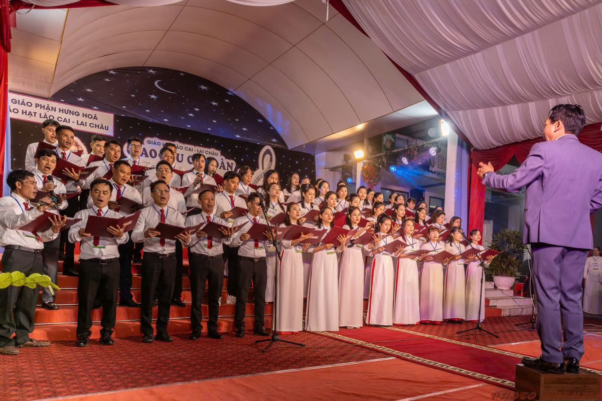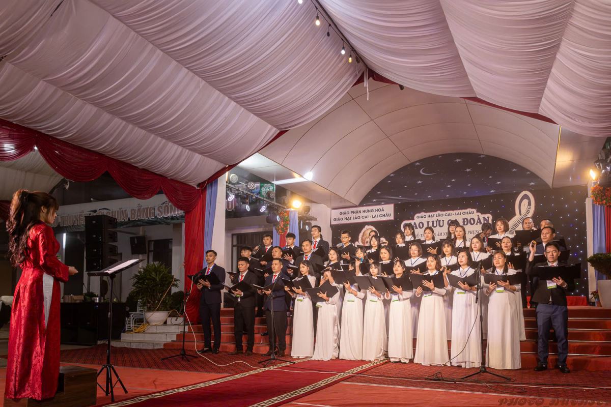 Đến 19h00, chương trình giao lưu thánh ca chính thức bắt đầu. Những lời ca, tiếng hát vang lên của từng giáo xứ không chỉ thể hiện tài năng và sự sáng tạo của các ca đoàn, mà trên hết là lòng yêu mến Chúa và tinh thần phục vụ vô vị lợi.